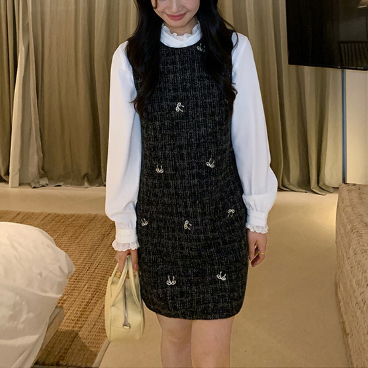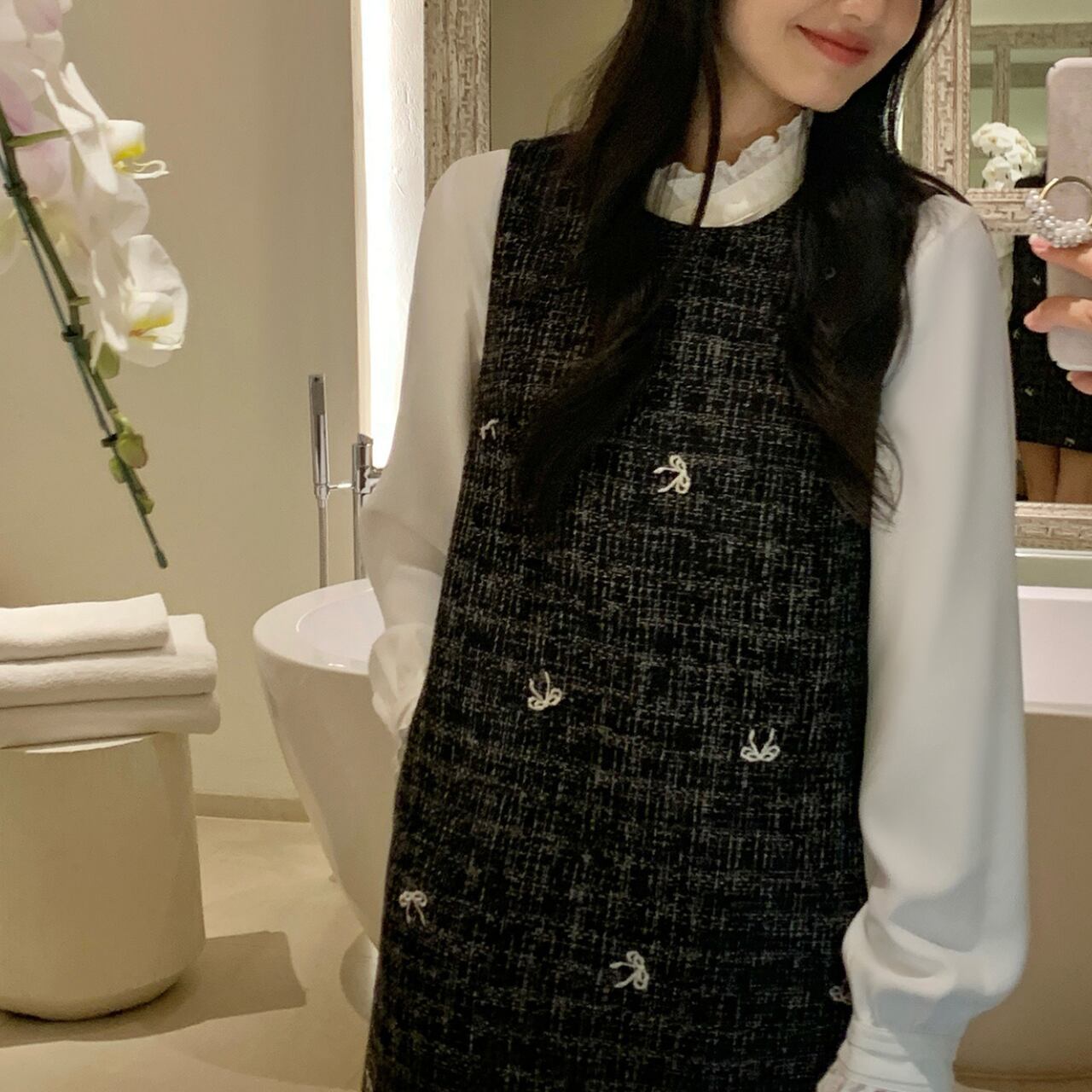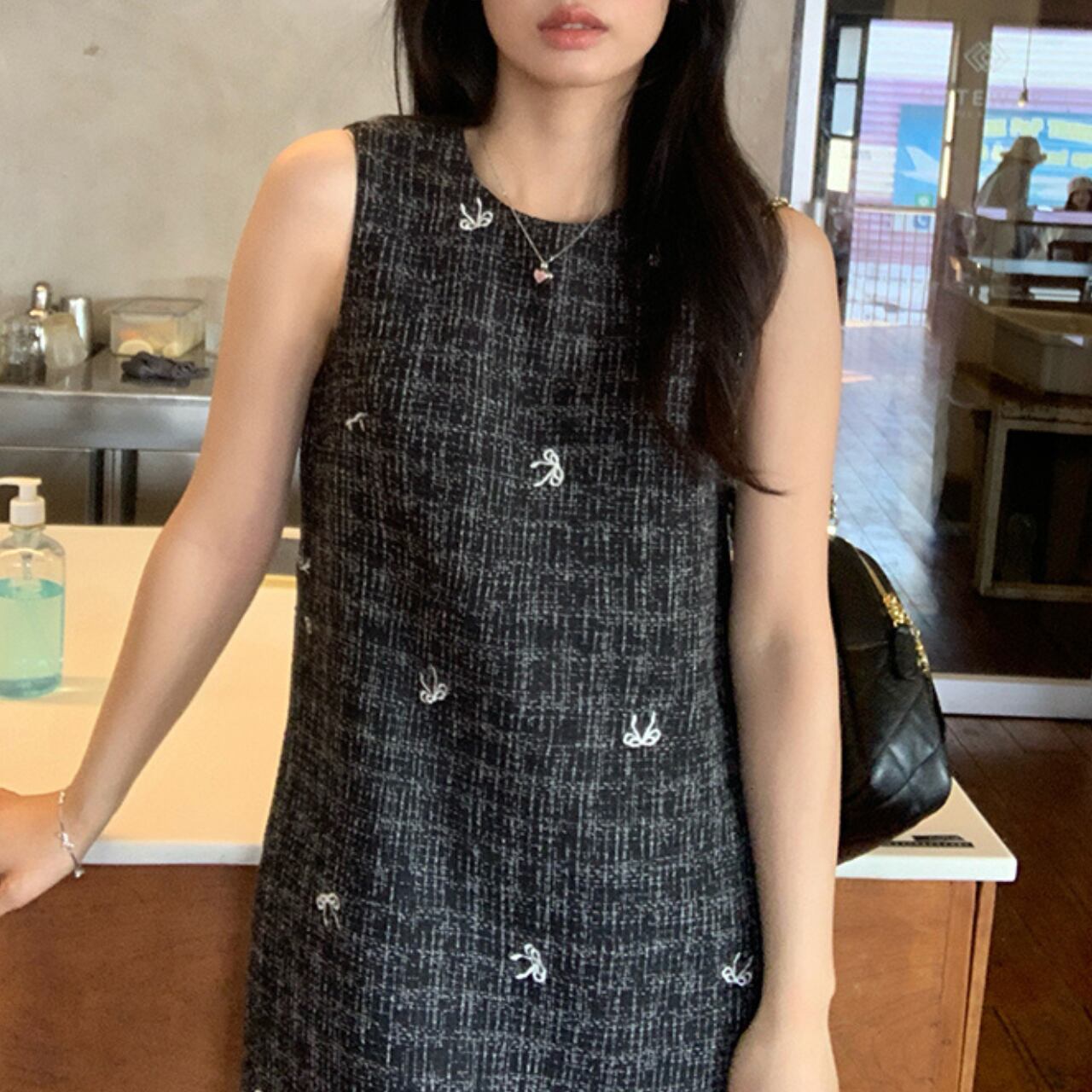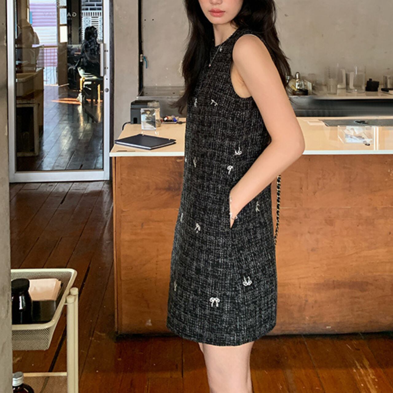 ノースリーブリボンワンピースです。トップスを重ね着することで印象が変わる上品なワンピースです。