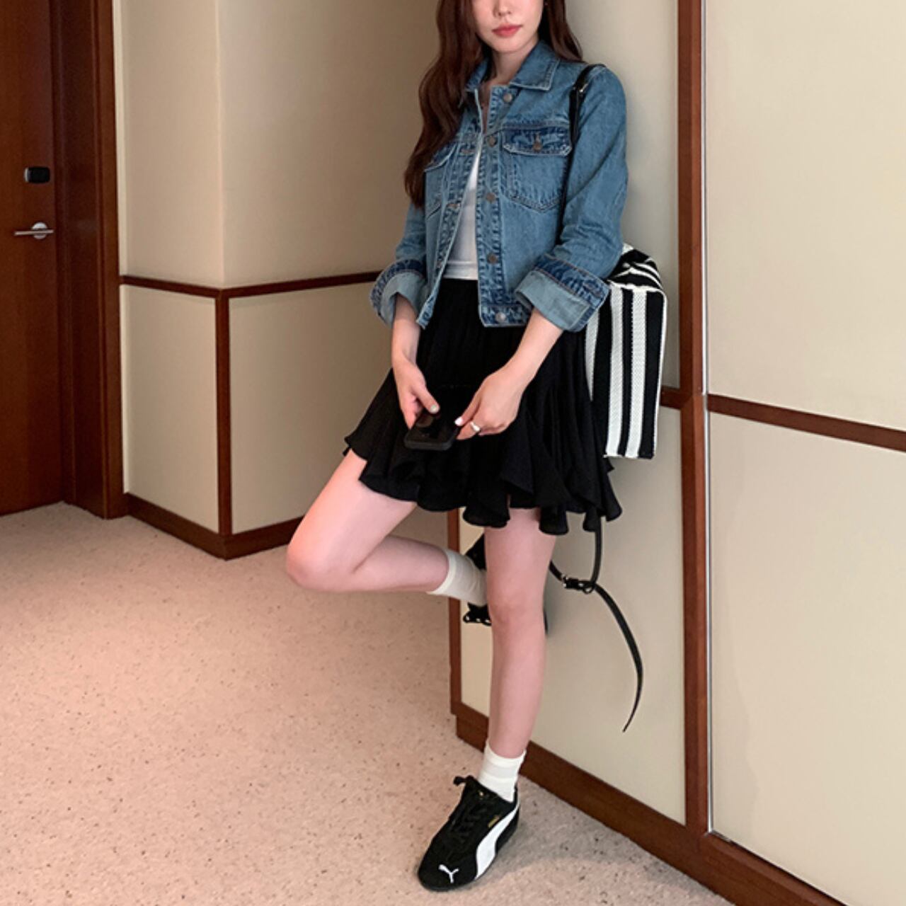 カジュアルなコーディネートから、ドレッシーなスタイルまで、ほどよい丈感がコーディネートに軽やかさを添えてくれます。ウエストがゴム&レギンス付きなのがポイントです。