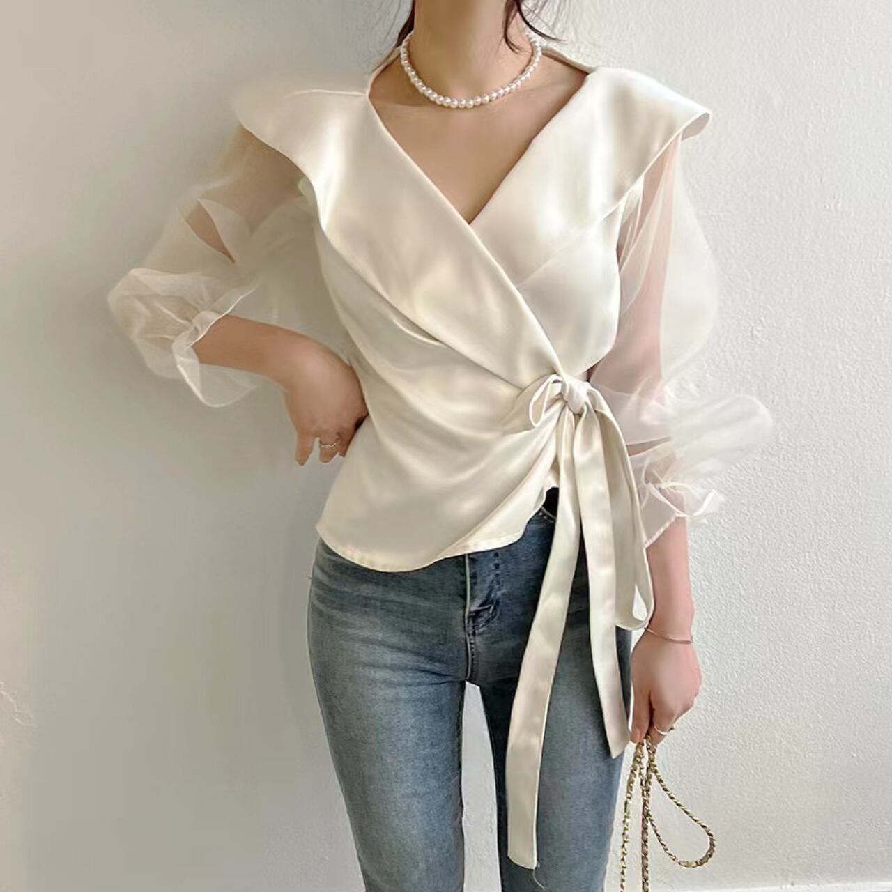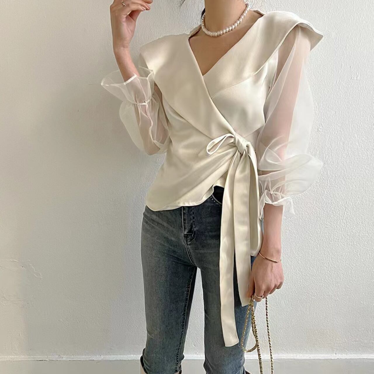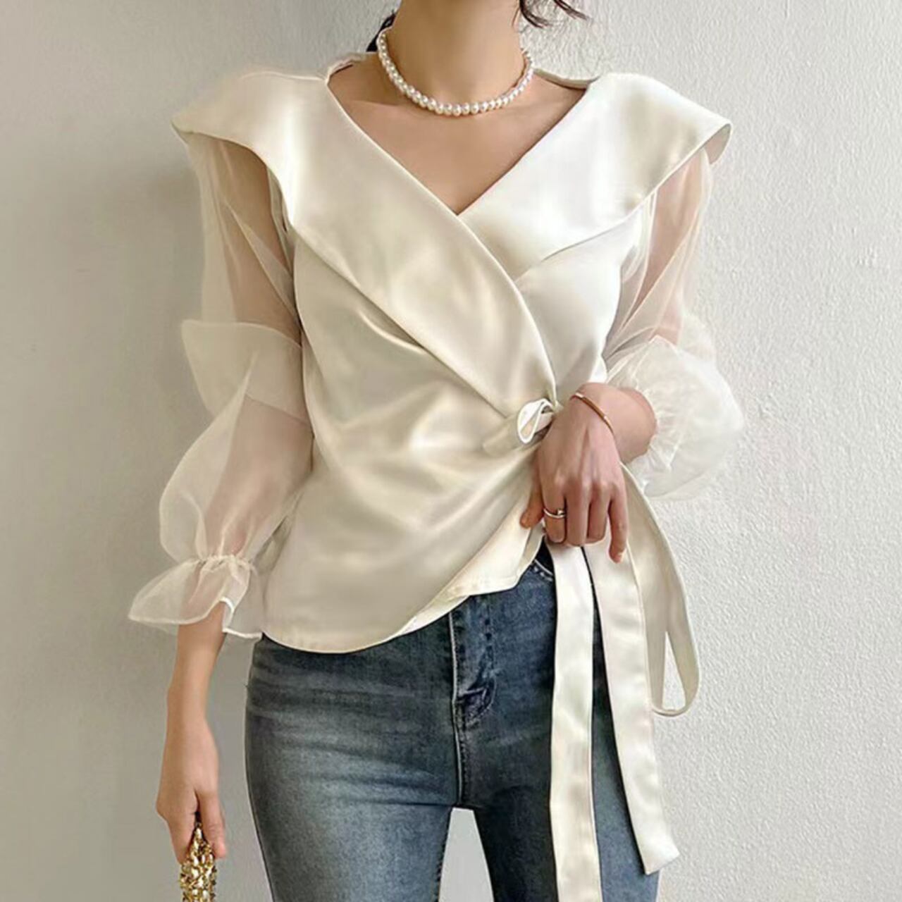 シアースリーブ ウエストリボンカシュクールブラウス A4151