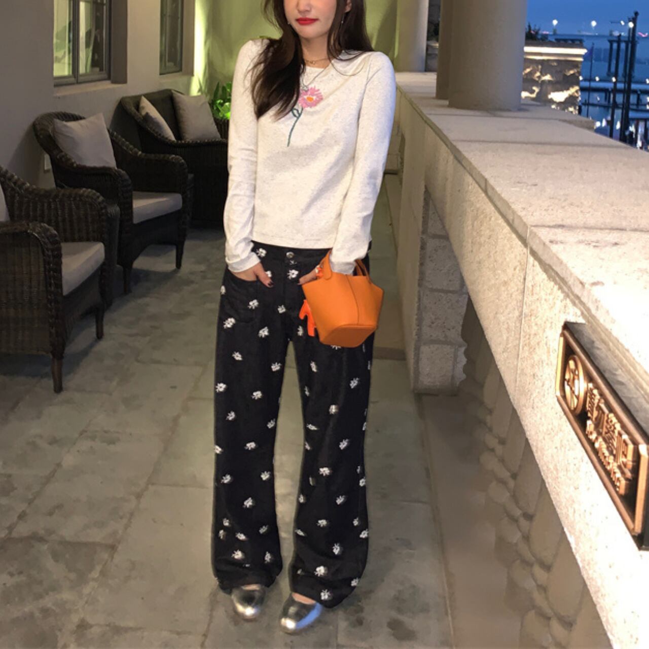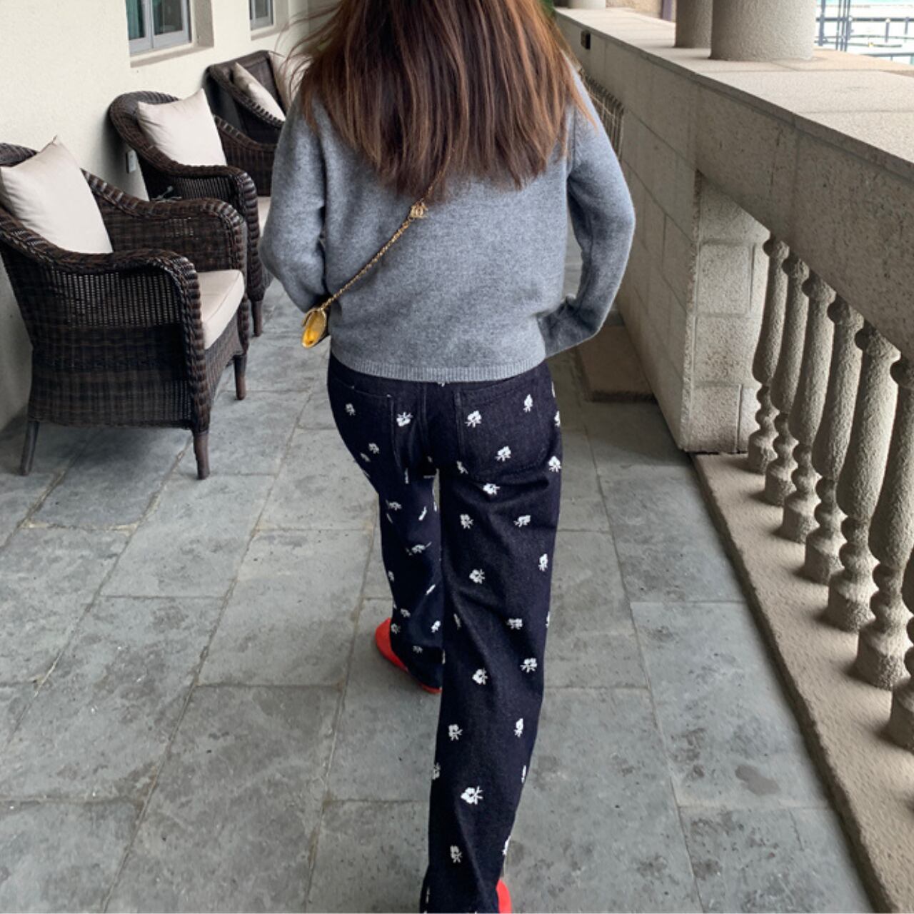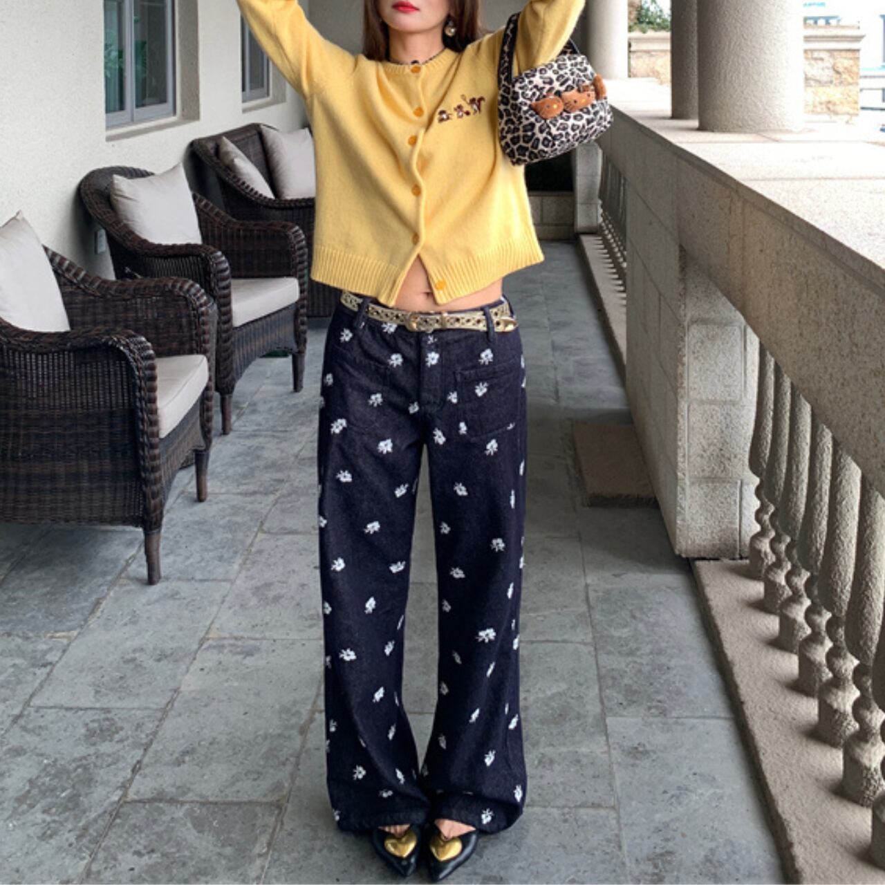 デニムに散りばめられた小花刺繍がふわっと可愛い、遊び心たっぷりのワイドデニムパンツです。シックなデニム地に真っ白な小花がぽんぽんと咲き誇り、カジュアルながらも甘さをプラスしてくれます。ゆったりとしたワイドシルエットがゆるっとリラックス感を演出し、トレンド感もばっちりです。前後にあしらわれた大きめポケットがカジュアルな雰囲気を引き立て、デイリー使いにぴったりな実用性も兼ね備えています。シンプルなトップスと合わせれば刺繍がぱっと主役になり、カジュアルからちょっぴりガーリーなスタイルまで幅広く楽しめます。いつものコーディネートにさらっと取り入れるだけで、こなれ感とおしゃれ度がぐんとアップする、ワードローブに加えたい特別な一本です。