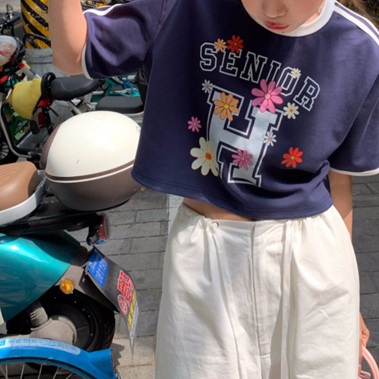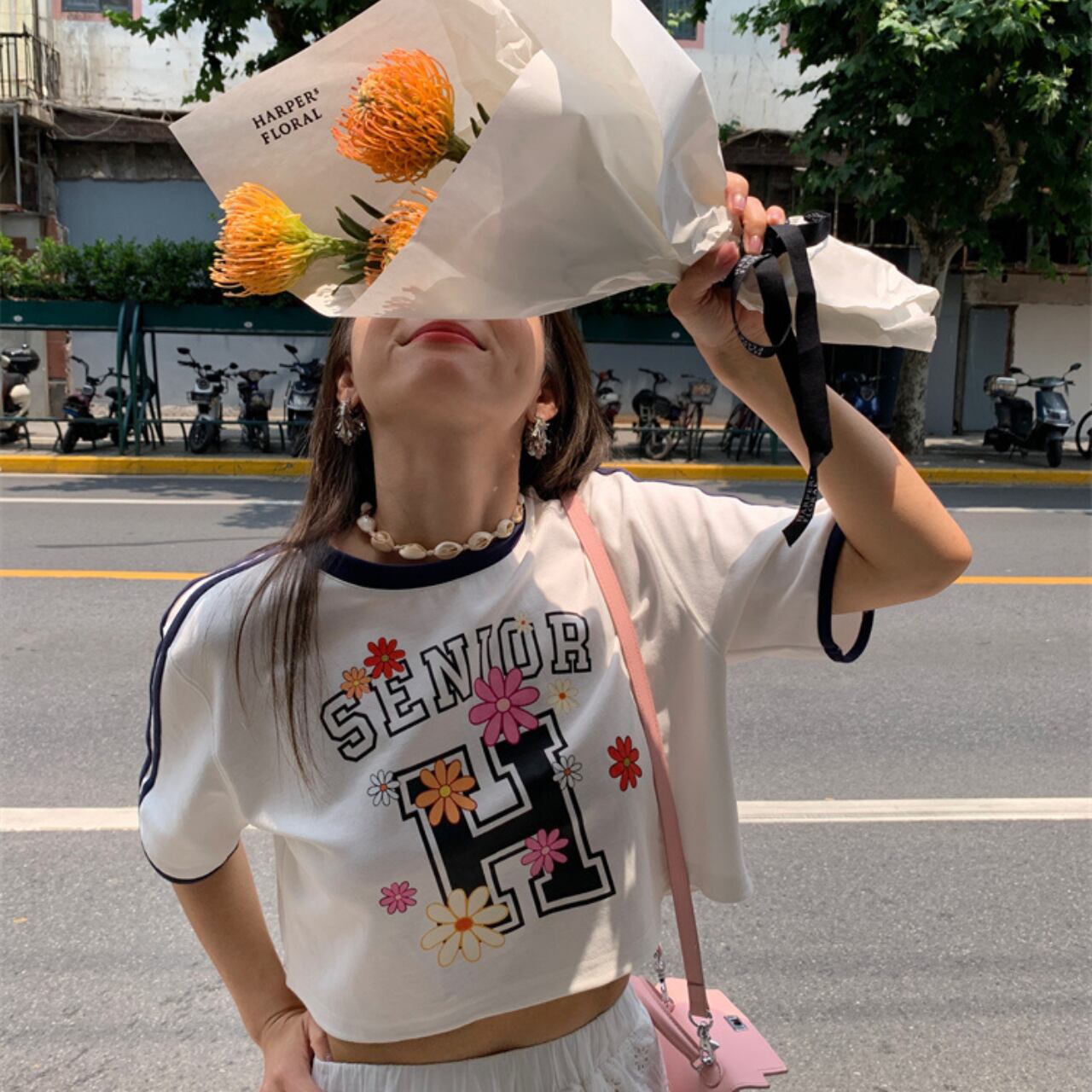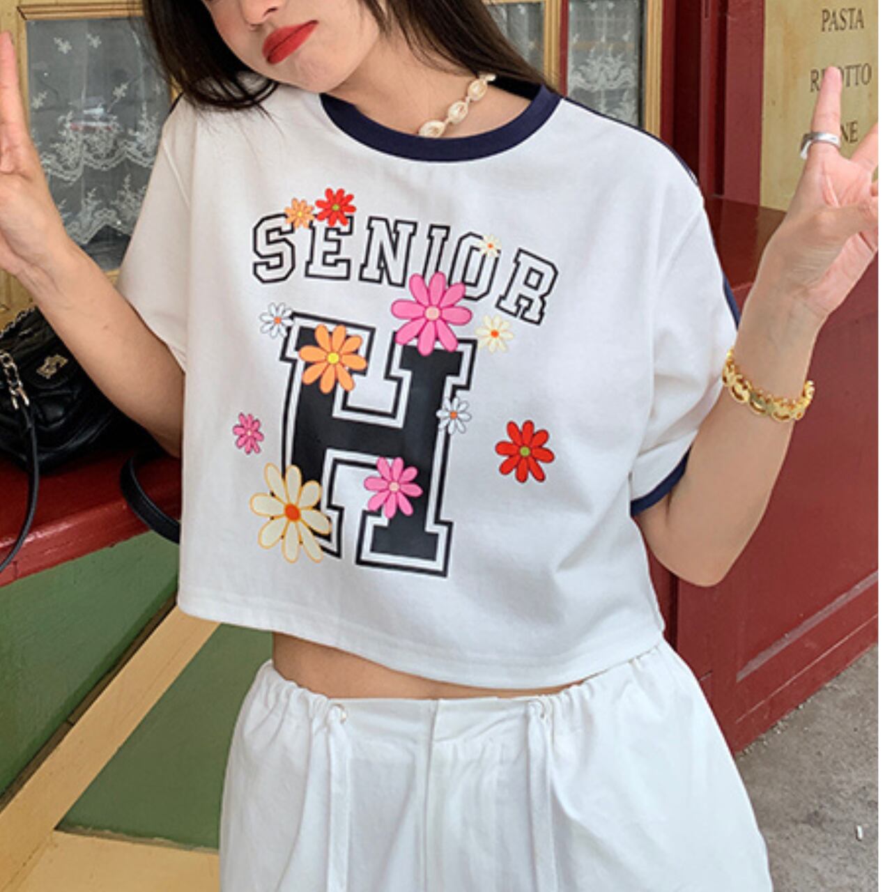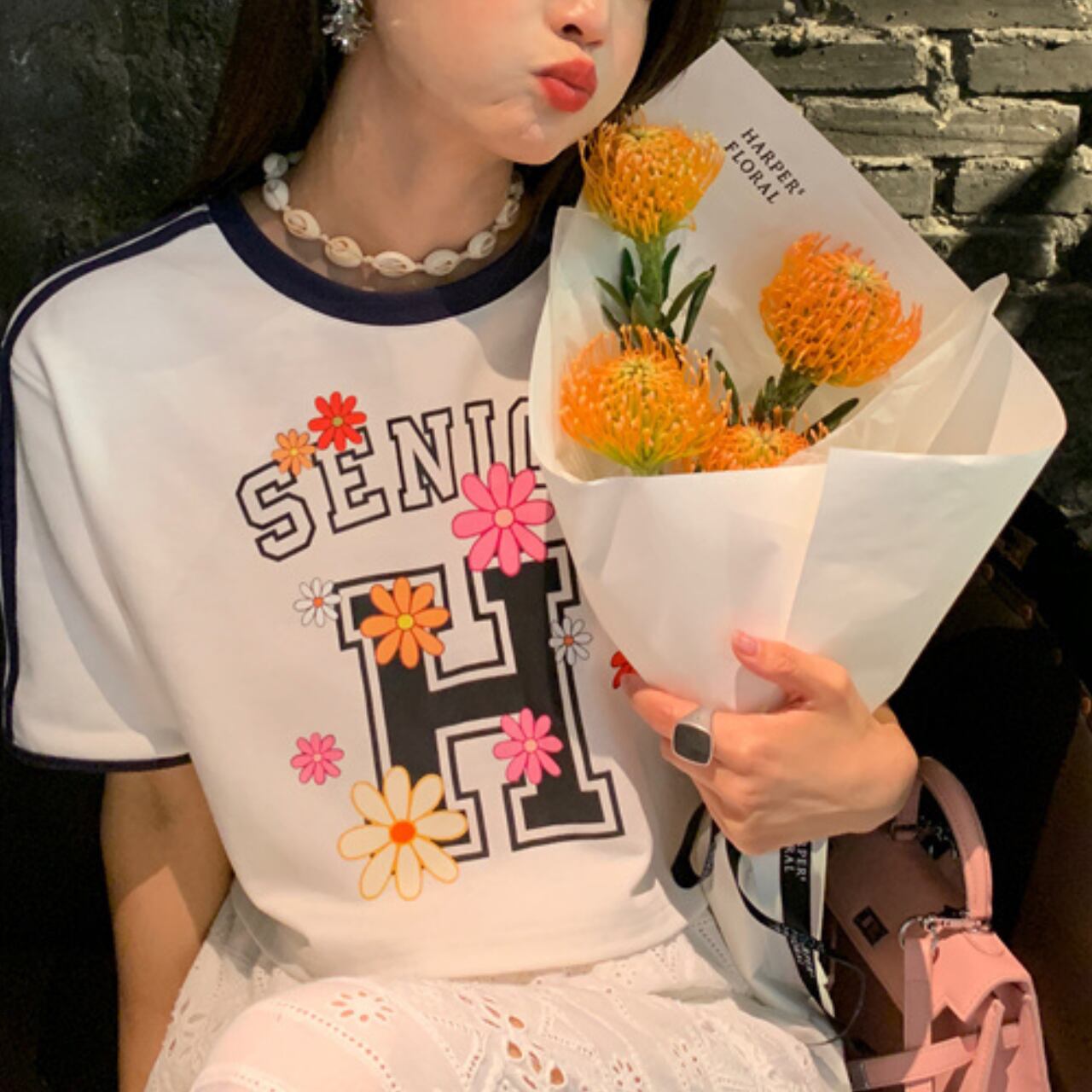 フラワーロゴプリント ショートTシャツ 2colors A4164
