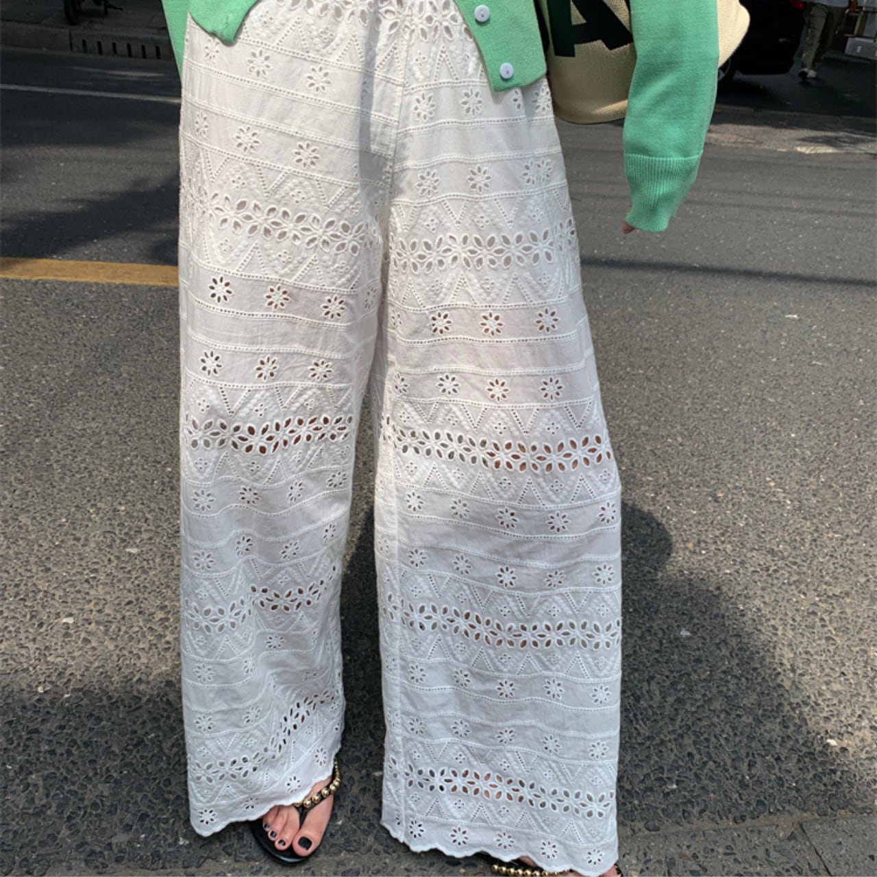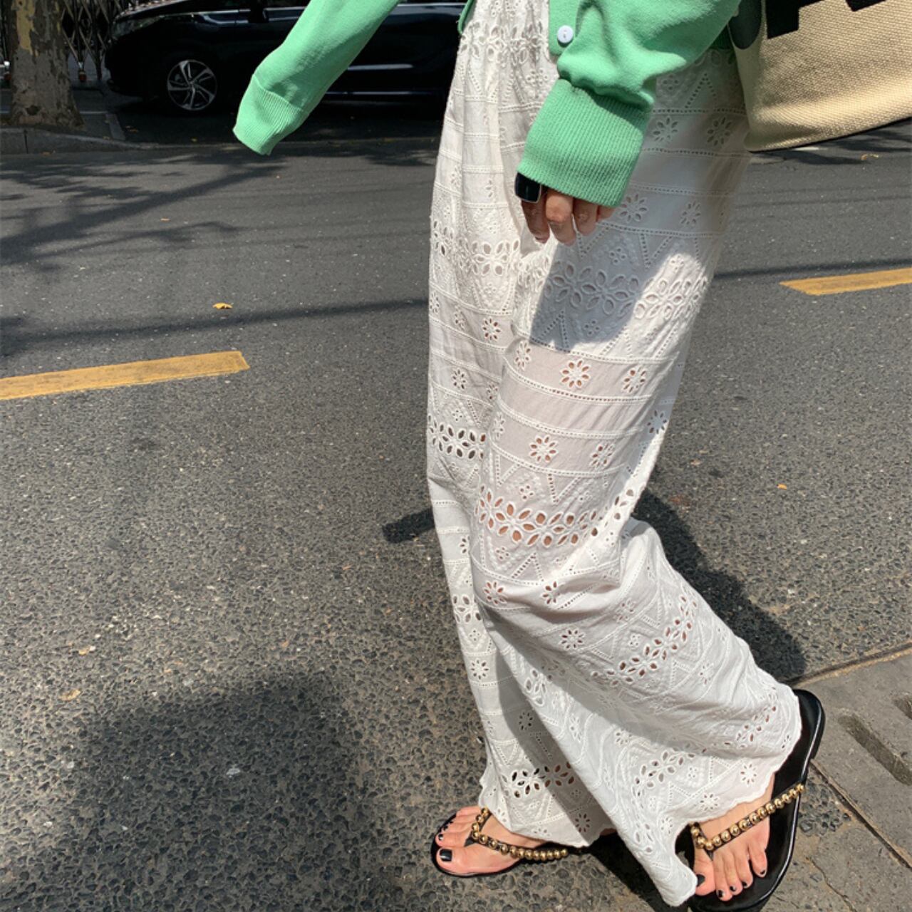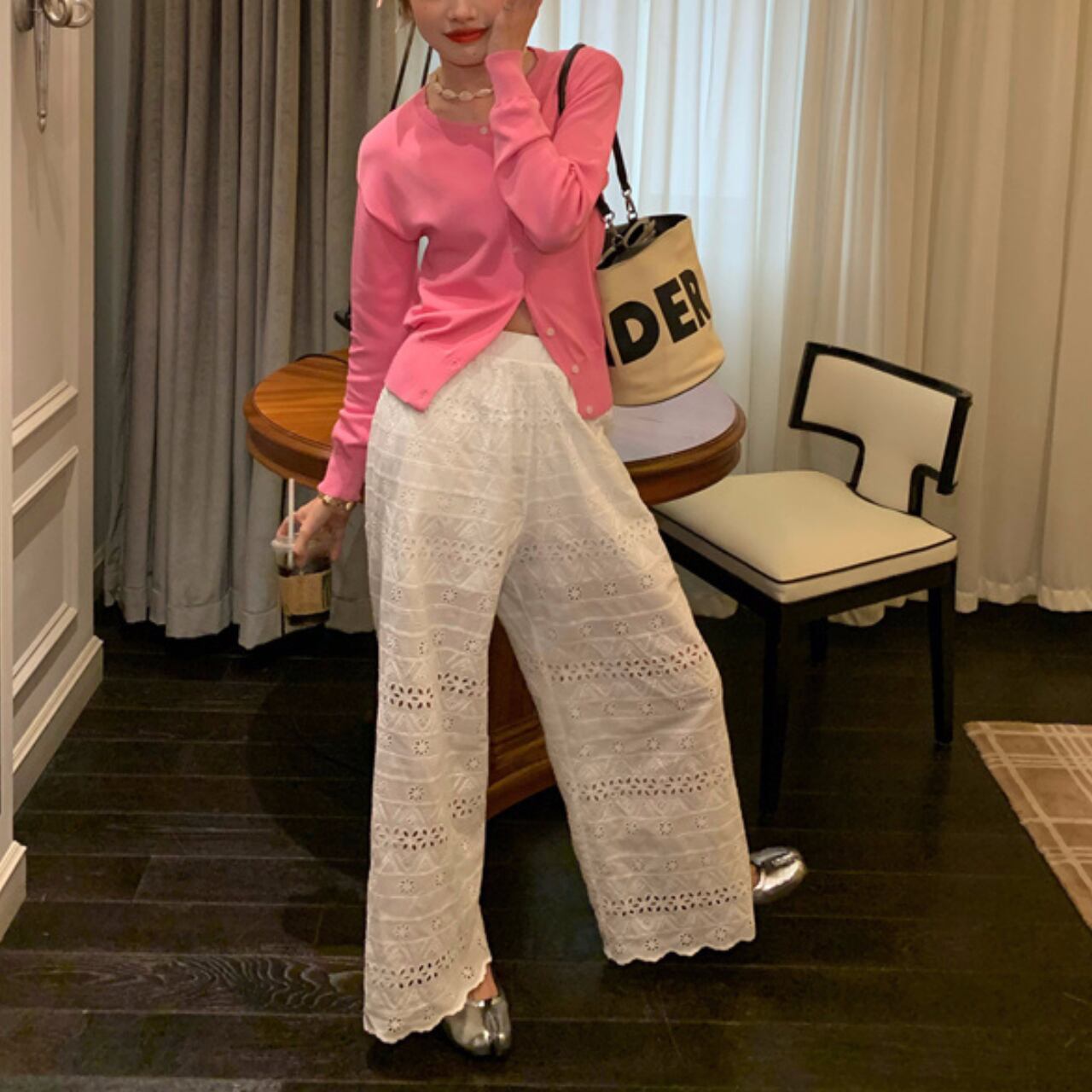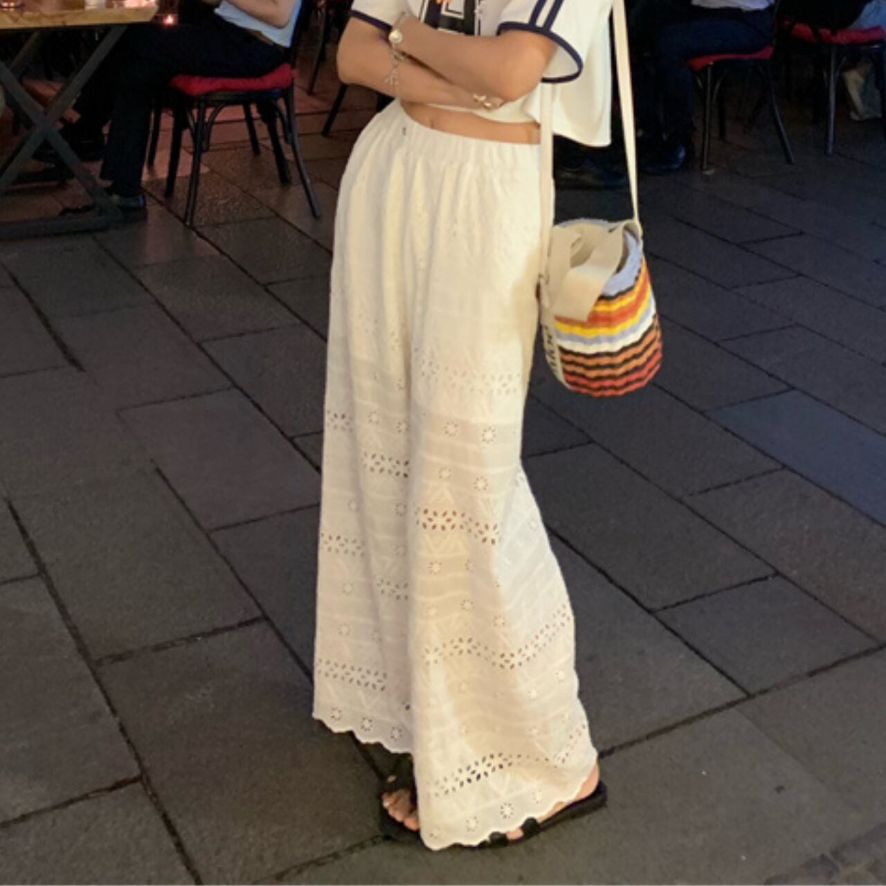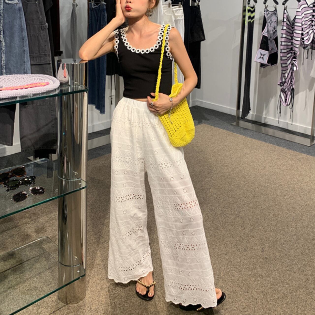 レース生地は滑らかでシワになりにくく、肌に優しく、通気性があります。ハイウエストなどでスタイルアップが叶うパンツです。