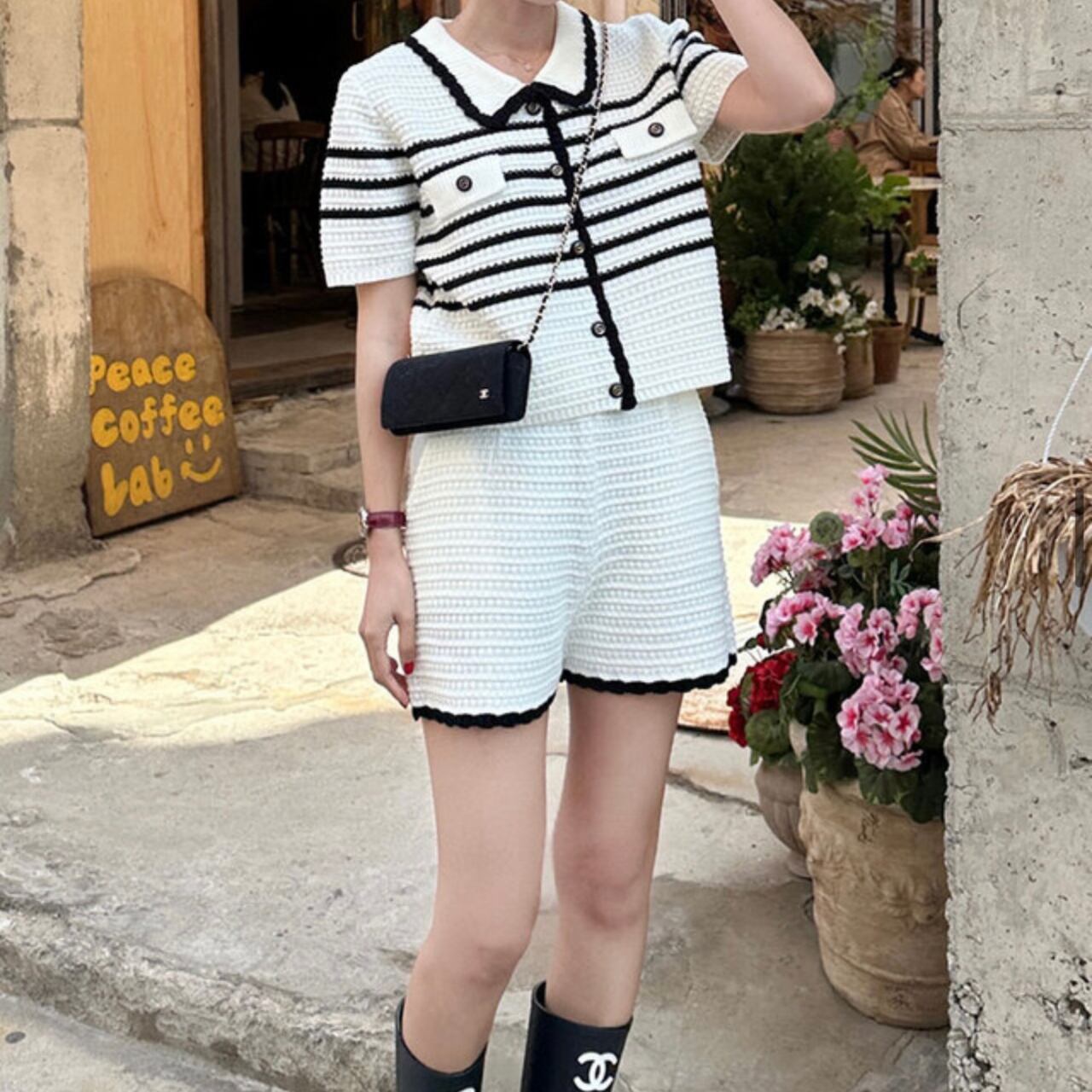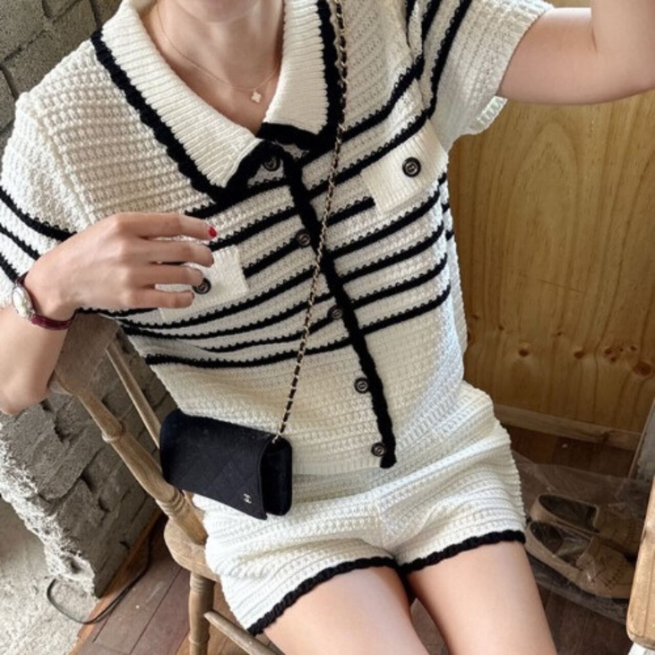 ストライプが夏らしい爽やかさを演出し、フリルディテールが女性らしさをプラスします。セットでも単品としてもご着用頂けるのでコーディネートの幅も広がります。