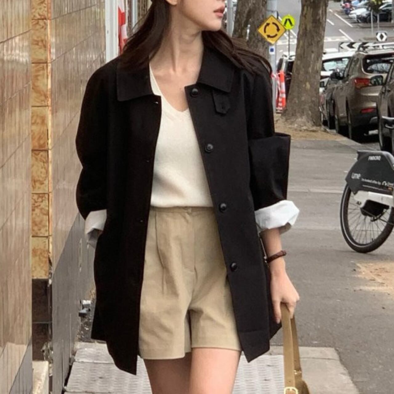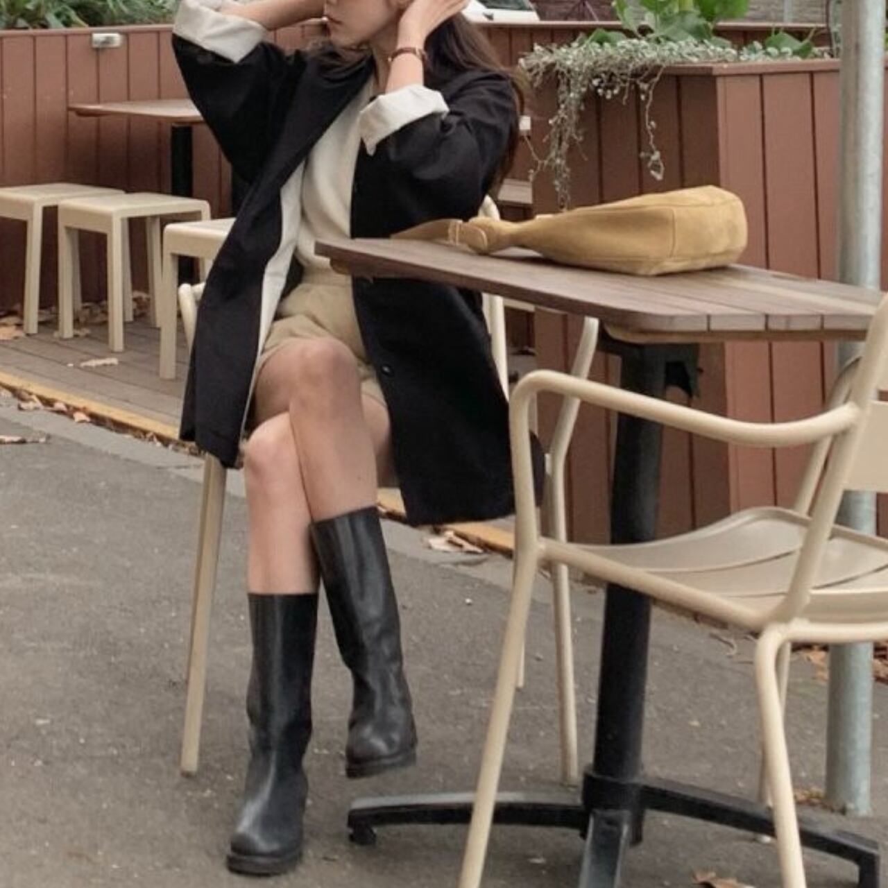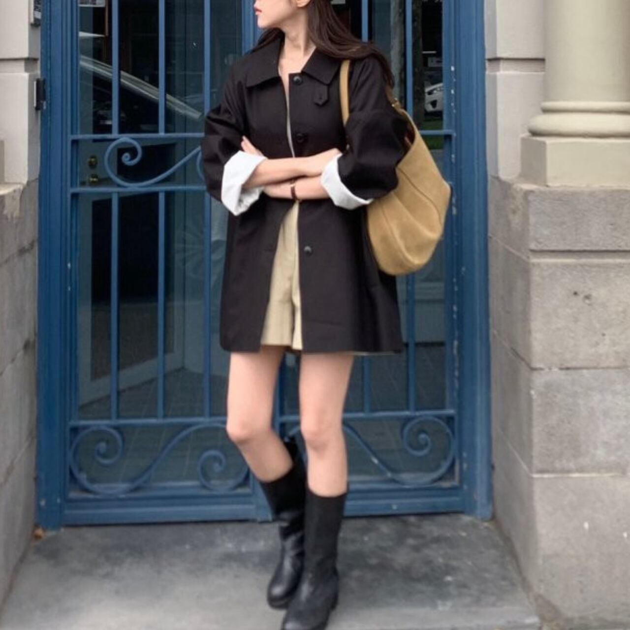 白いブラウスとスラックスの上に羽織って、クラシックなオフィススタイルに。カジュアルなニットやデニムに合わせれば、リラックスした休日スタイルも大人っぽく仕上がります。ロングブーツでモードに、スニーカーでカジュアルに、パンプスでエレガントにと、足元次第で印象は自在に変化してくれます。冬までの羽織り問題もこの一着があればすべて解決してくれるアイテムです。