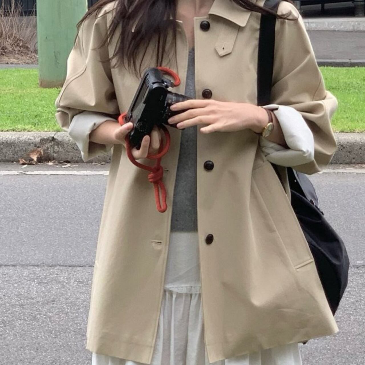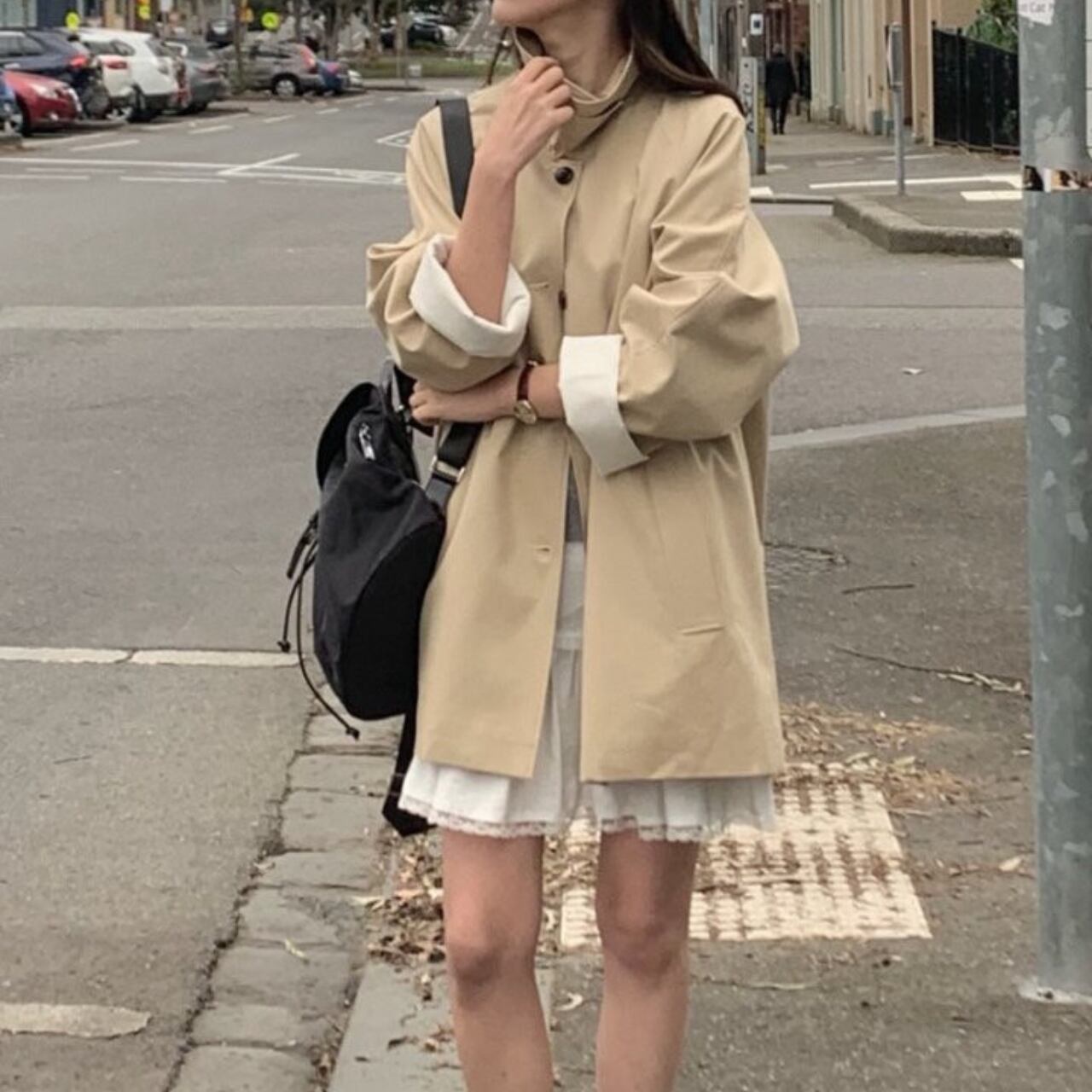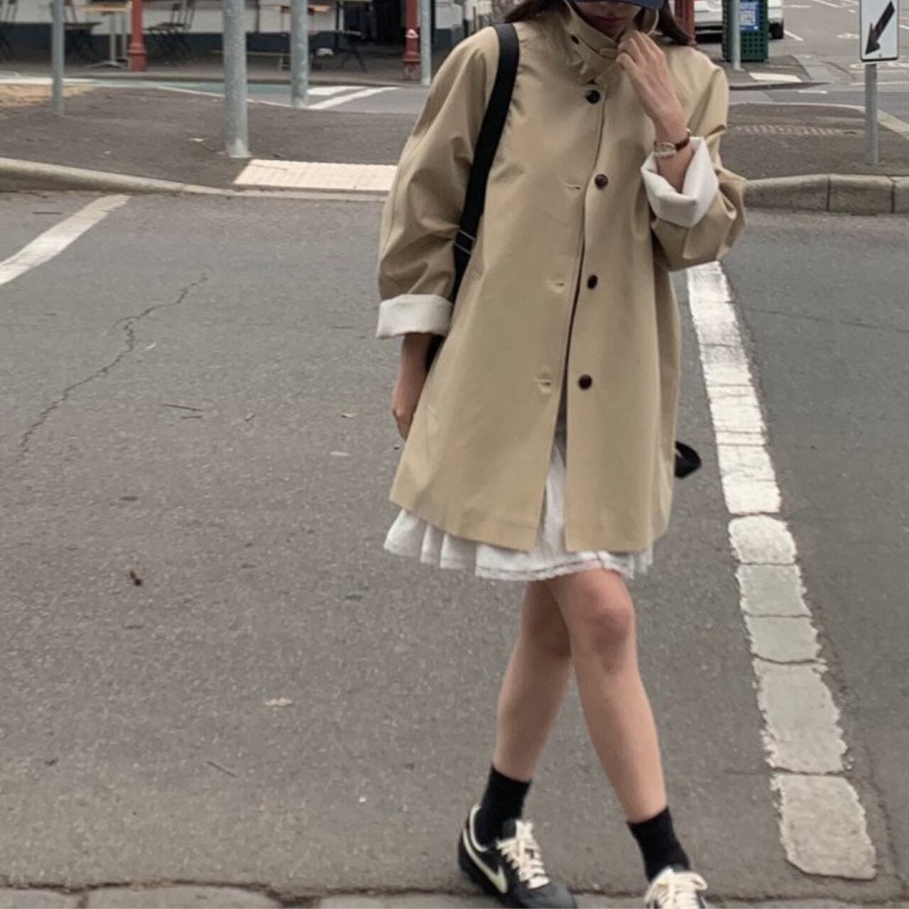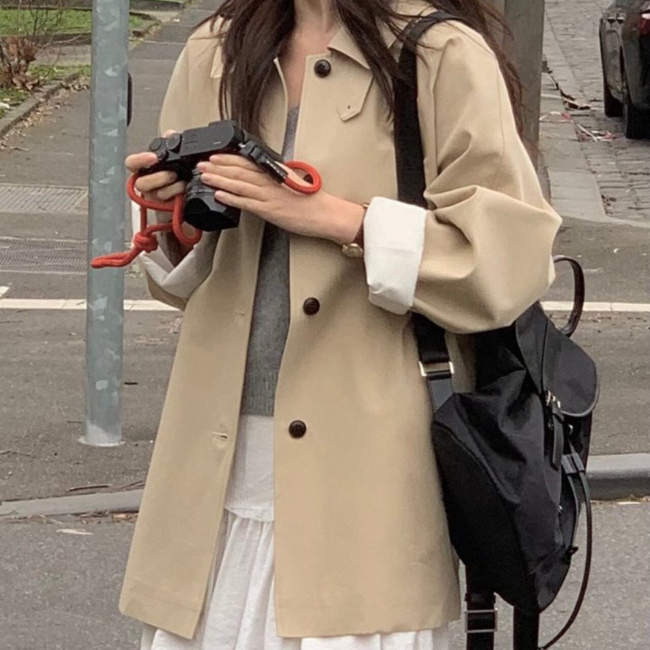 白いブラウスとスラックスの上に羽織って、クラシックなオフィススタイルに。カジュアルなニットやデニムに合わせれば、リラックスした休日スタイルも大人っぽく仕上がります。ロングブーツでモードに、スニーカーでカジュアルに、パンプスでエレガントにと、足元次第で印象は自在に変化してくれます。冬までの羽織り問題もこの一着があればすべて解決してくれるアイテムです。