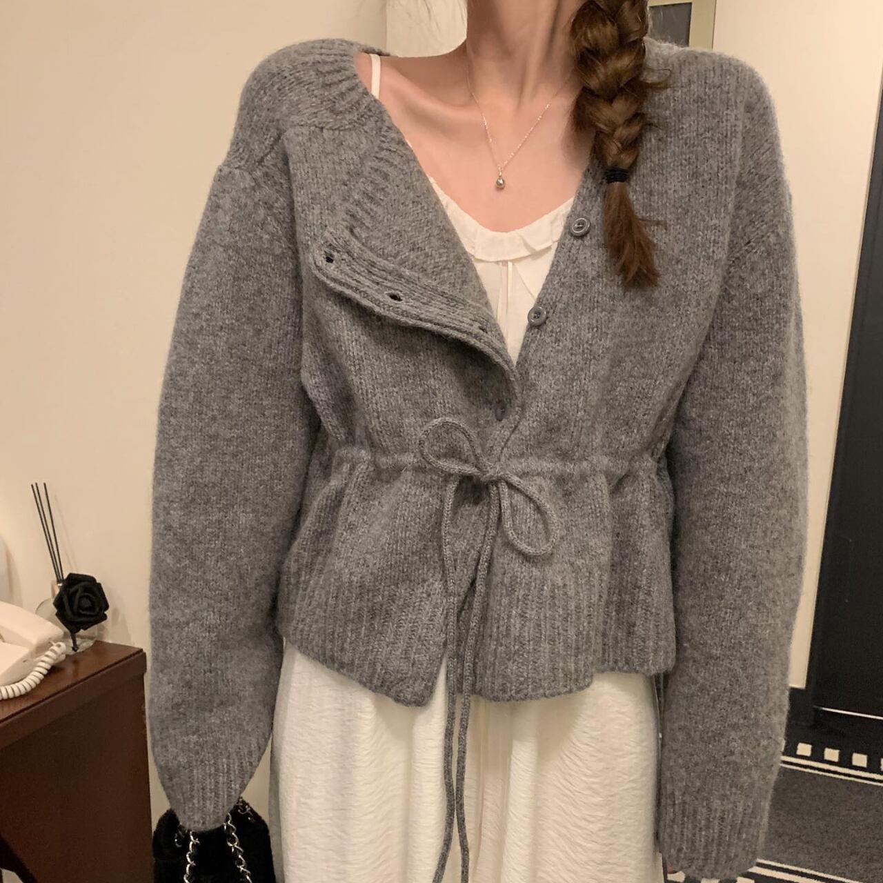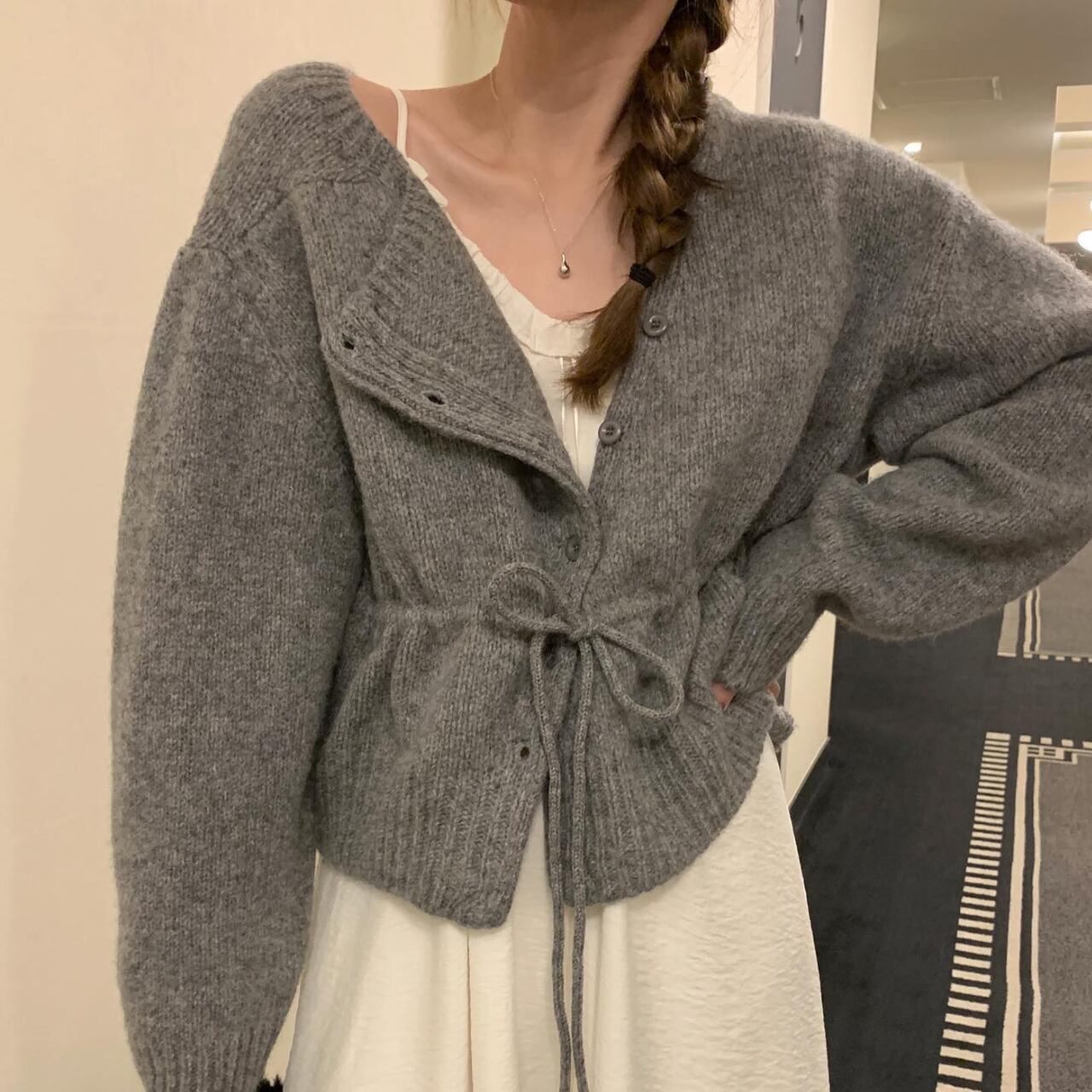 キュートなポイントになるリボン紐でお好きなシルエットに調節可能です。ワンピースの上からルーズに羽織りとして着てもかわいい一着です。