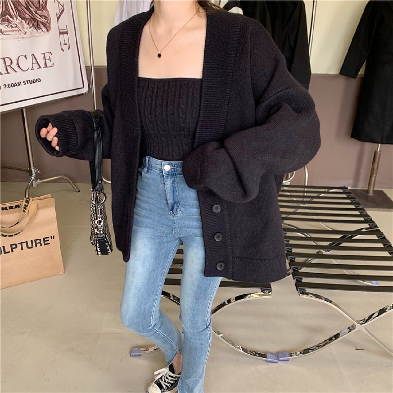 ニット素材を使用したカーディガンと、ベアトップの2点セットです。重ね着にもおすすめなこのセットは、さまざまなスタイルにマッチします。