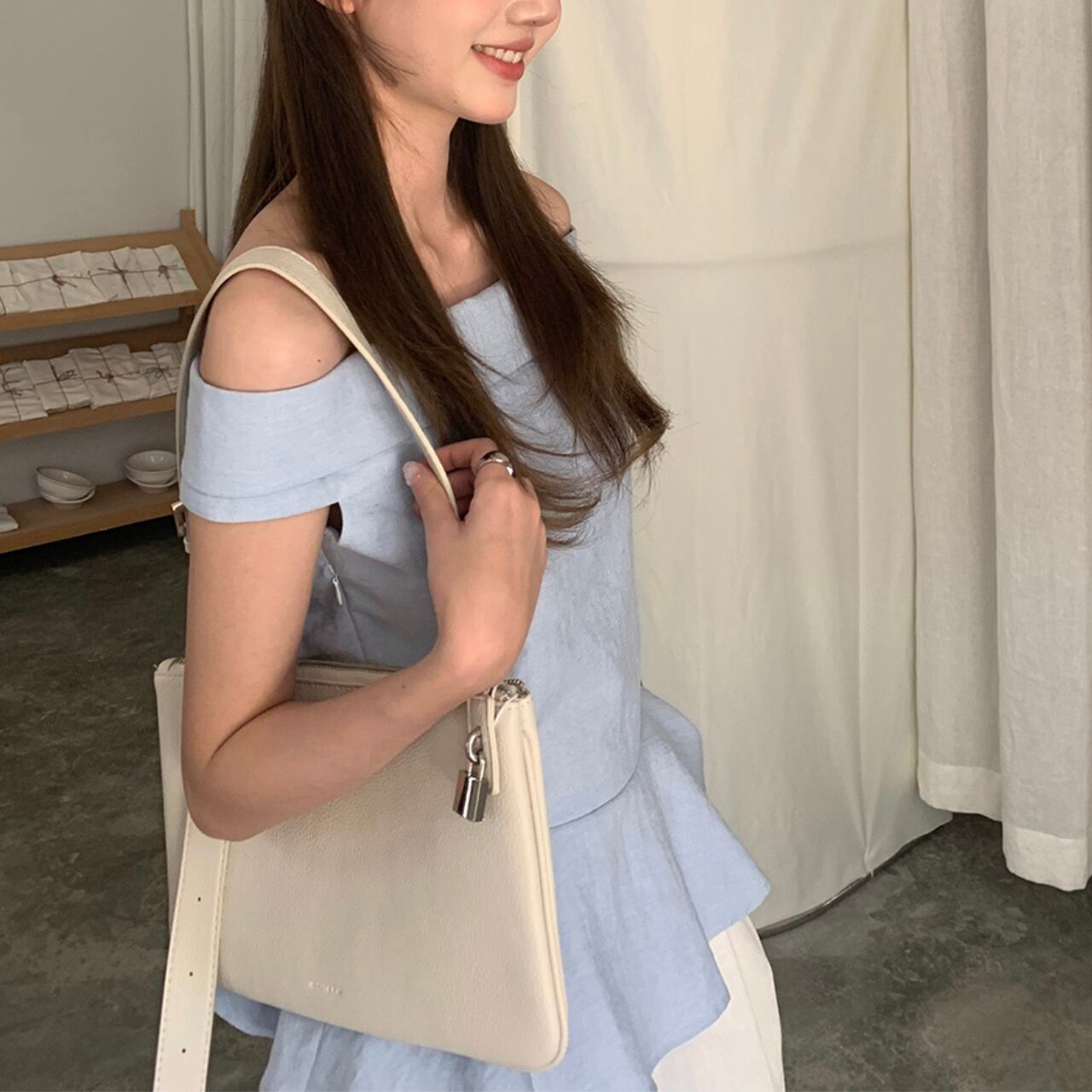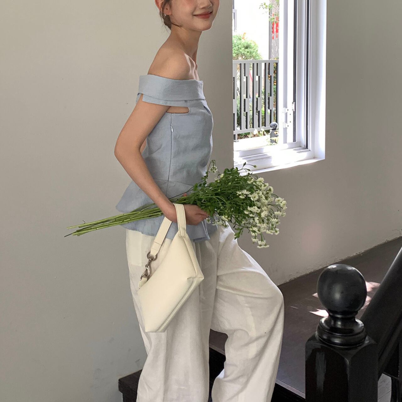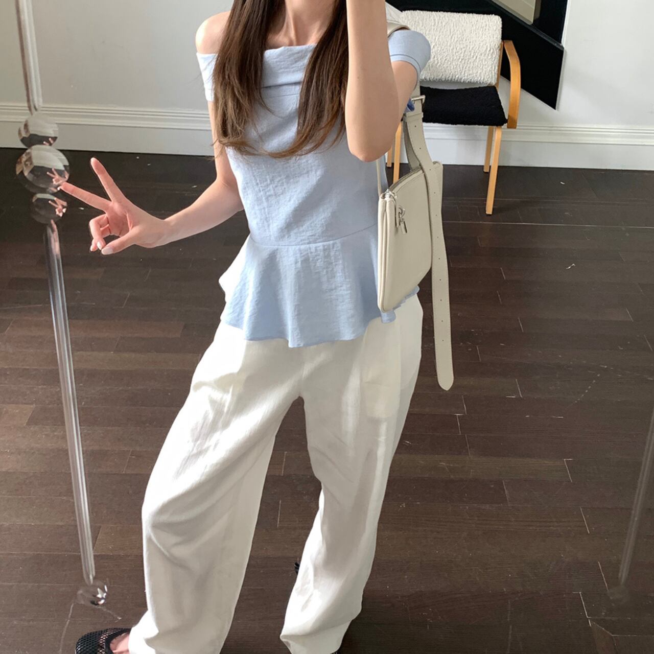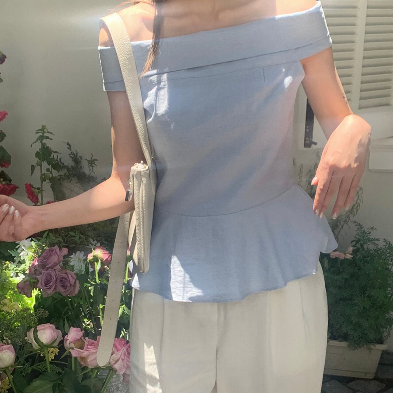 ロールオフショルダー フリルブラウス A4238