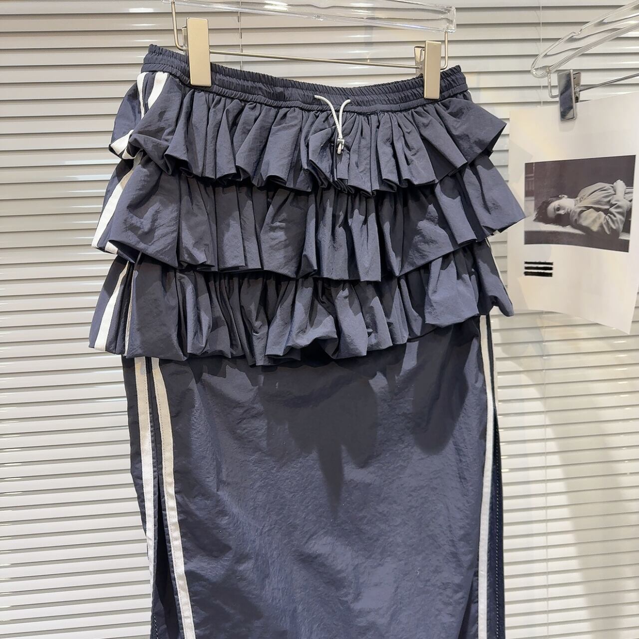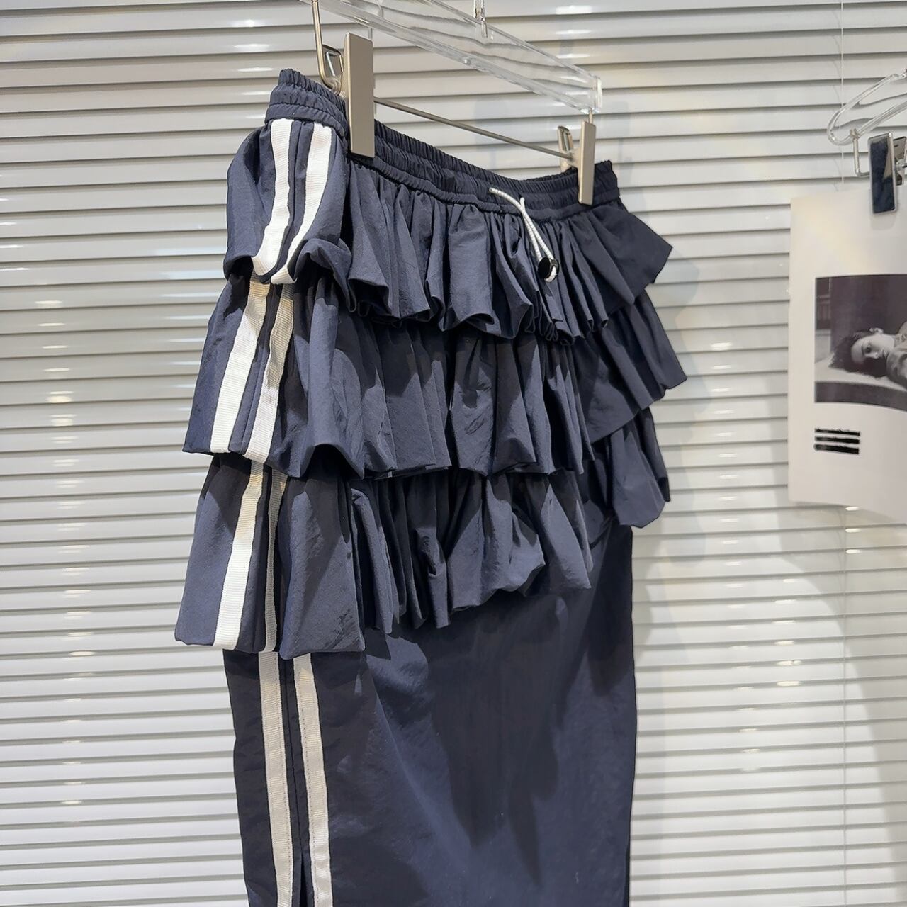 華やかなフリルとサイドラインが入ったmixスタイルのスカートです。