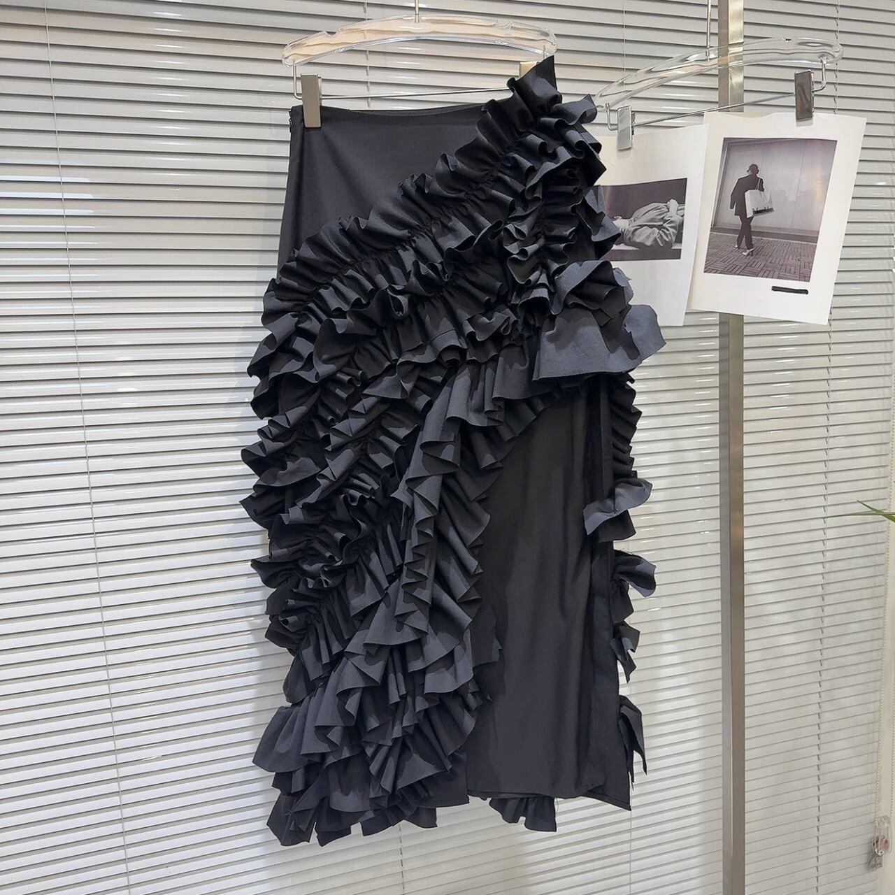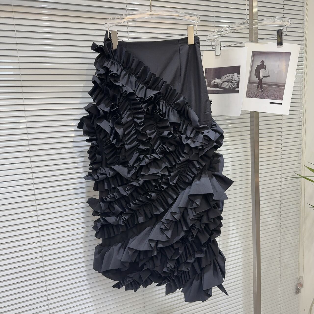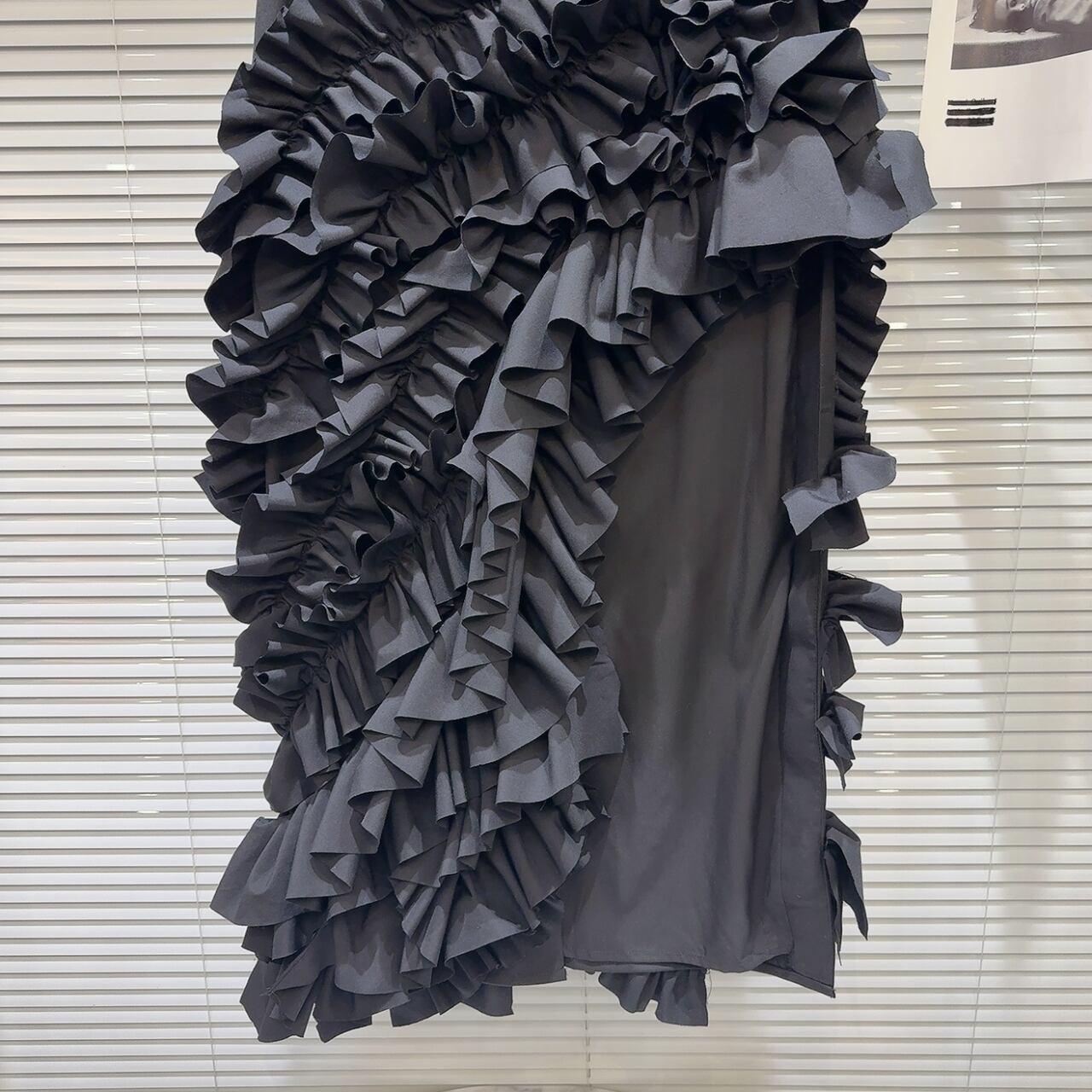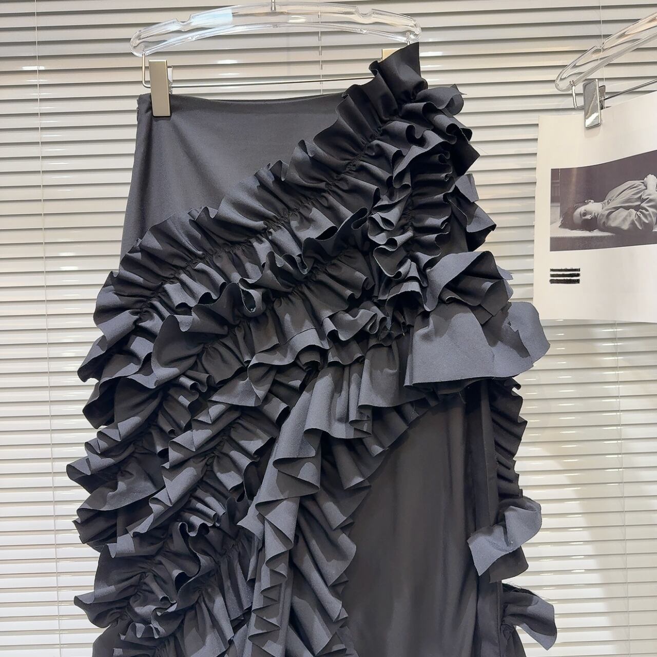 カジュアルスタイルからフォーマルなシーンまで、おしゃれに着こなせるスカートです。細かいフリルディティールが甘すぎないのもポイントです。