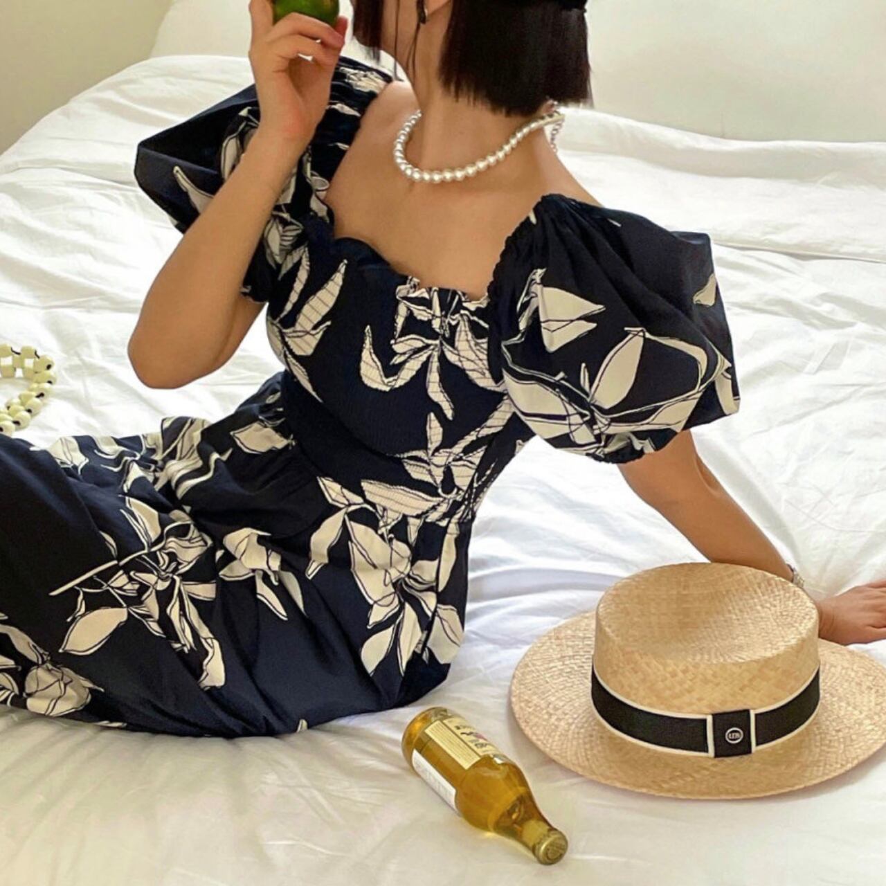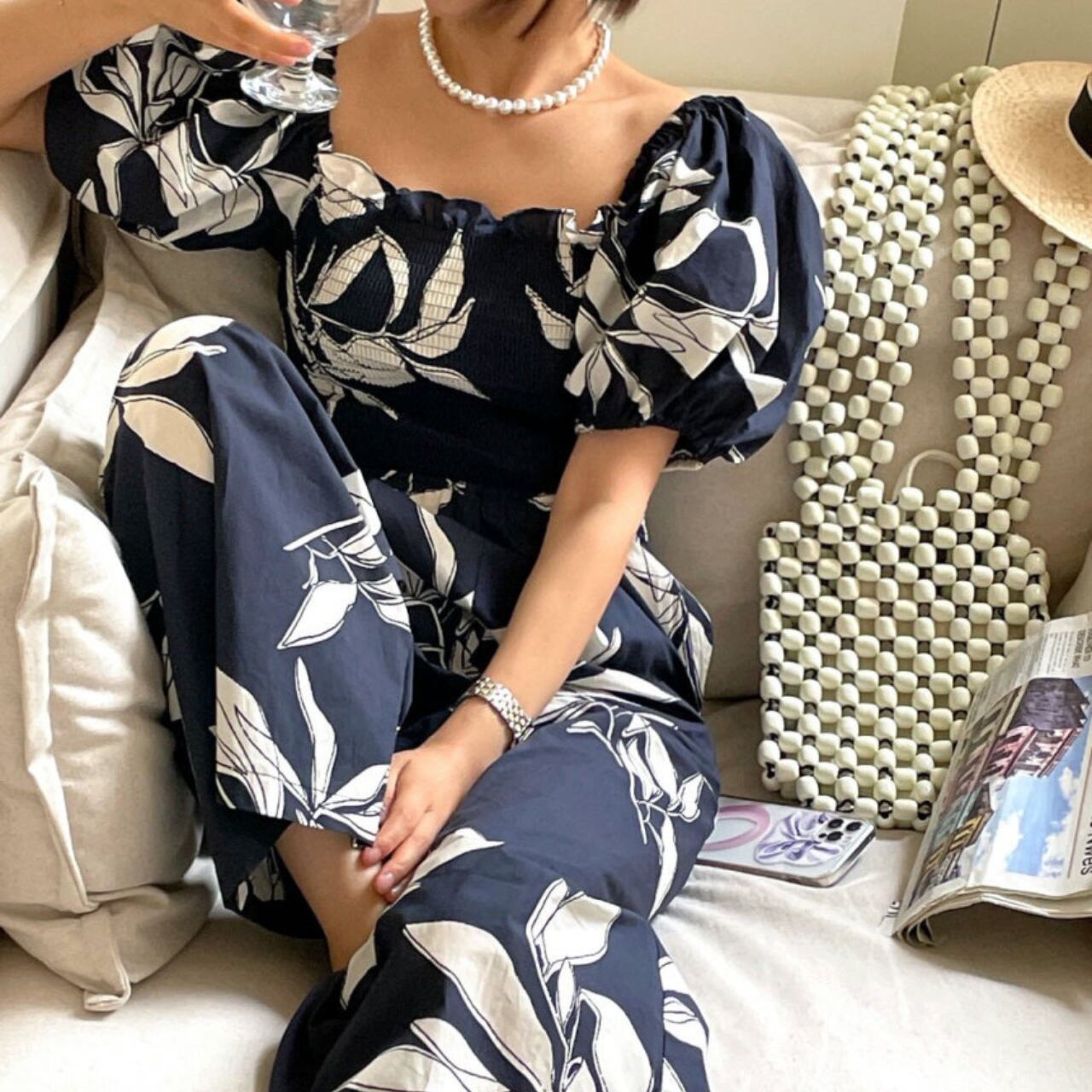 パフスリーブ フラワーリゾートオールインワン A4248