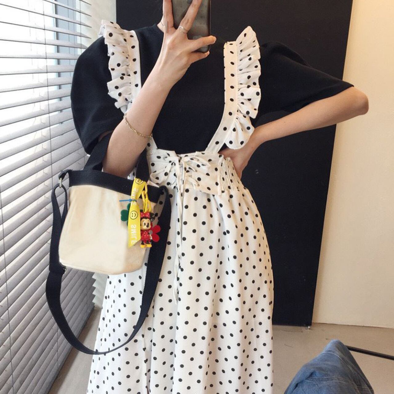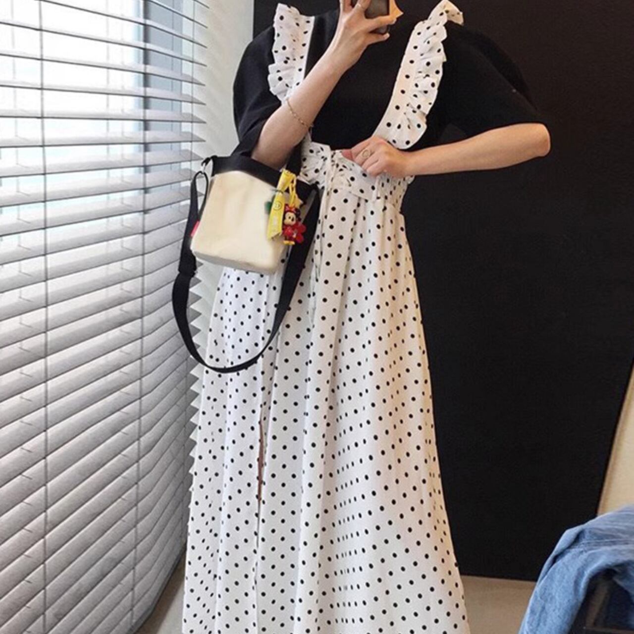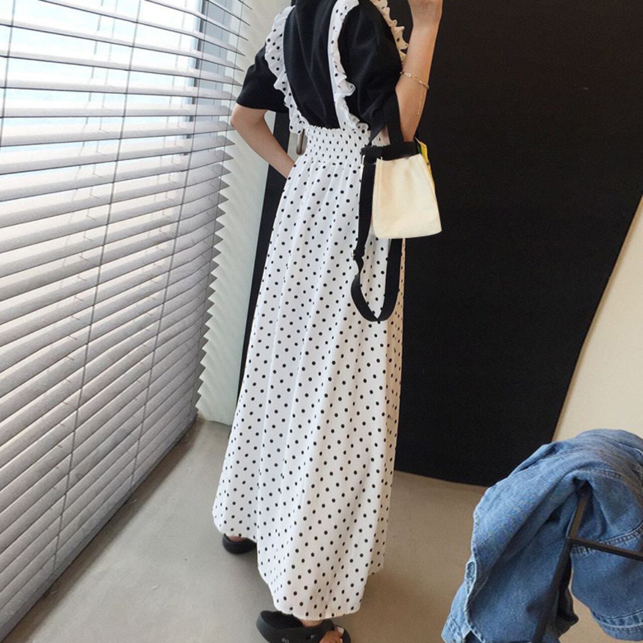 フリルストラップ ドットジャンパースカート A4253