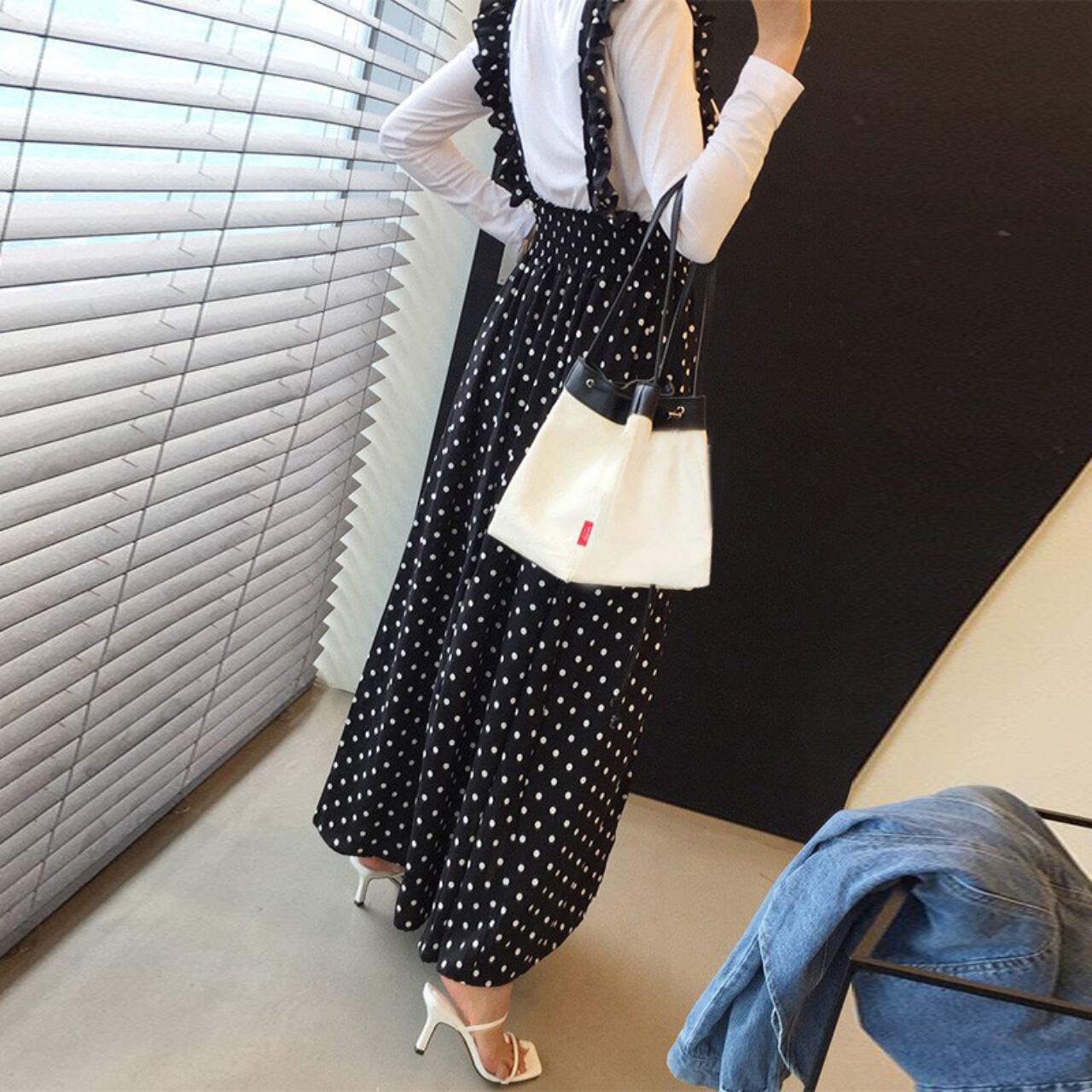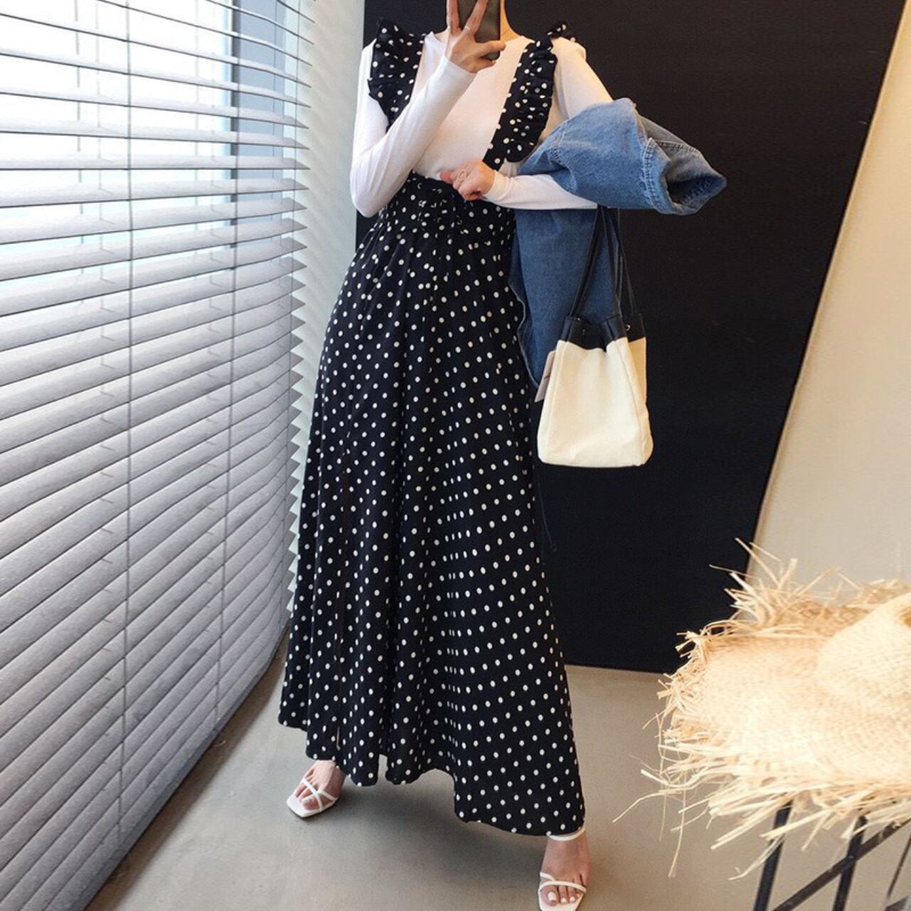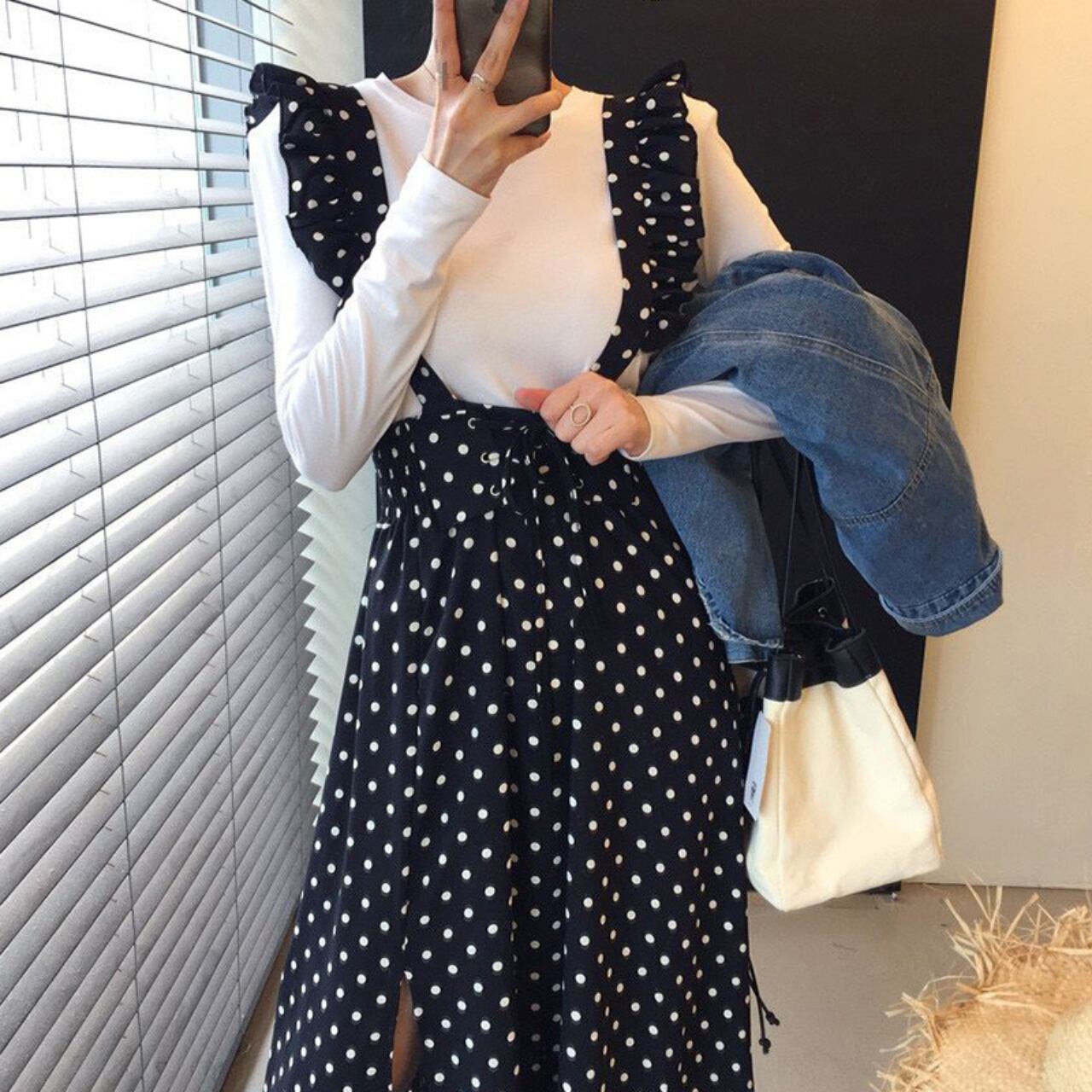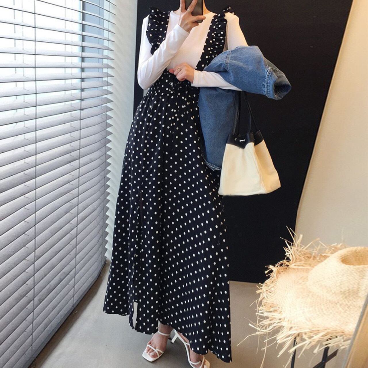 フリルストラップ ドットジャンパースカート A4254