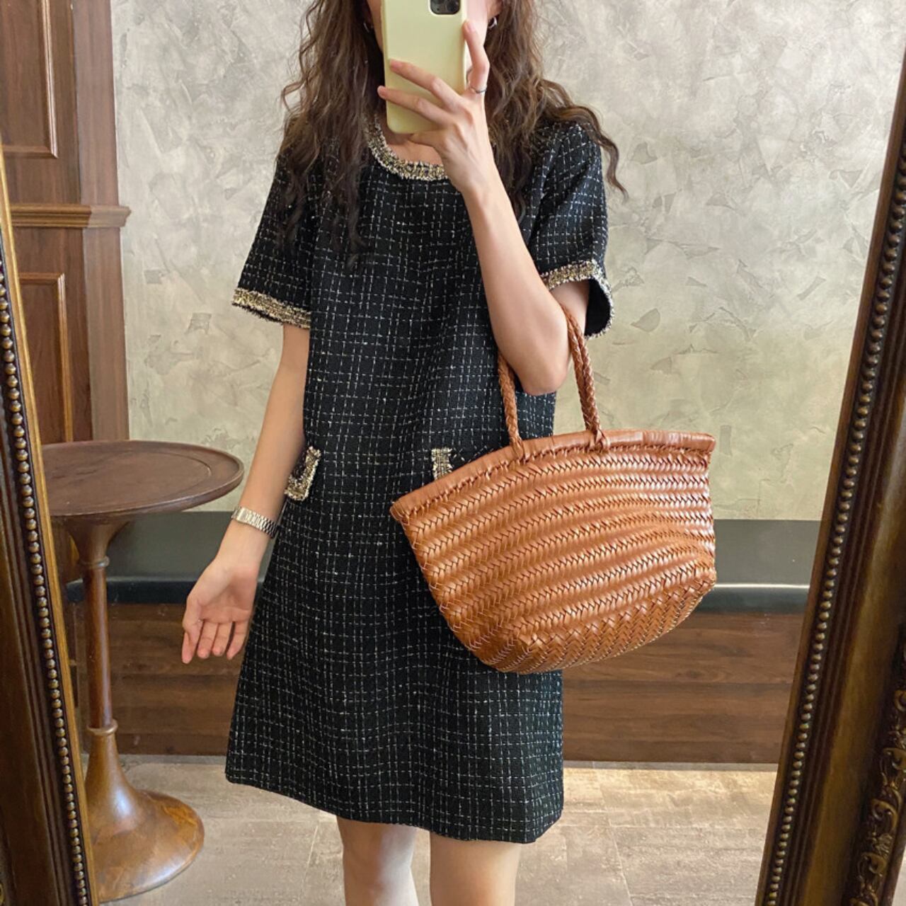 ツイードスクエア ミニワンピース A4258