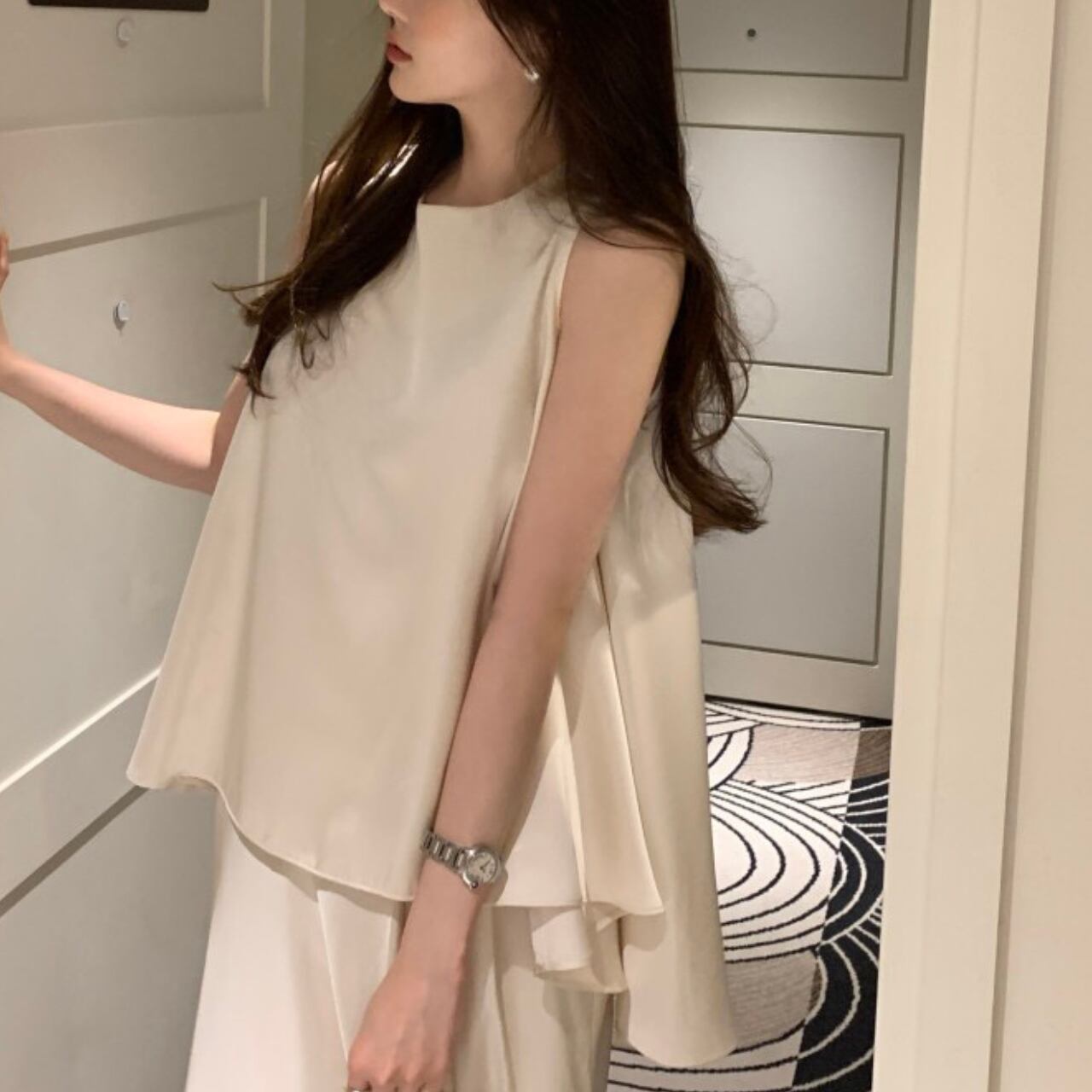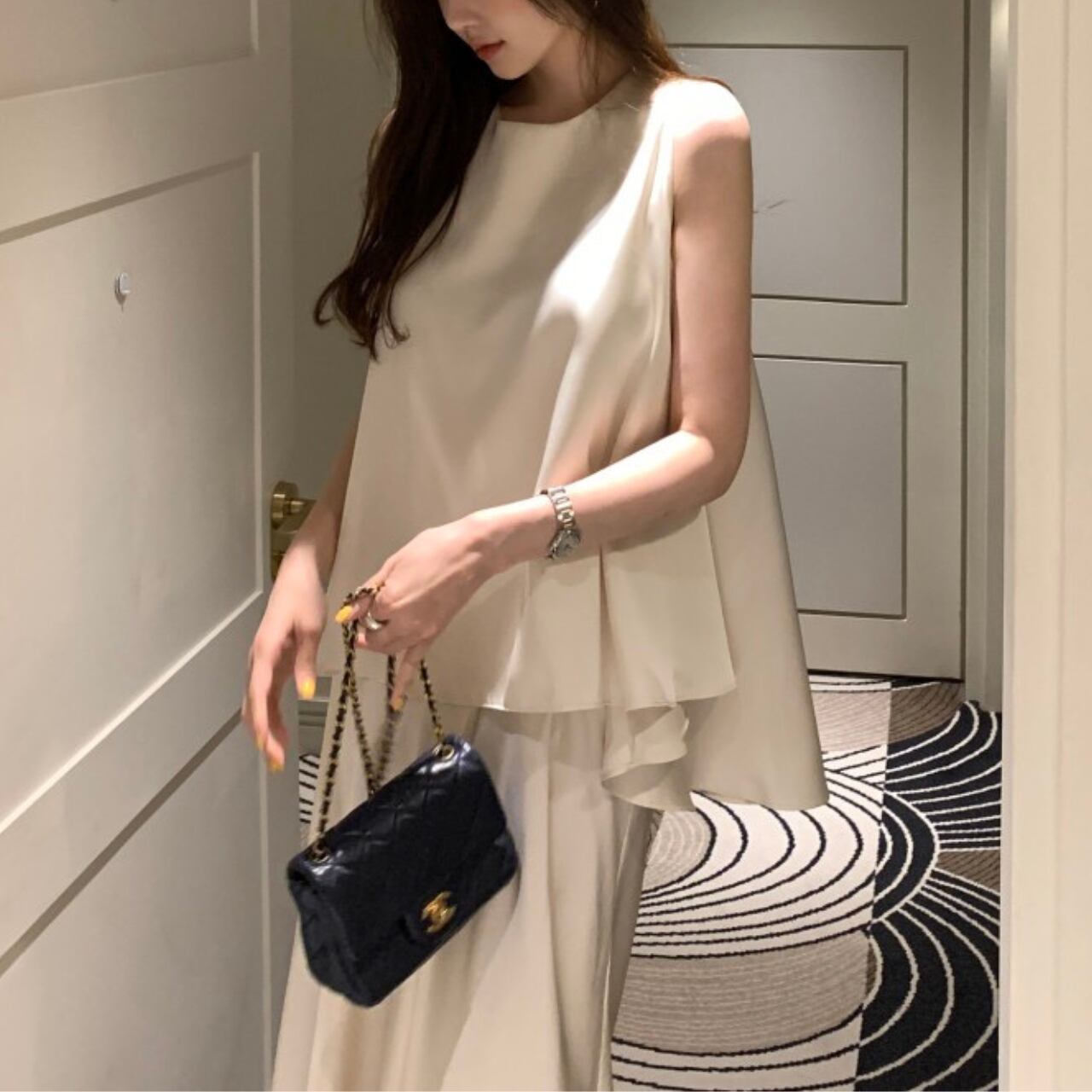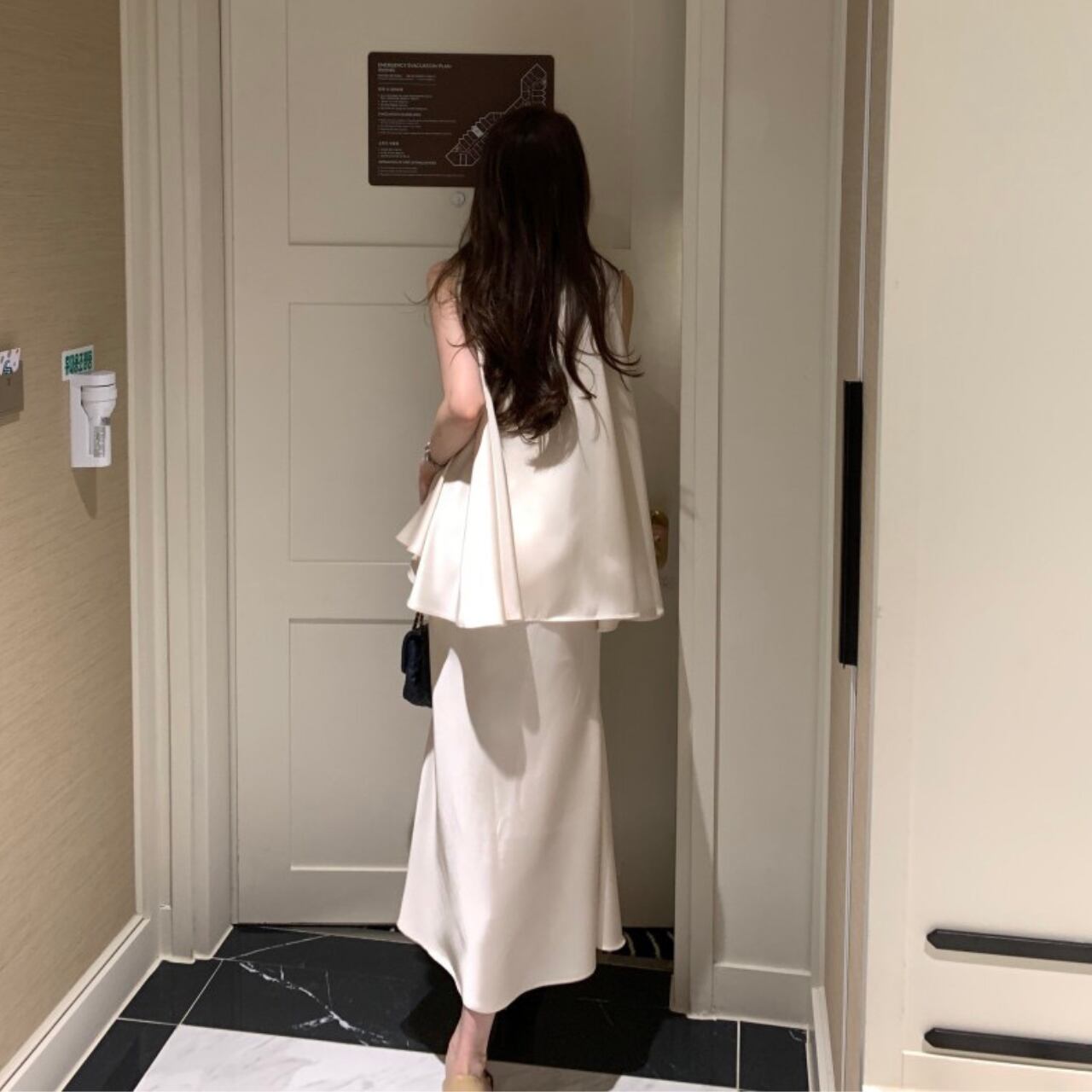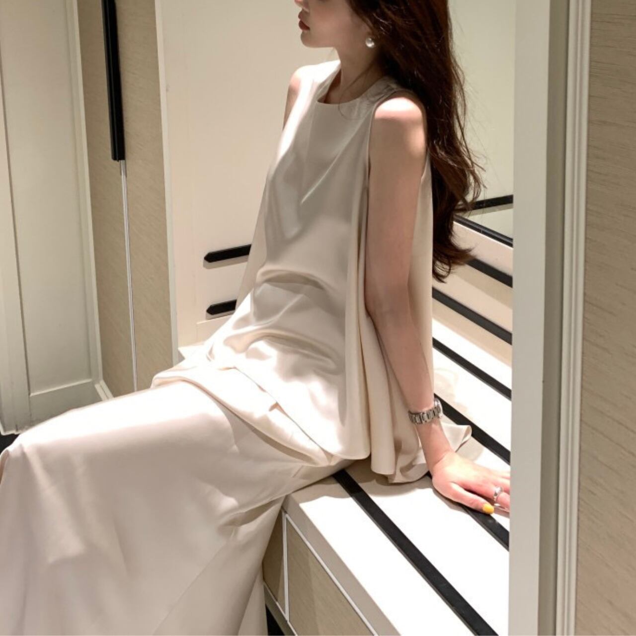 アシンメトリー サテンノースリーブ&スカート セットアップ A4262