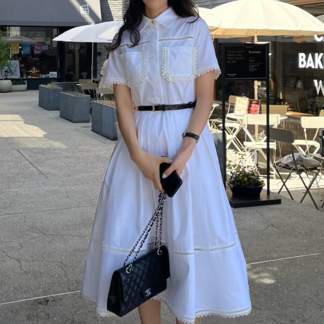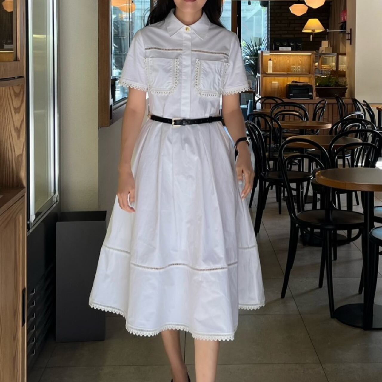 上品で華やかな印象のフレンチガーリーフレアワンピースです。ベルトでウエストマークすることで女性らしいシルエットを引き立て、デイリーから特別なシーンまで幅広く活躍する一着です。
