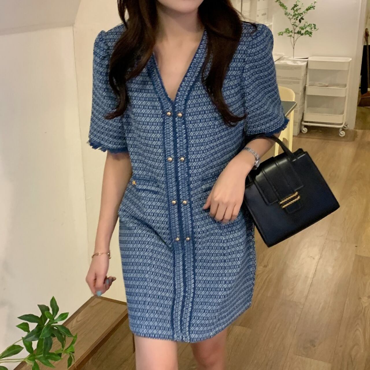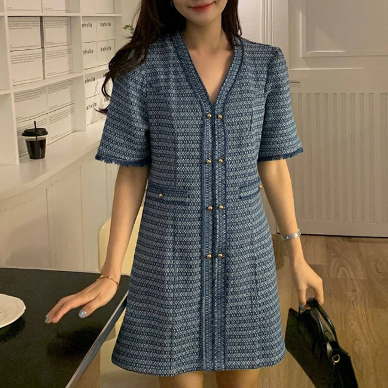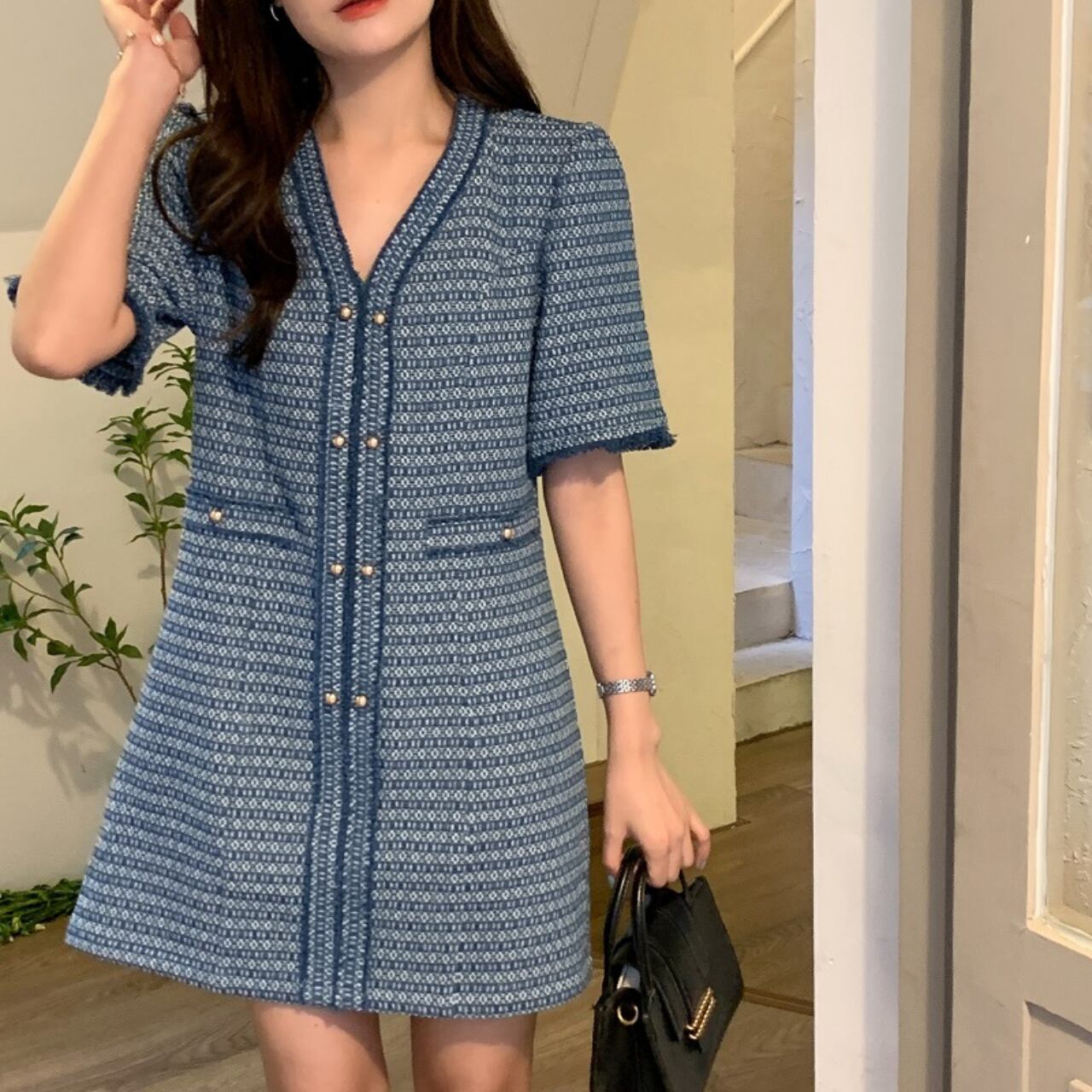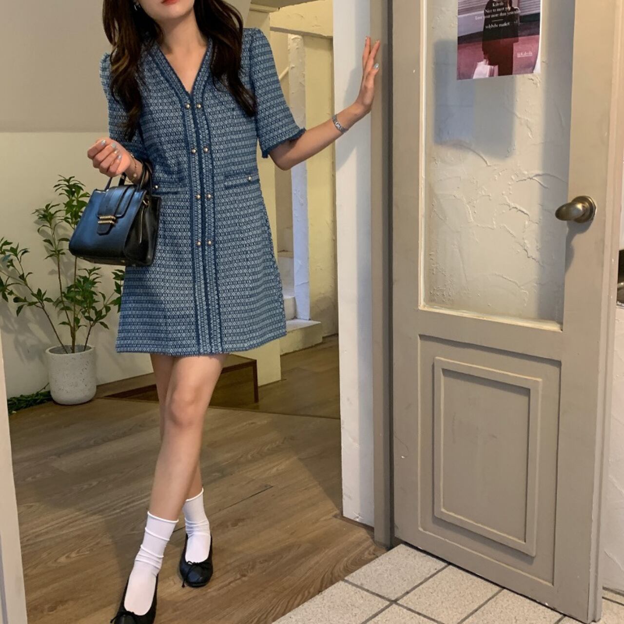上品でフェミニンな柄のワンピースです。涼しげなブルーのカラーがこれからの時期に映える一着です。