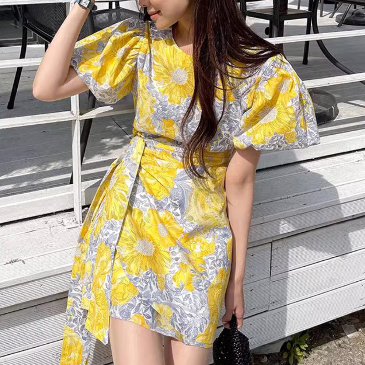 フラワープリントが魅力的で、デートやパーティー、普段使いにもぴったりで、様々なシーンで華やかさを演出します。