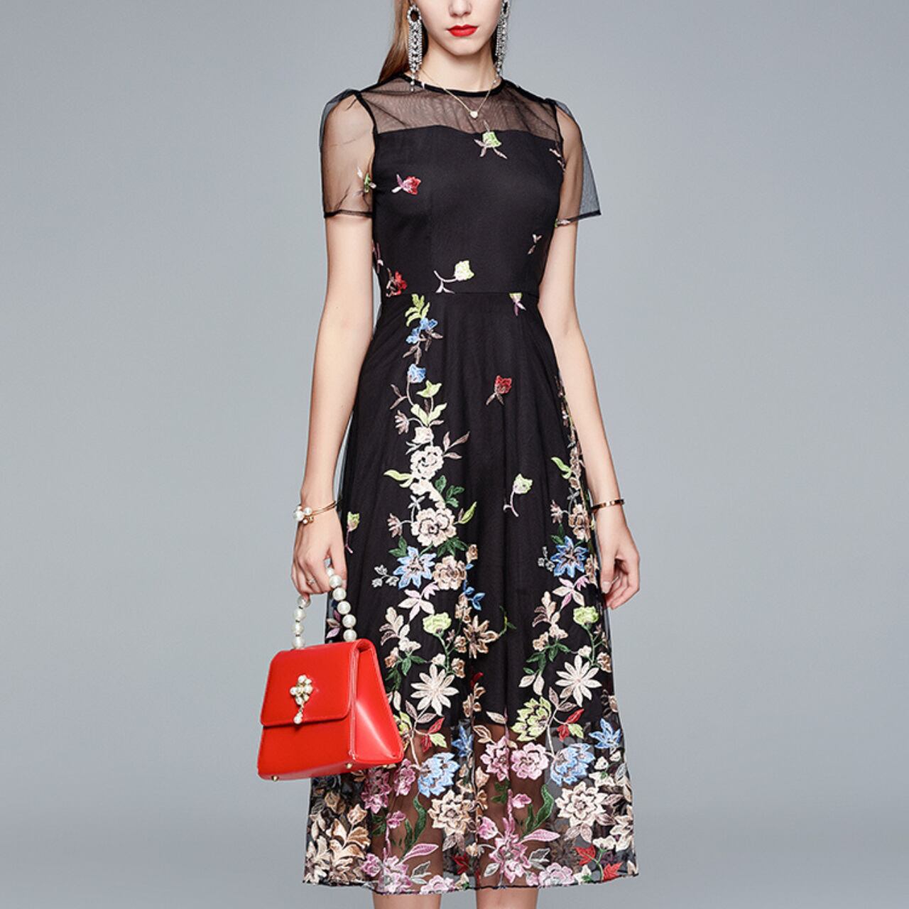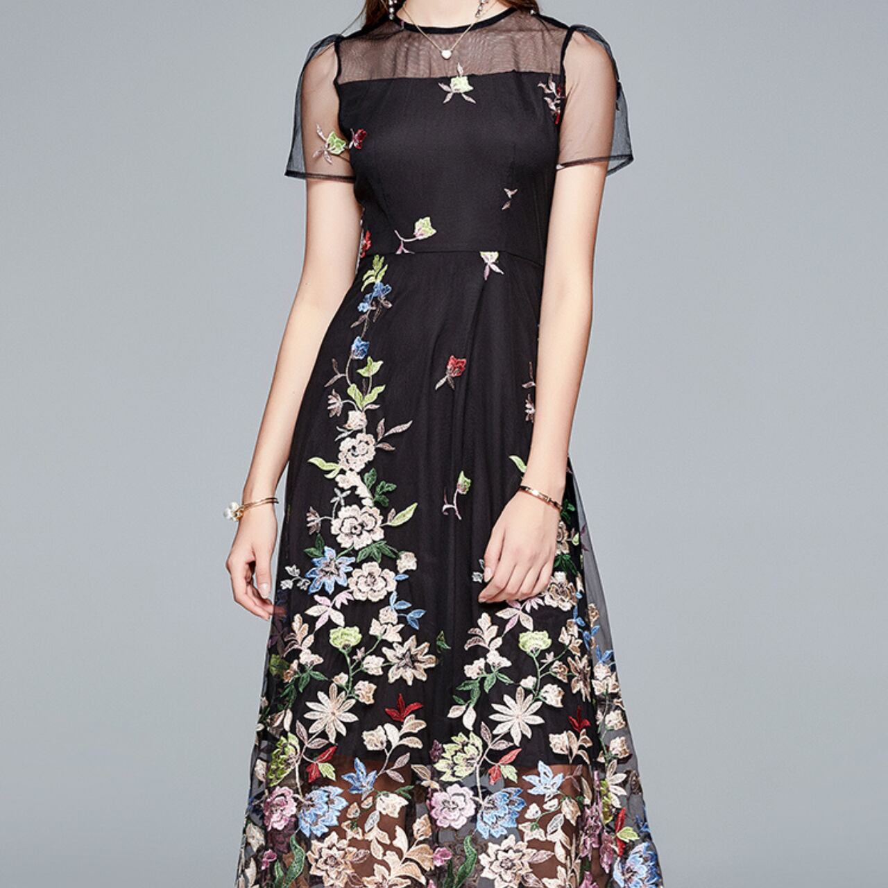 フラワーエンブロイダリー シースルードレス A4298