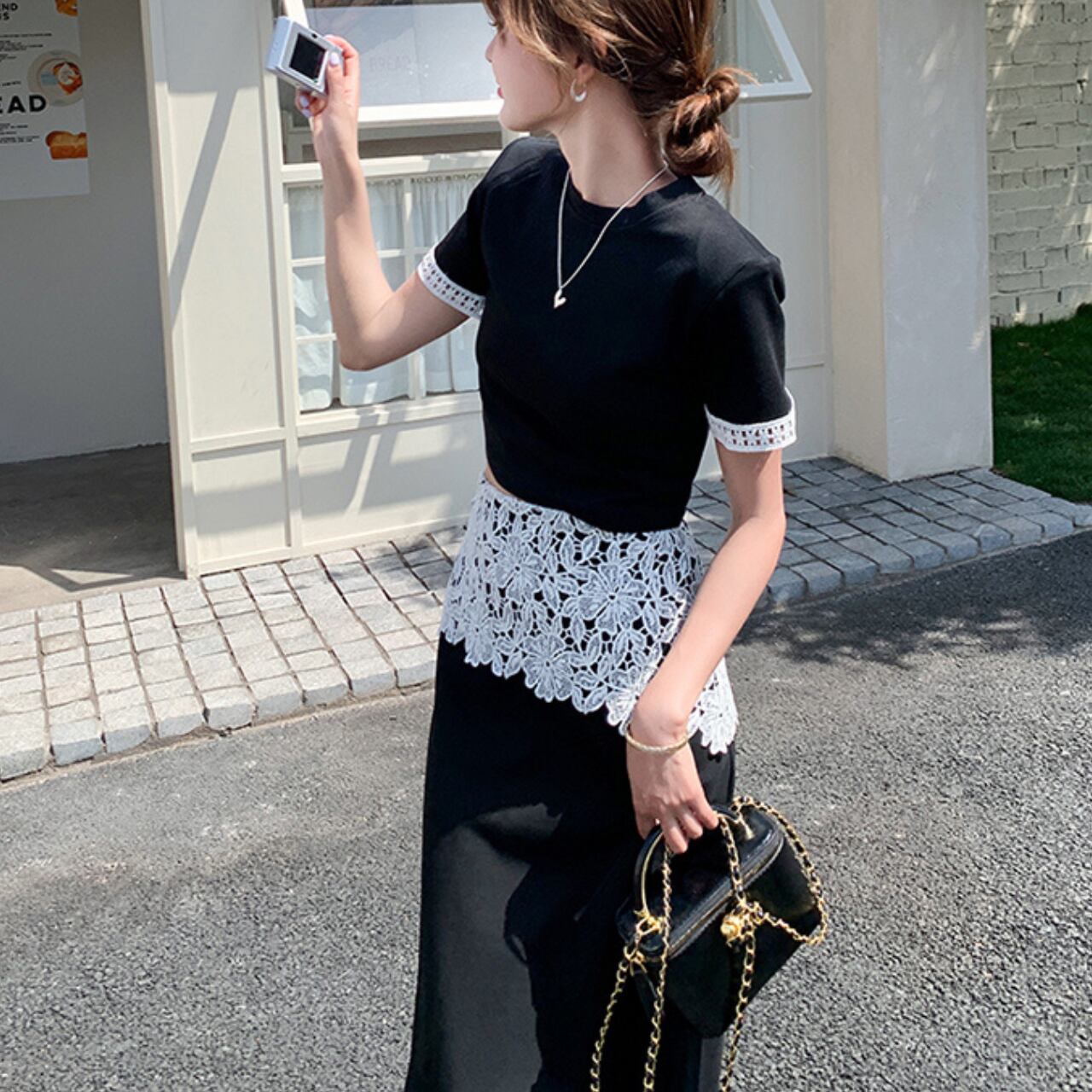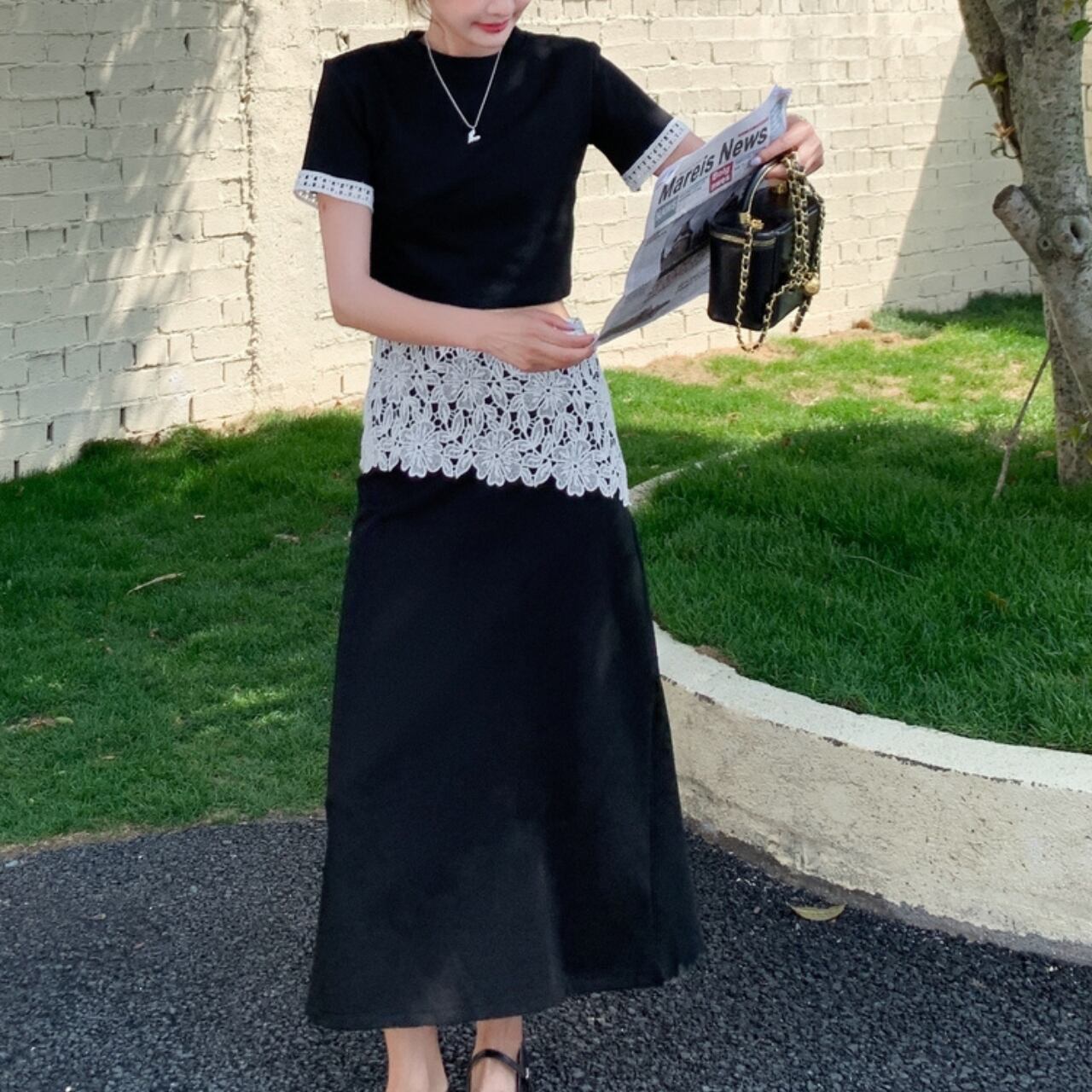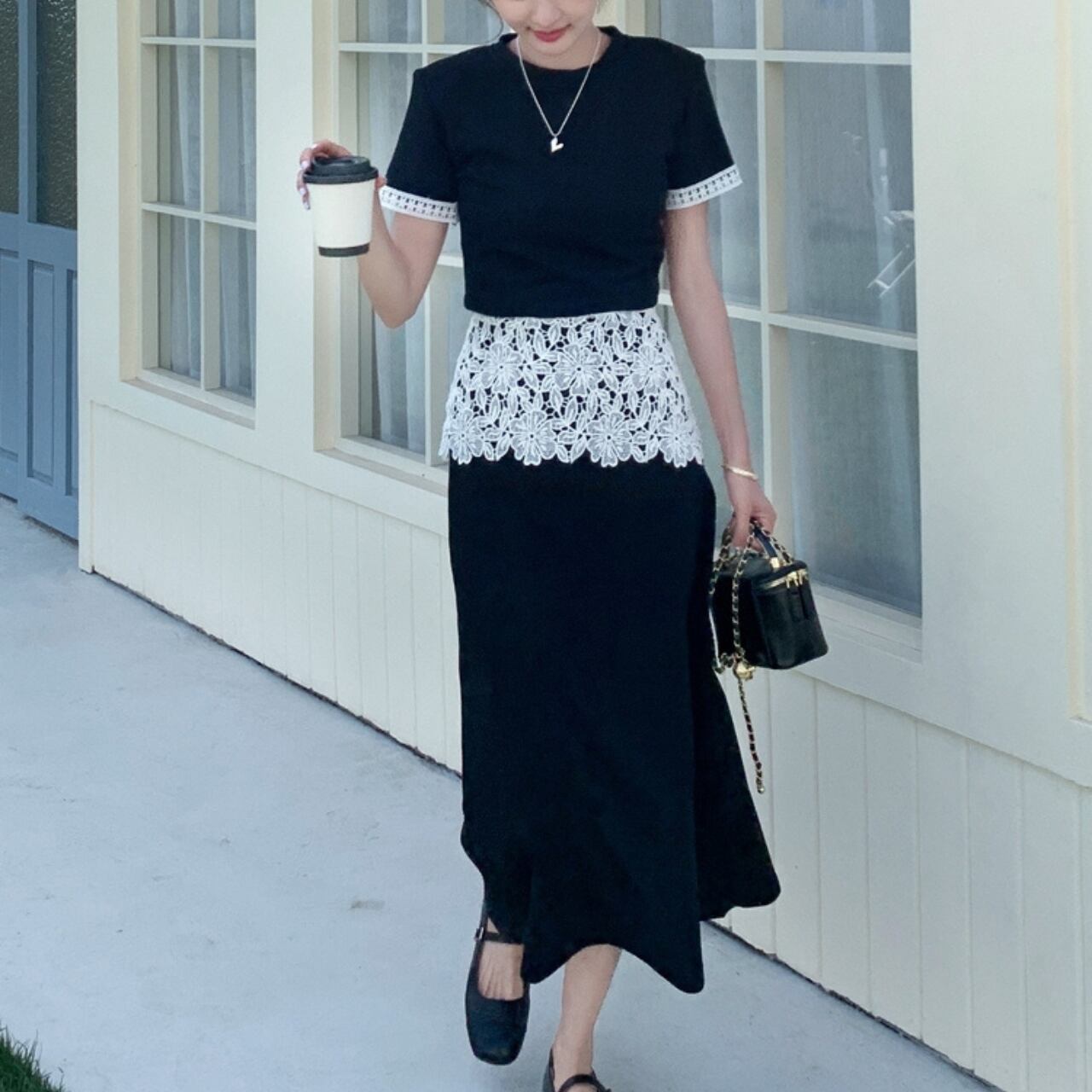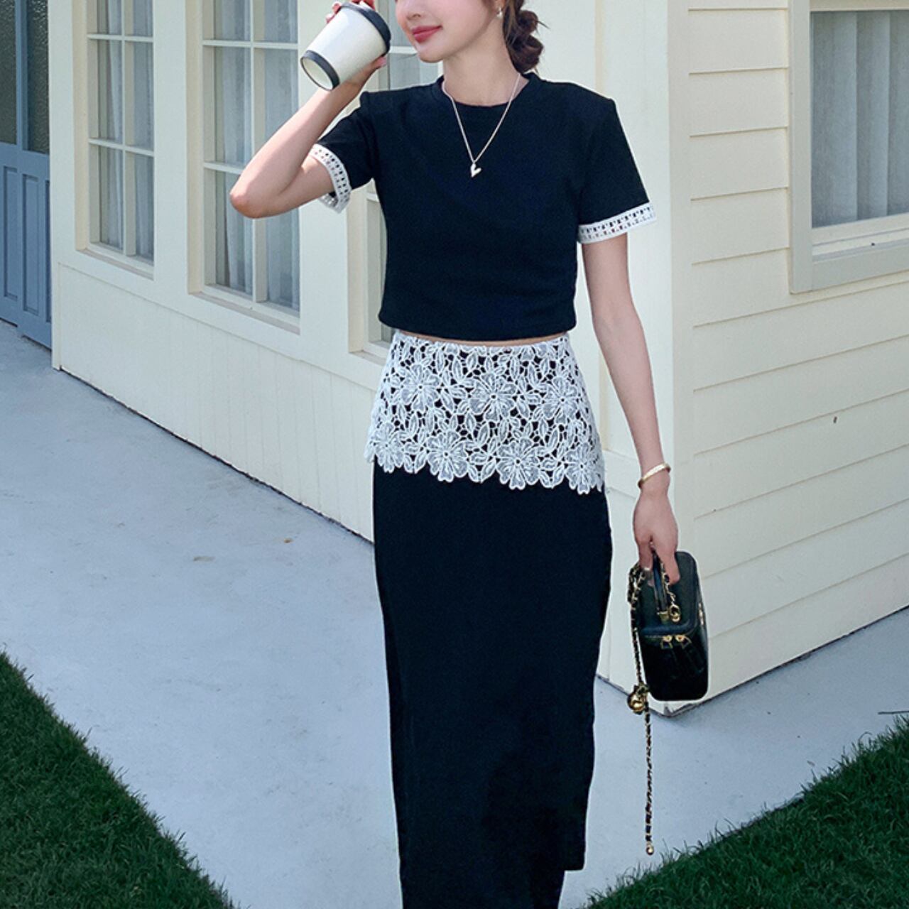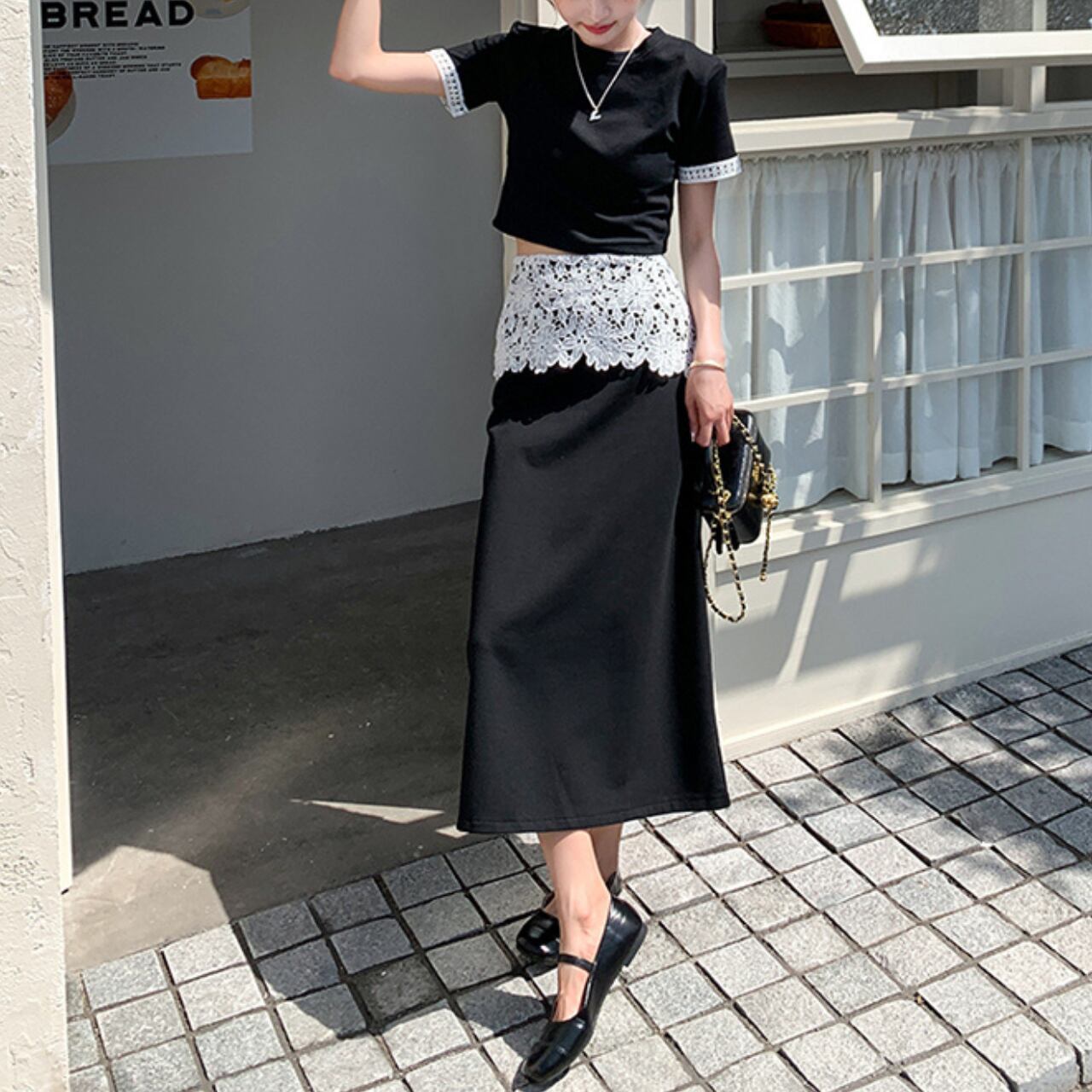 アシンメトリー ウエストレーススカート&トップス セットアップ A4303