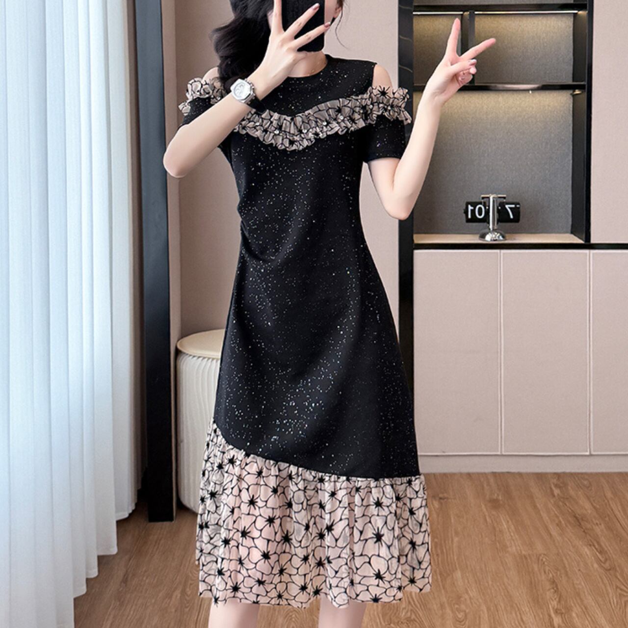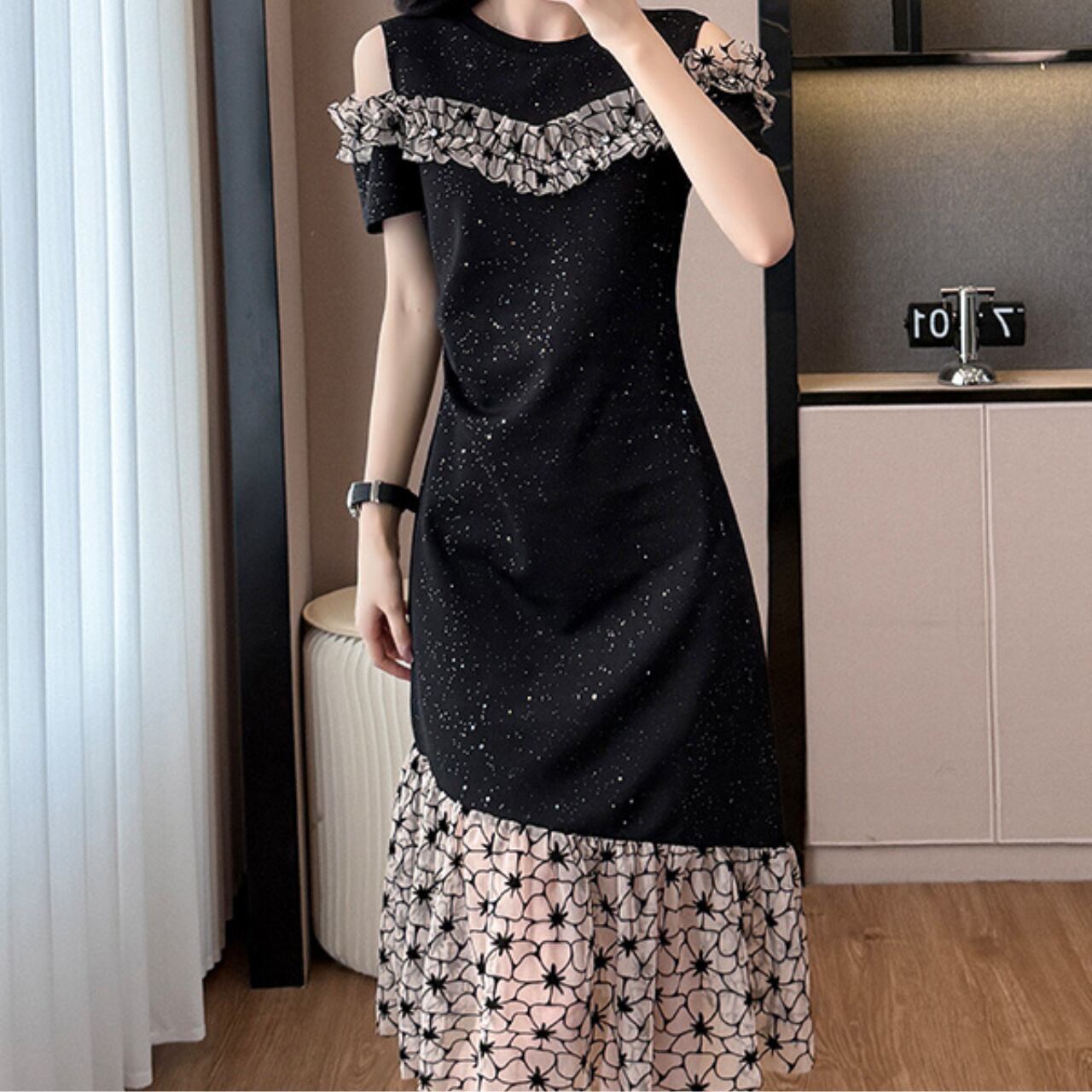 オフショルダー フラワーワンピース A4305