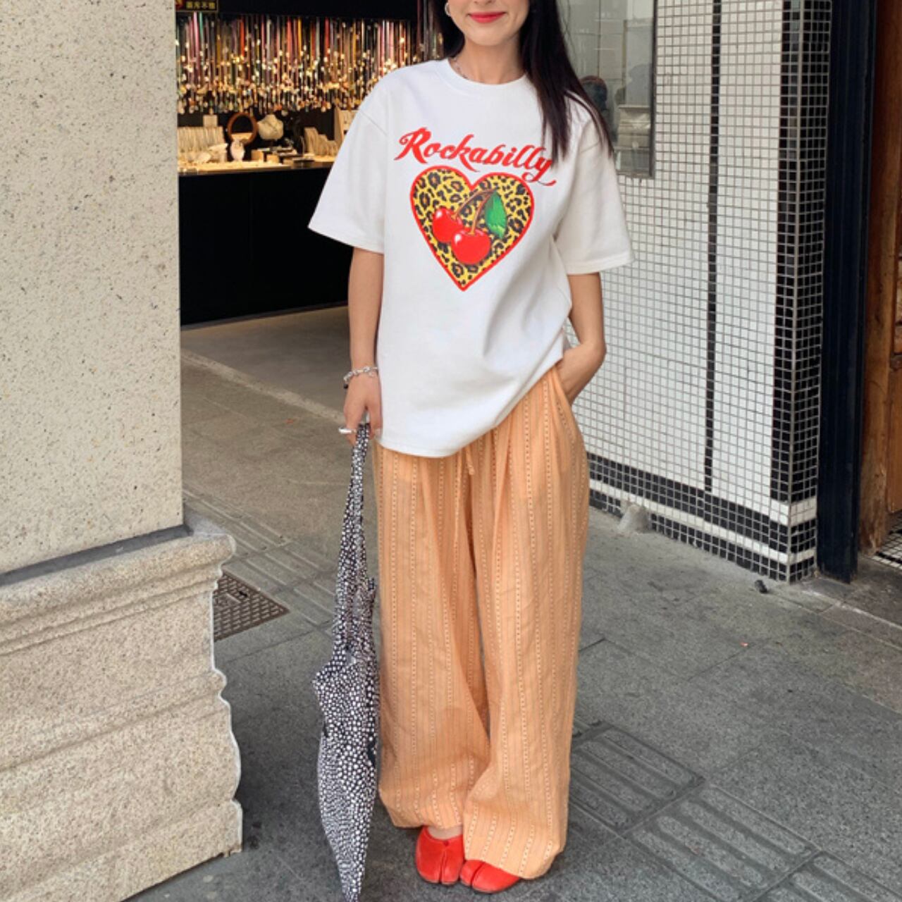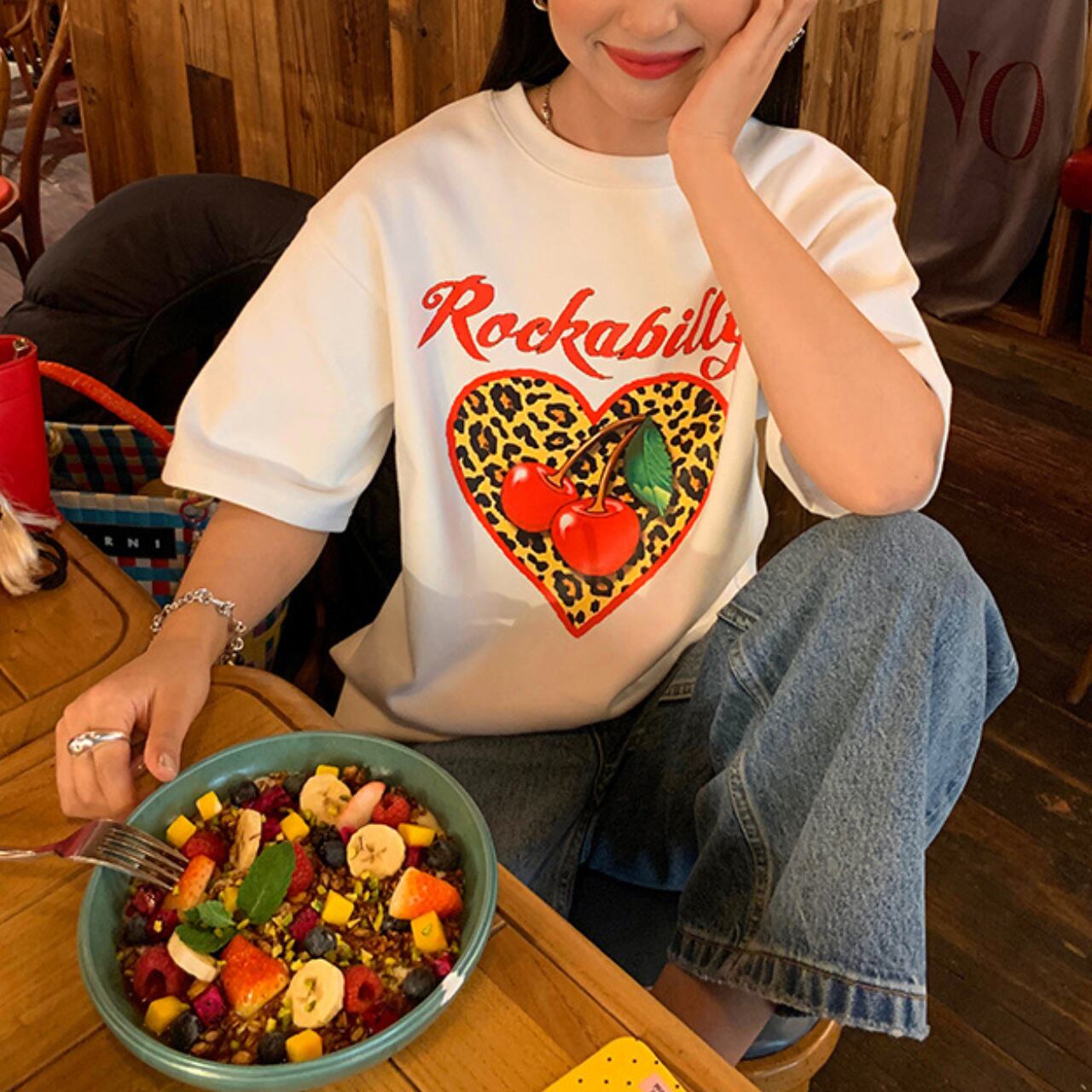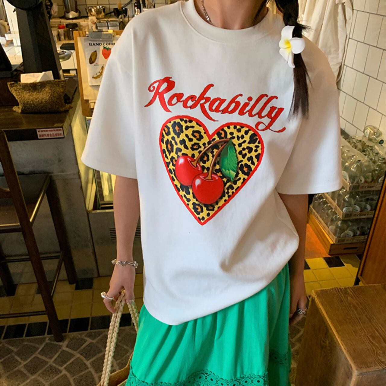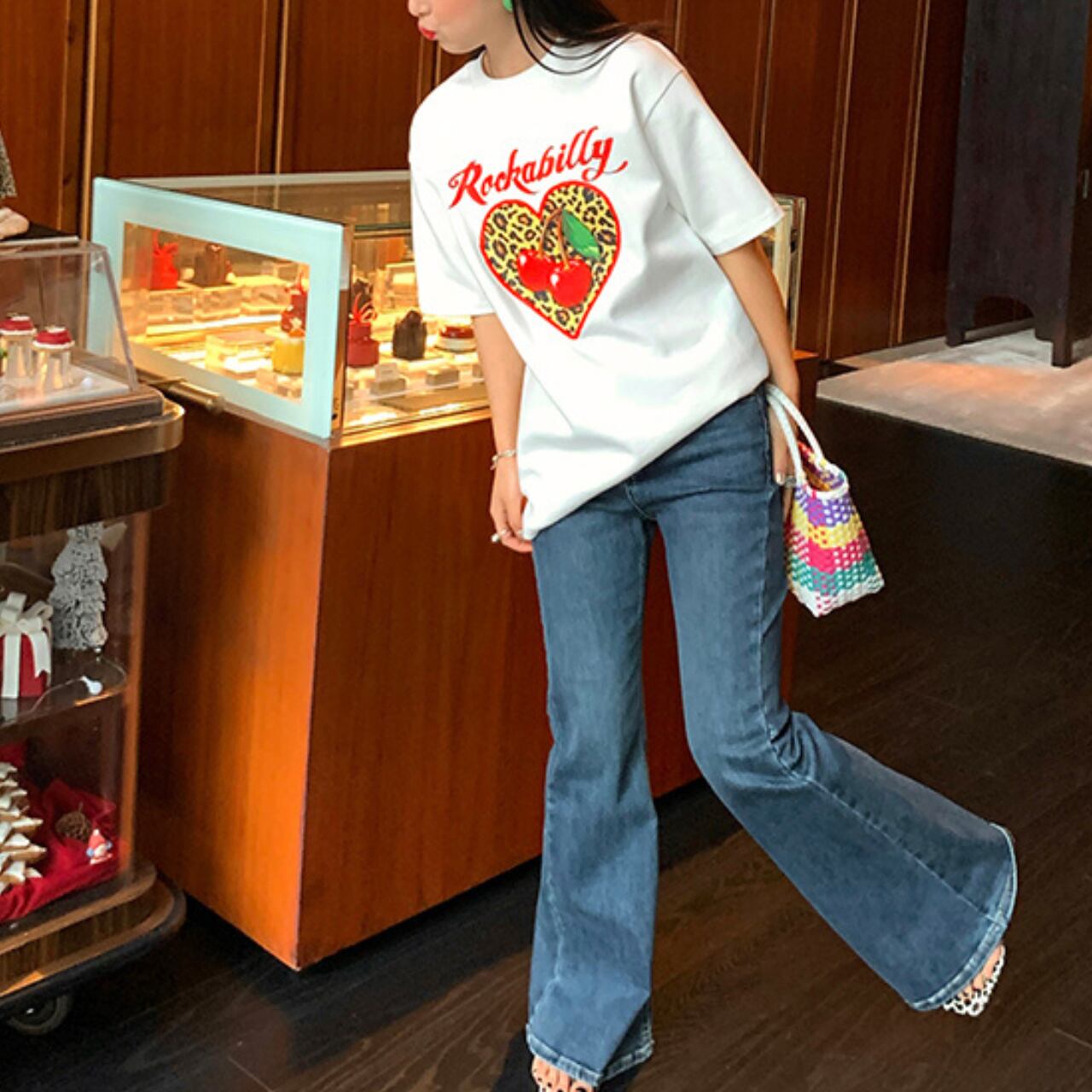 レオパード ハートプリントロゴTシャツ A4316