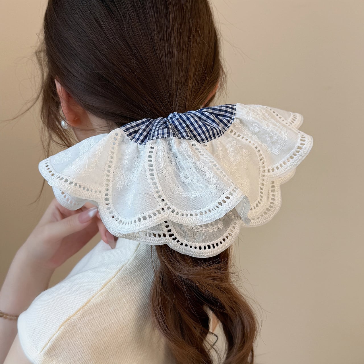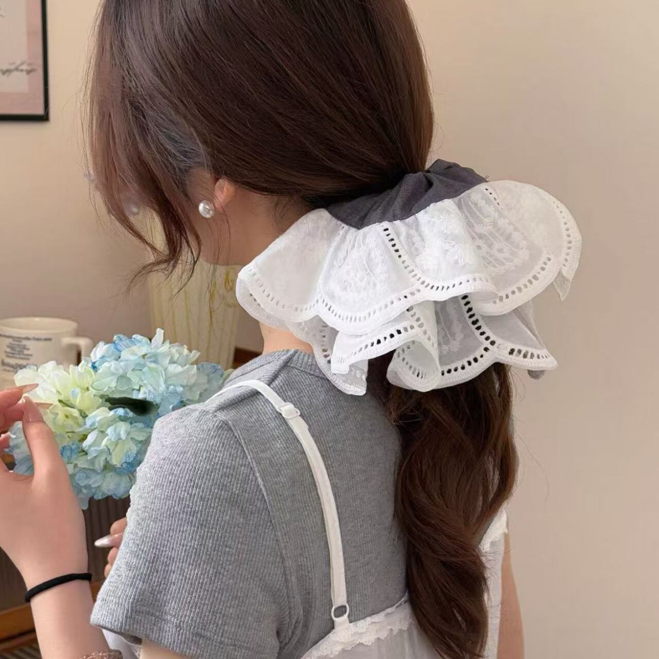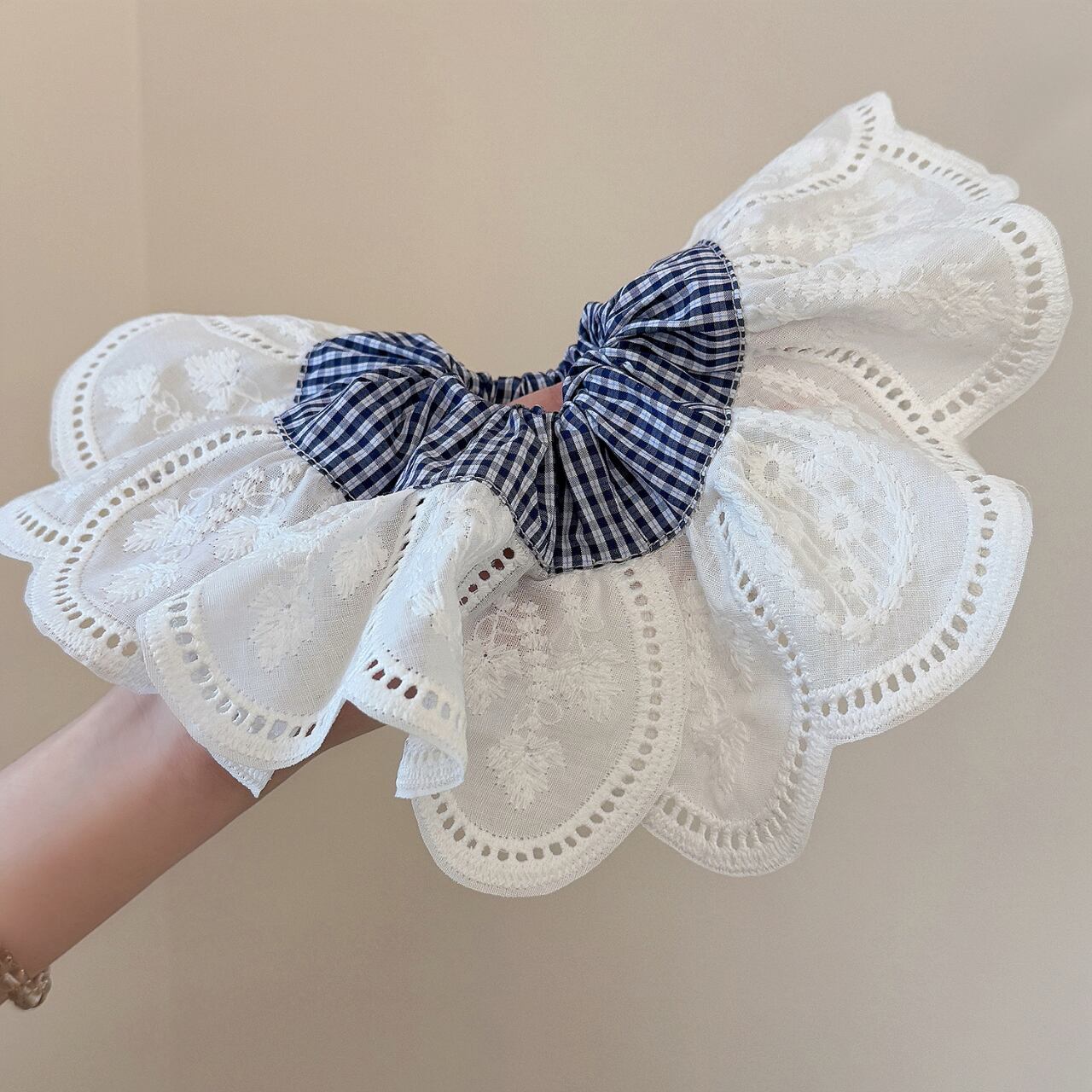 こちらのヘッドフラワーコントラストシュシュは、髪型に華やかさをプラスするアイテムです。内側は柔らかな生地、外側は花びらのようなレース刺繍が施されており、シンプルなスタイルにも華やかなアクセントを加えます。2色のカラーバリエーションで、さまざまなコーディネートに合わせやすいデザインとなっています!
