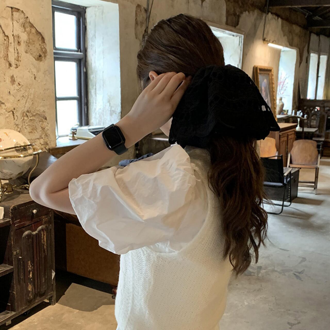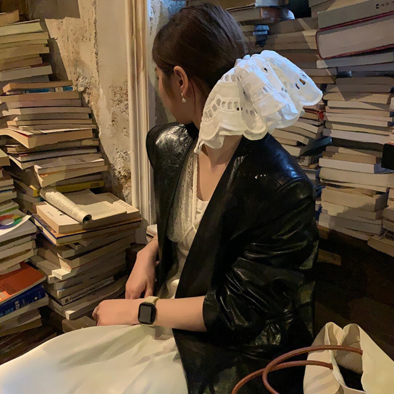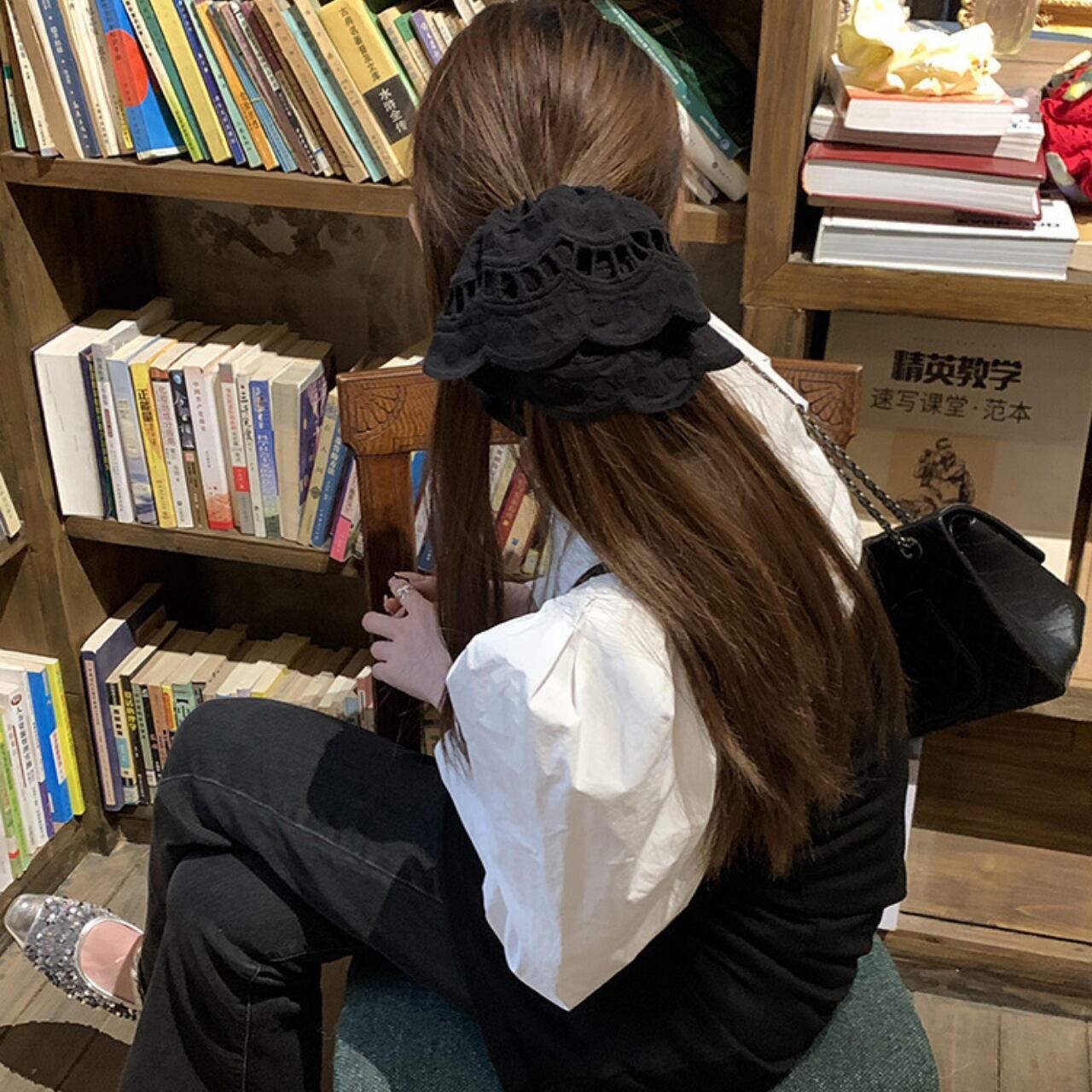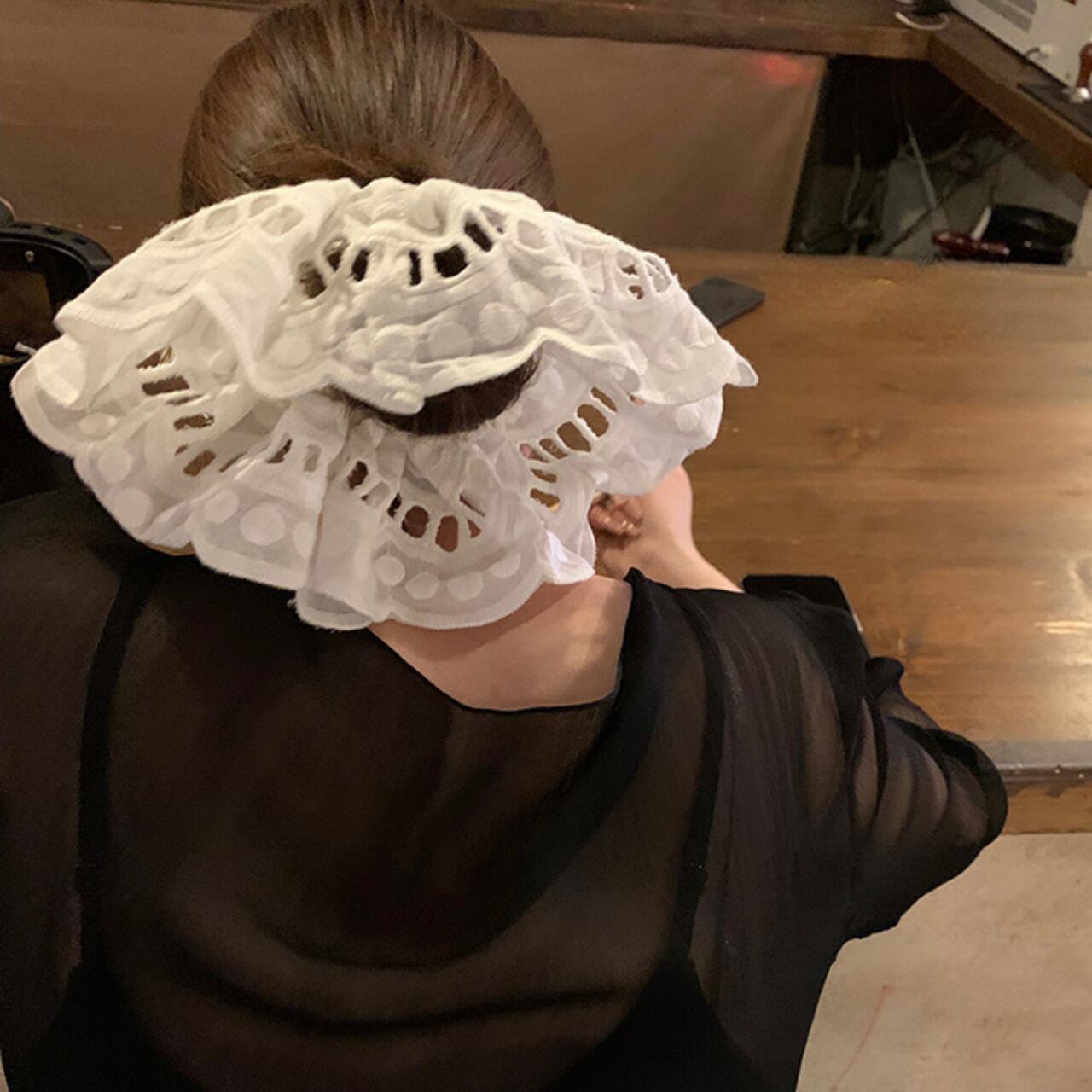 こちらは大胆なコットンレースが付いた、髪型に華やかさをプラスするアイテムです。ボリューム感たっぷりで、カジュアルなコーデからエレガントなスタイルまで、どんなコーディネートにも合わせやすいデザインとなっています!