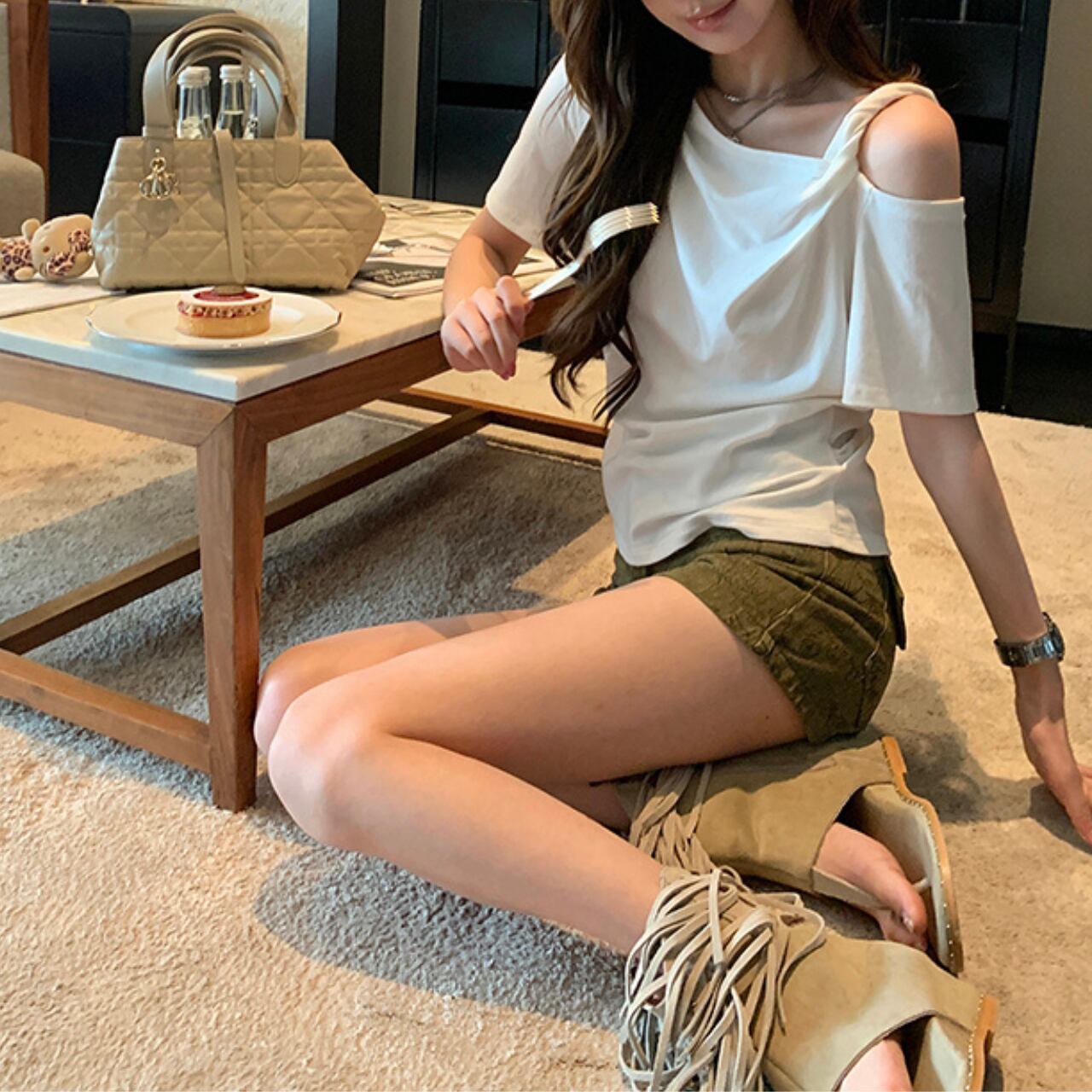 ツイストショルダー スリムフィットTシャツ A4331