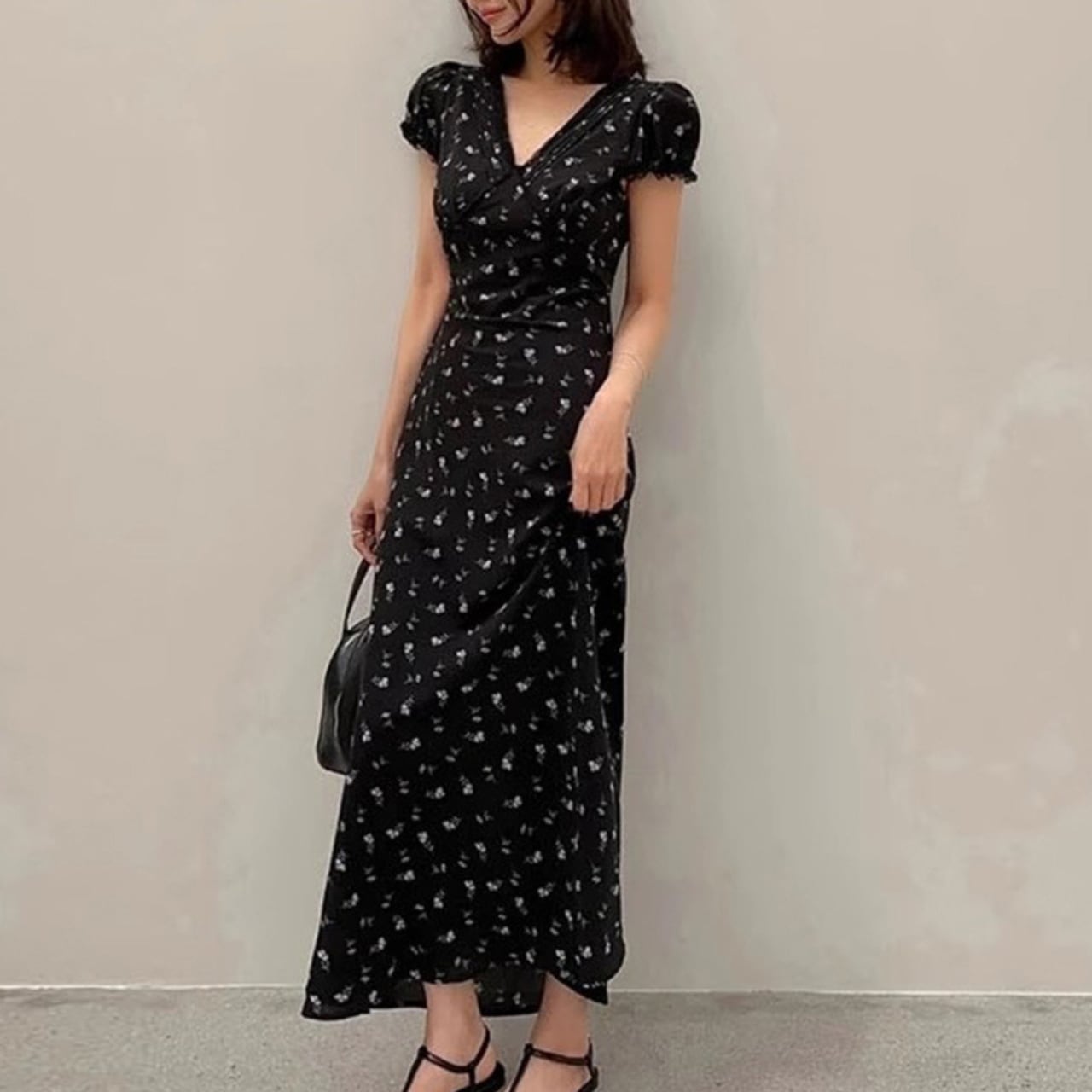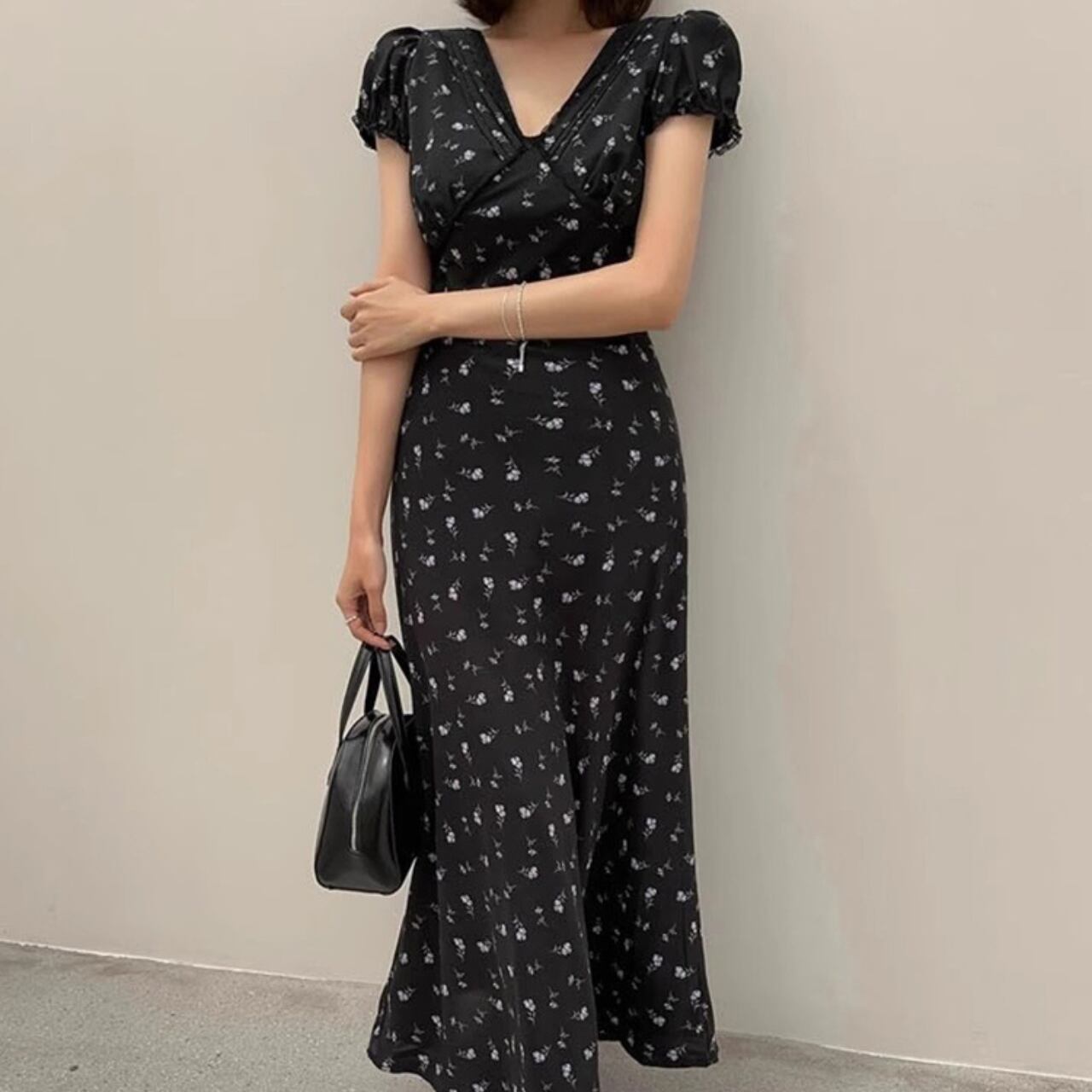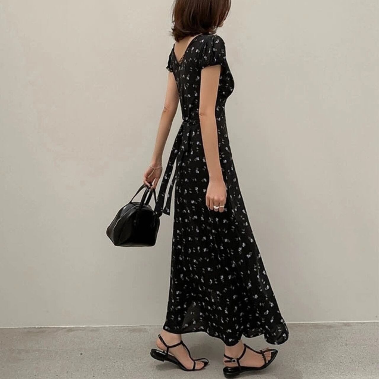 Vネックフラワーワンピース A4348