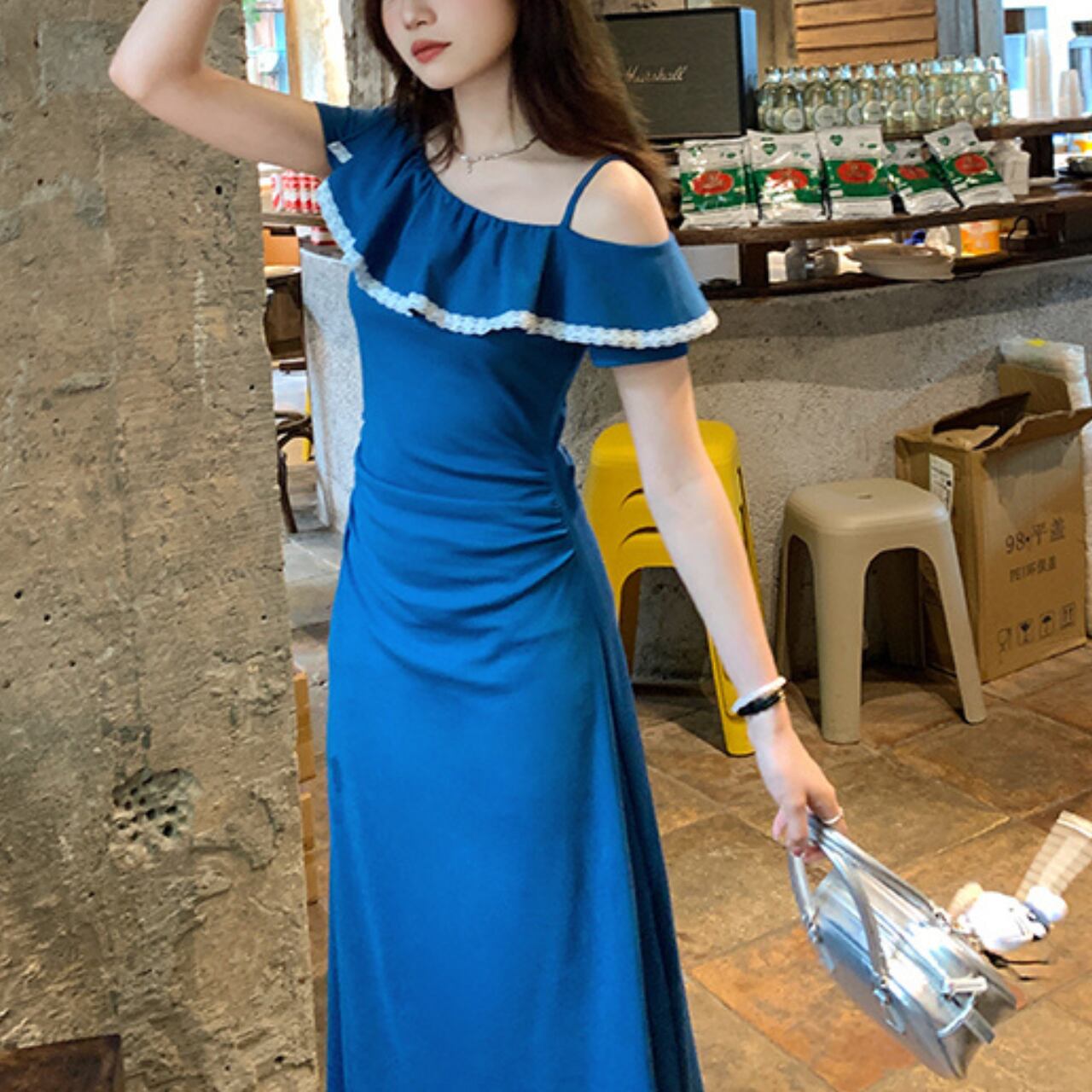 フリルオフショルダーワンピース A4349