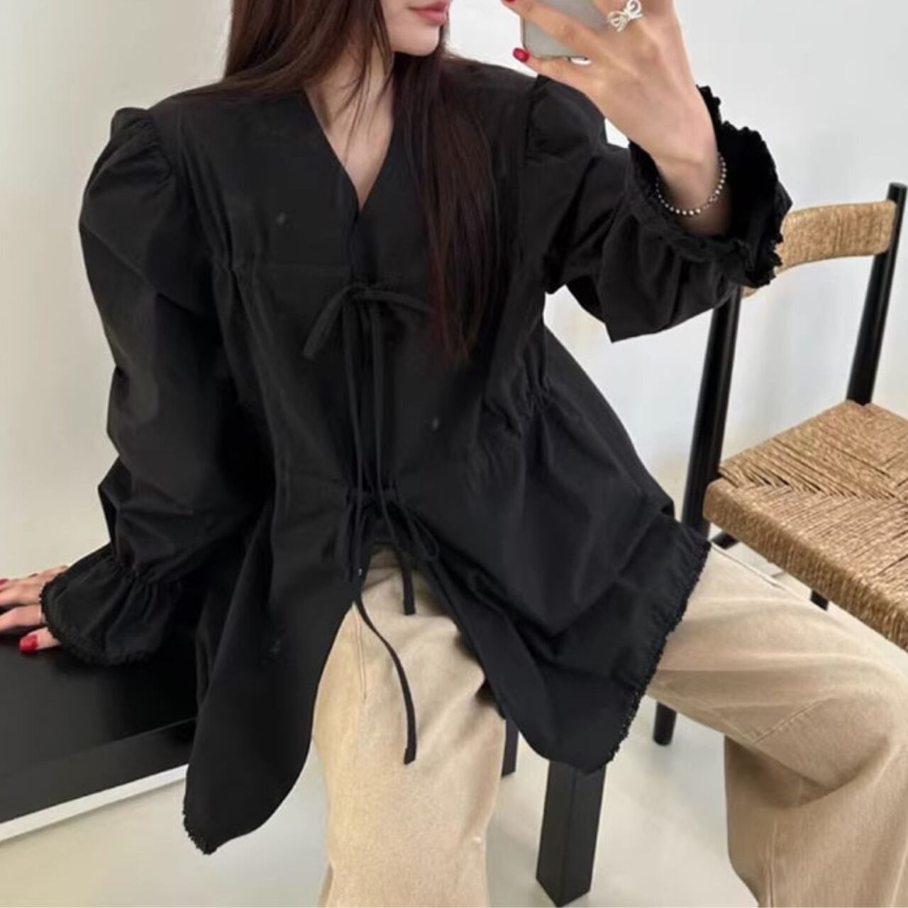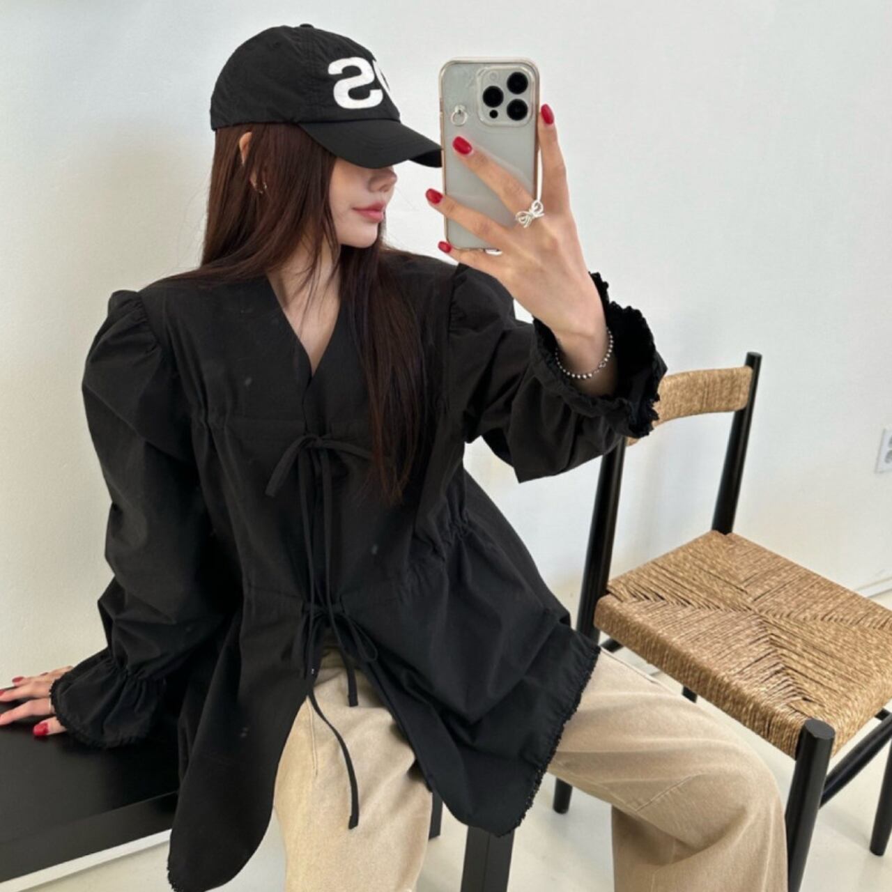 コットン生地がさらっと心地よい、ゆったりオーバーサイズシャツです。たっぷりとした身幅とボリューム袖がふわっと空気を含み、リラックス感たっぷりの抜け感スタイルをすんなり叶えてくれます。フロントのリボンタイデザインがきゅっと結べてウエストマークができ、メリハリのあるシルエットもぱぱっと簡単に作れます。さらさらとした質感の生地が肌にやさしく、ゆるっと一枚で着てもサマになり、デニムやショートパンツと合わせればこなれ感がぐんとアップします。袖口と裾のふわっとした生地感が揺れるたびにひらひらと軽やかで、カジュアルながらもきちんと感のある印象を与えてくれる優秀アイテムです。シンプルなデザインだからこそ着回し力は抜群で、さっと羽織るだけで今っぽいおしゃれスタイルが完成する一枚です。
