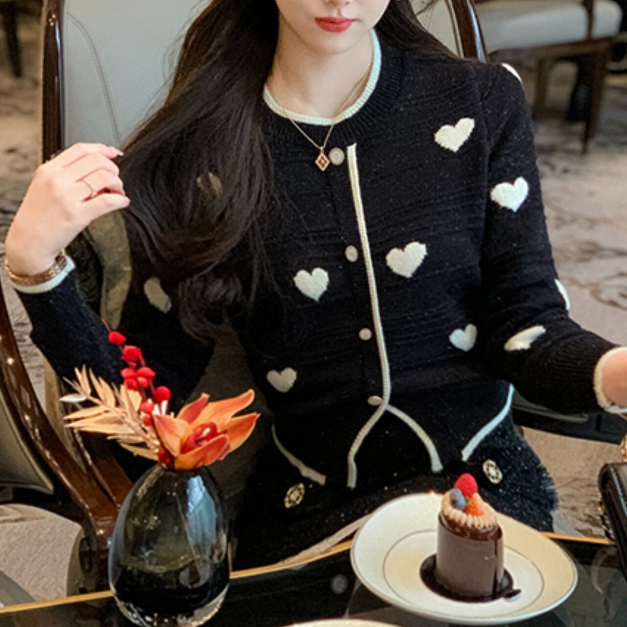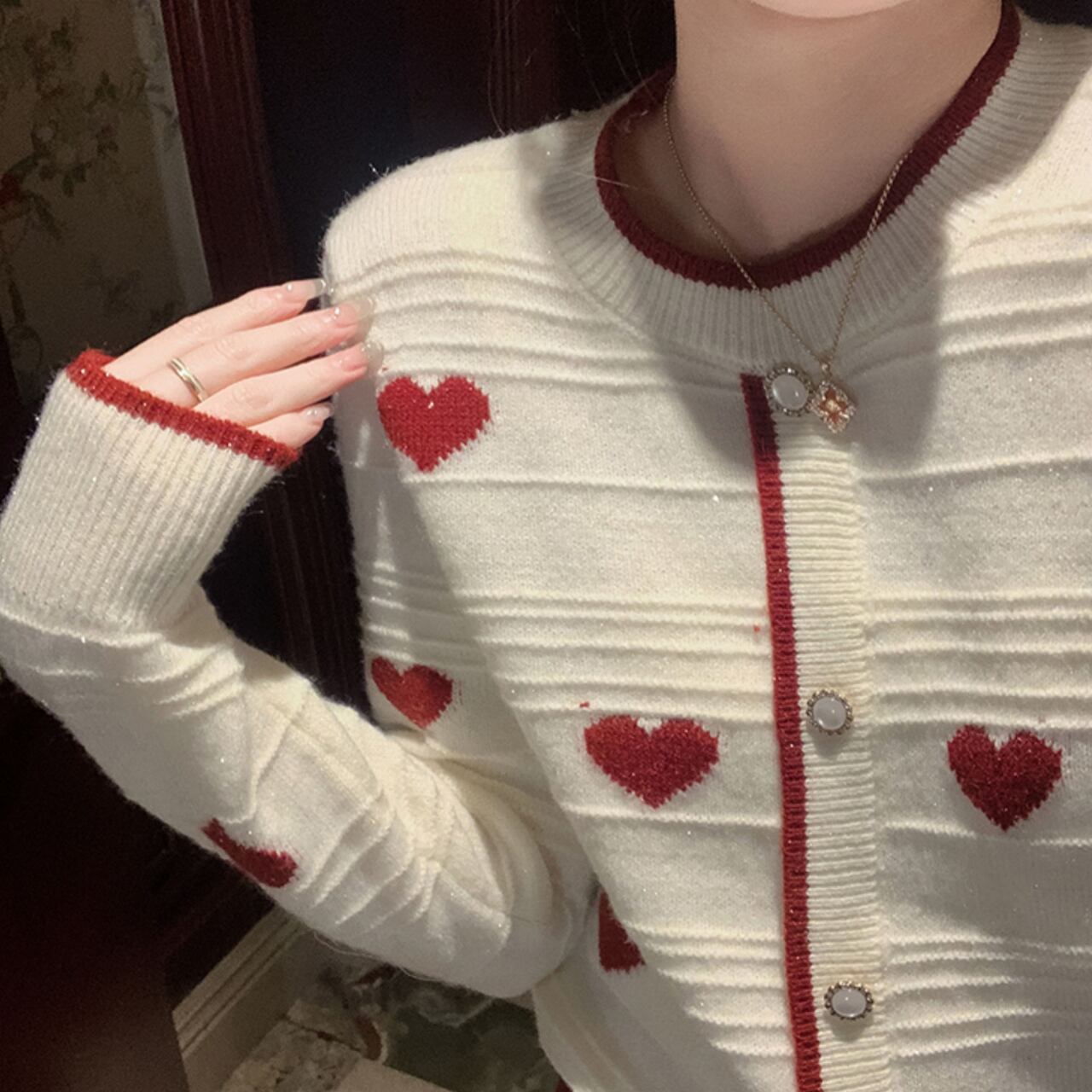 クラシックハートニットカーディガン/2colors A4380
