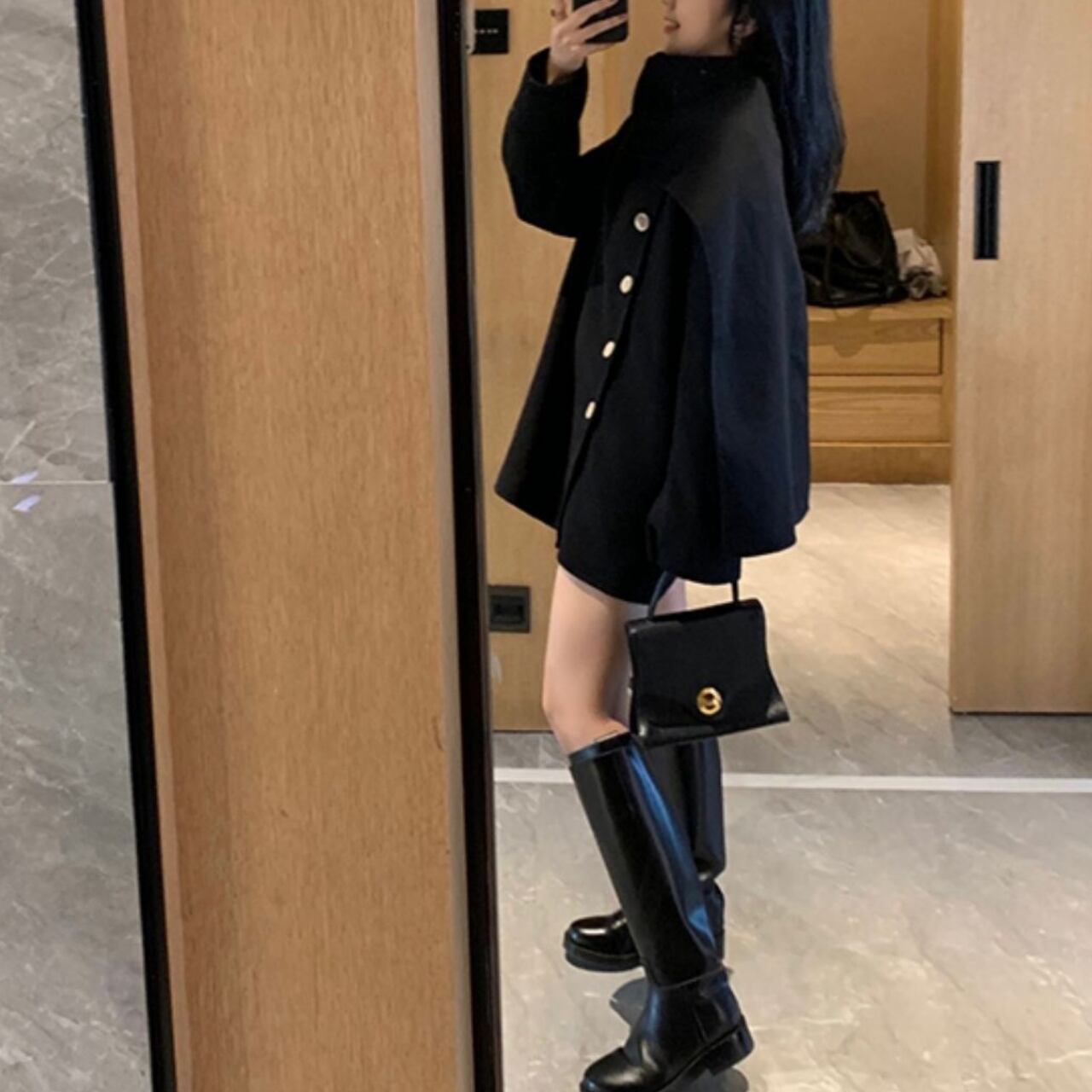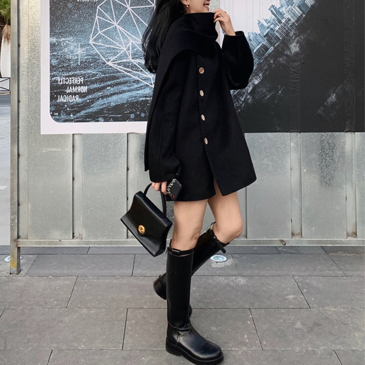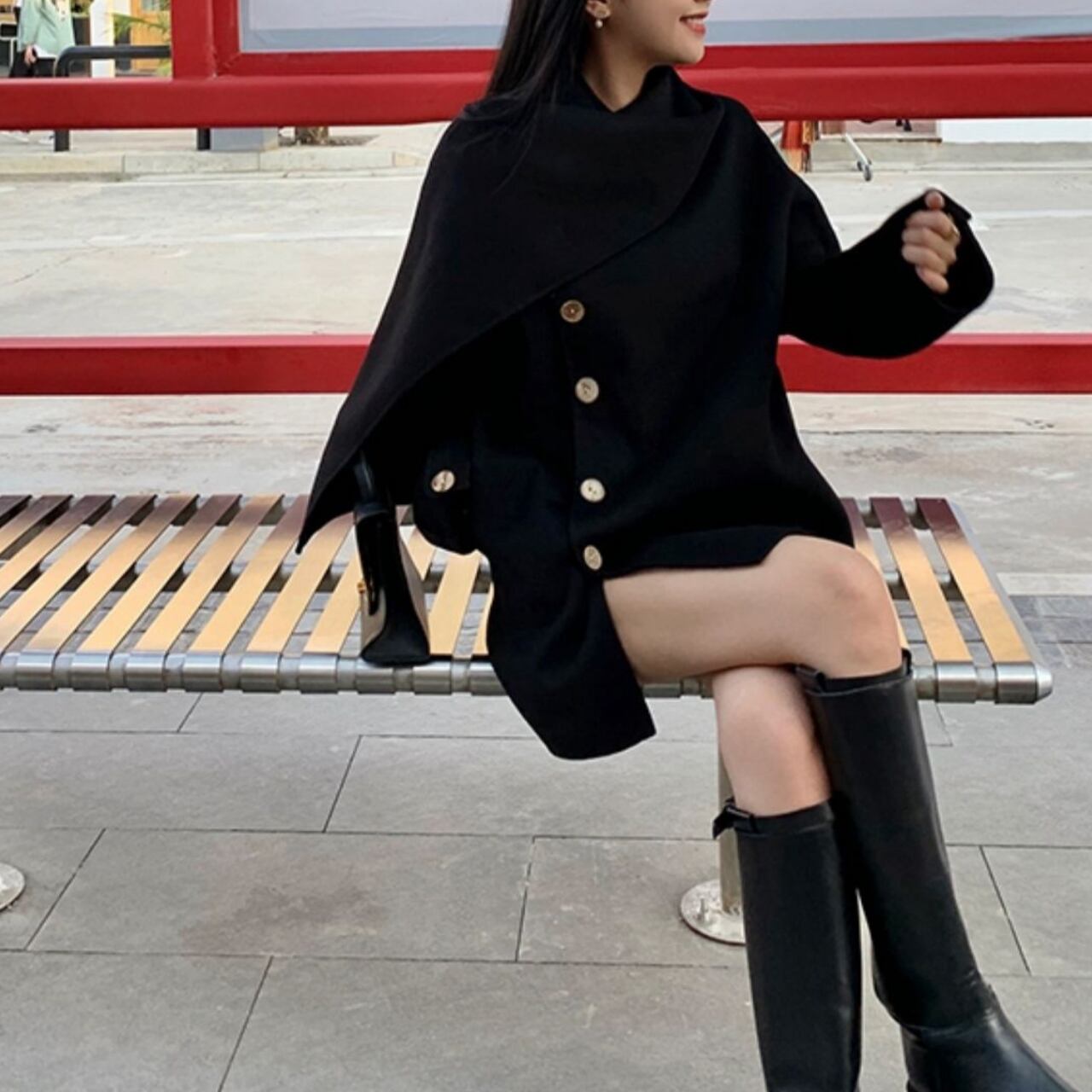 クラシカルなデザインと現代的なシルエットが融合した洗練されたアウターです。ゆったりとしたオーバーサイズシルエットで今っぽいこなれ感があり、肩まわりにゆとりがあるため窮屈感なく快適に着用できます。ストールが着いたようなデザインで、首周りもあったかく快適です。ボリューム袖が女性らしい柔らかな印象を与えてくれます。