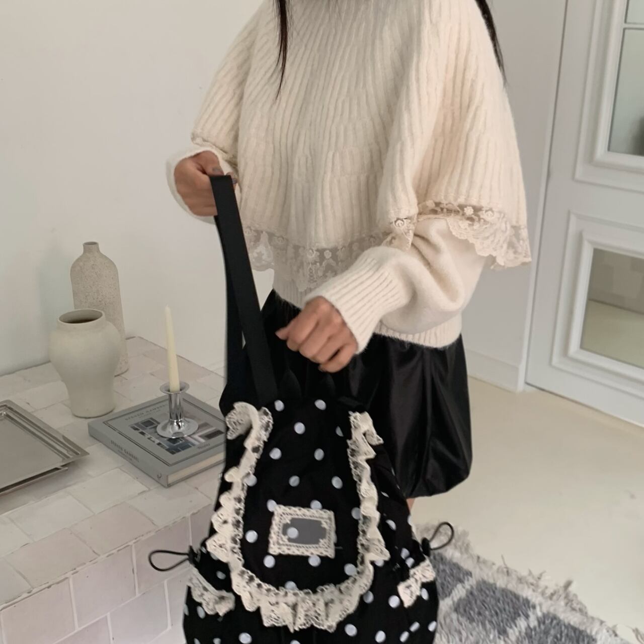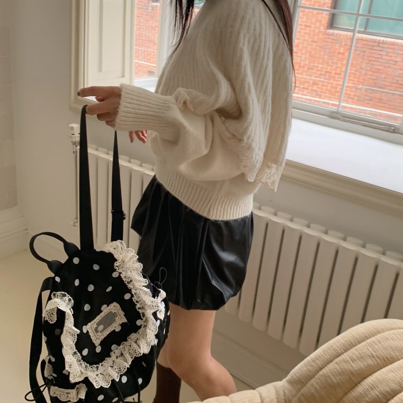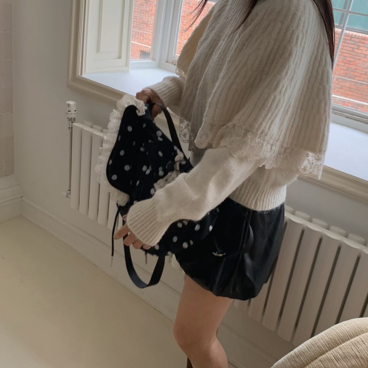 ふわふわニットに、繊細なレースがひらひらと揺れる2WAYケープがセットになった、エレガントで遊び心たっぷりのアイテムです。ケープとして肩にさらっと羽織れば、レーストリムがゆらゆらと優雅に揺れて上品な印象をぱっと演出してくれます。さらに驚きなのが、このケープはスカートとしてもすっぽり着用できる2WAY仕様になっているところです。気分やシーンに合わせてくるくるスタイルチェンジできる楽しさがぎゅっと詰まっているアイテムです。