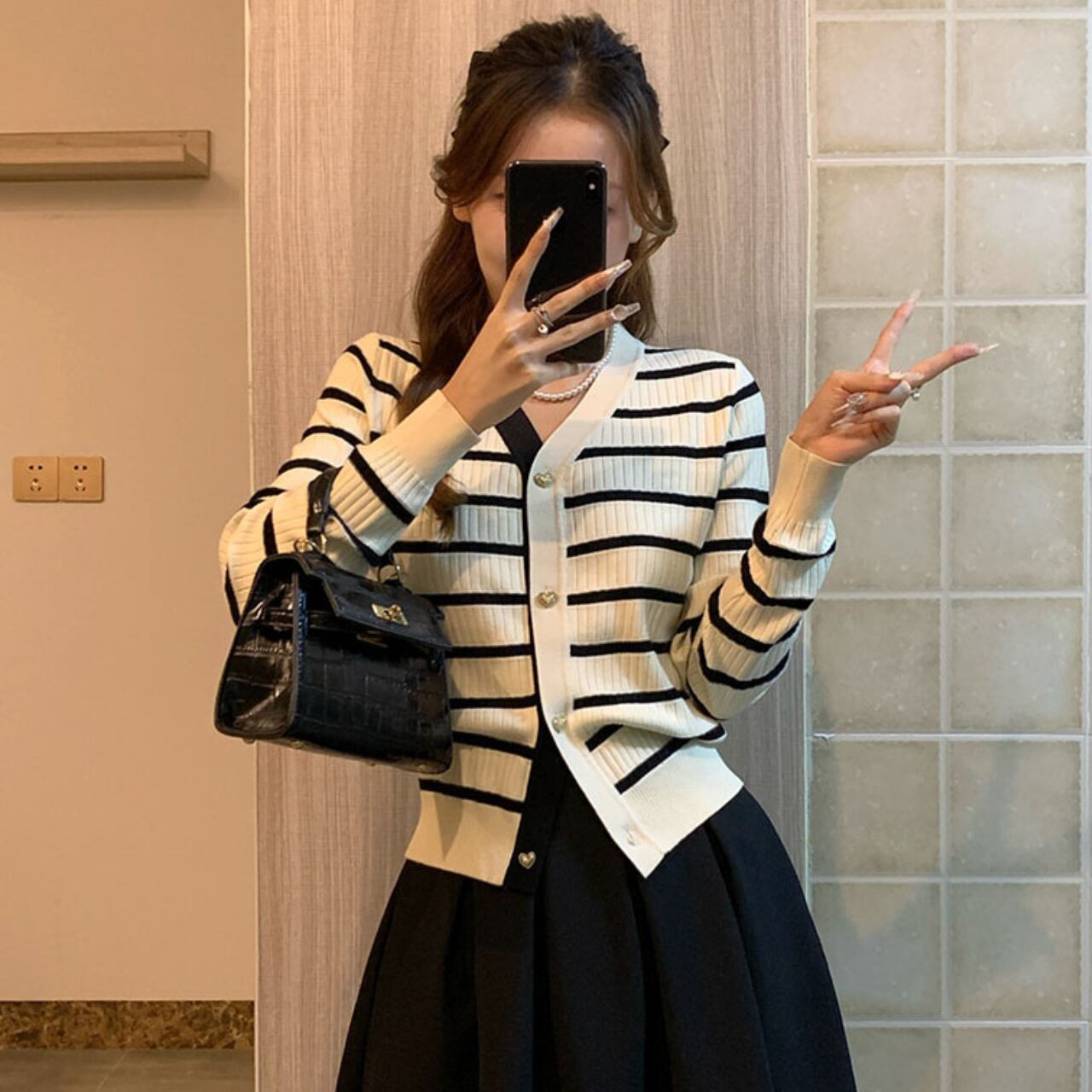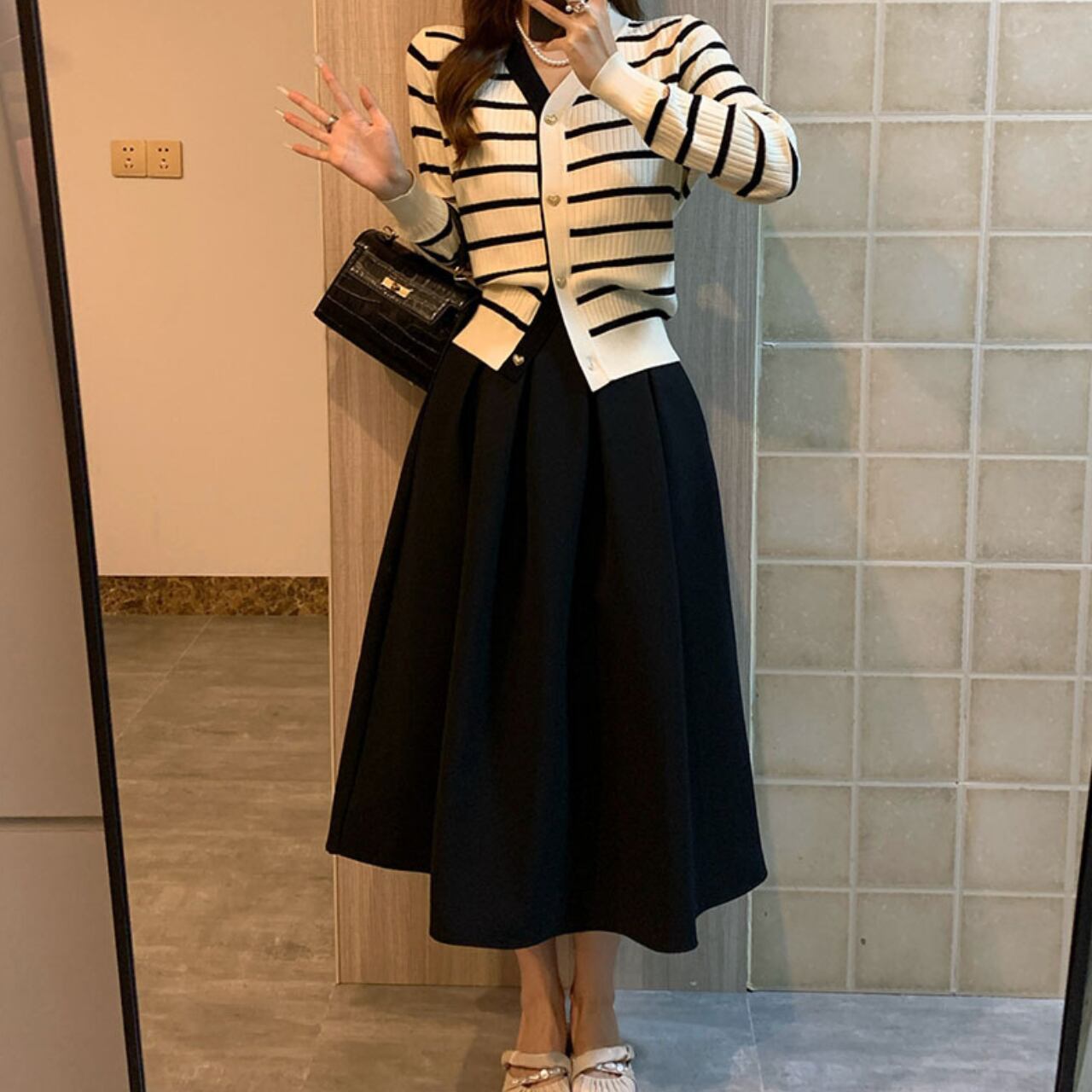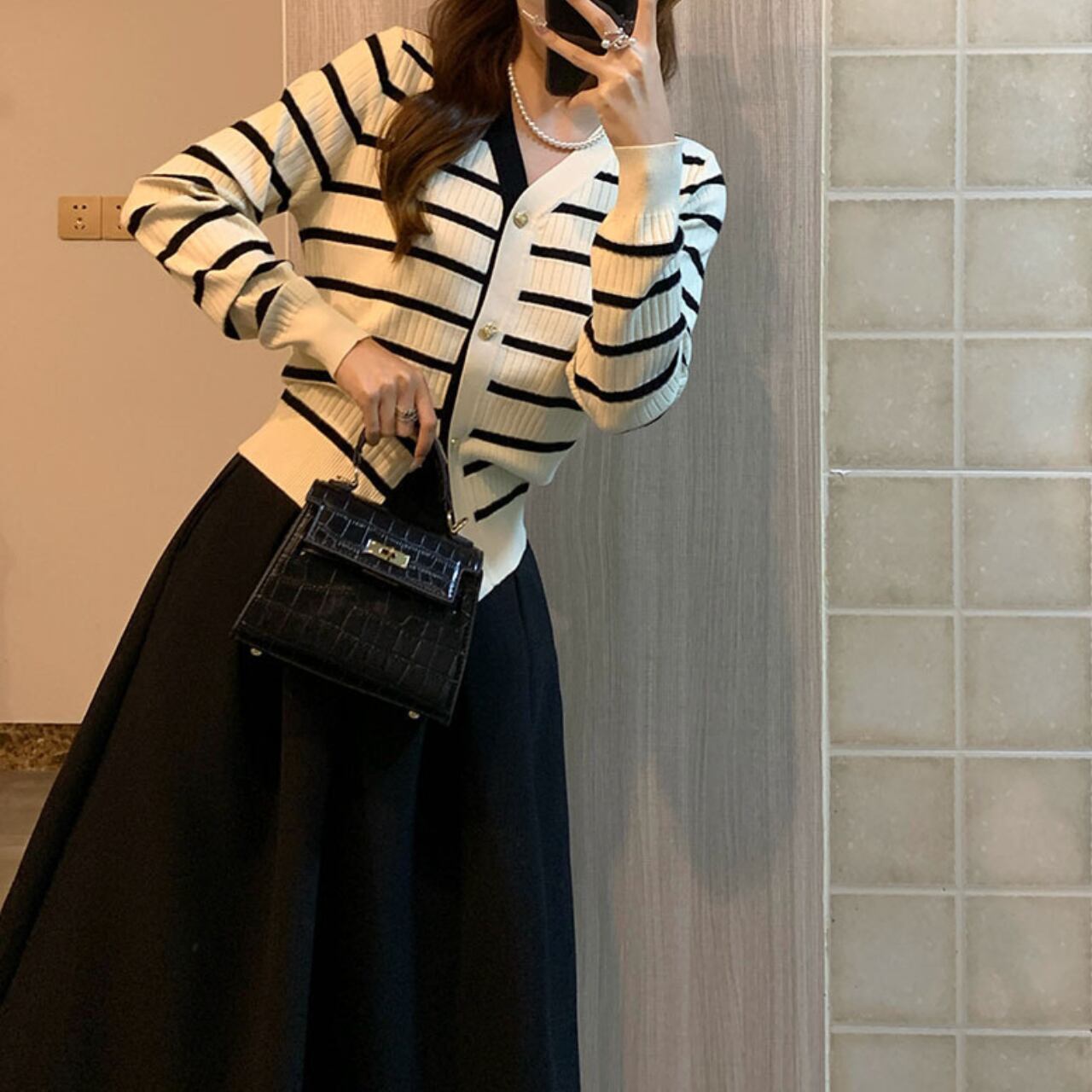 ストライプニットカーディガン A4397