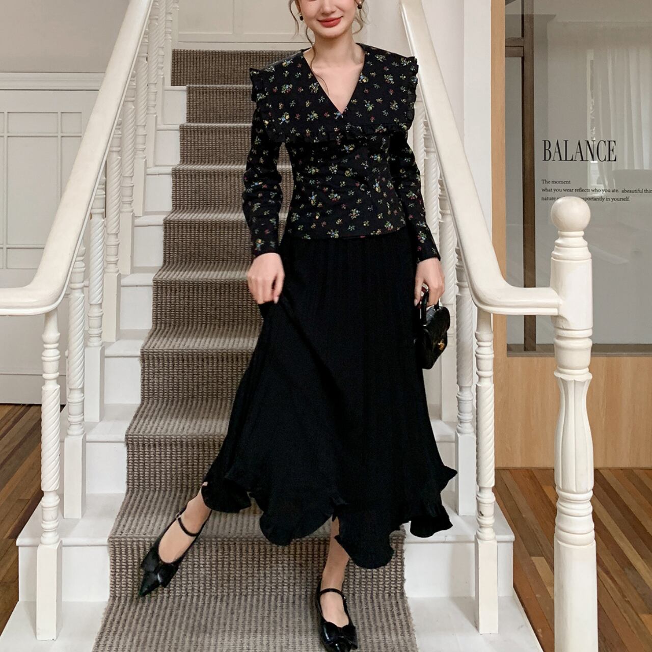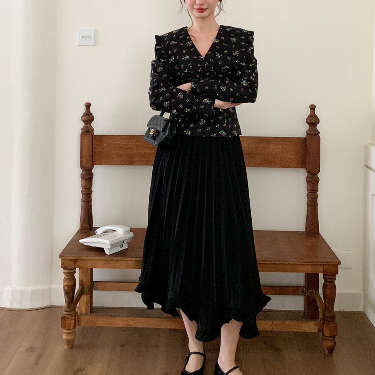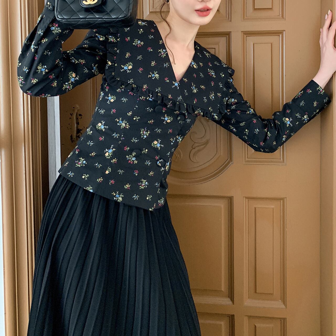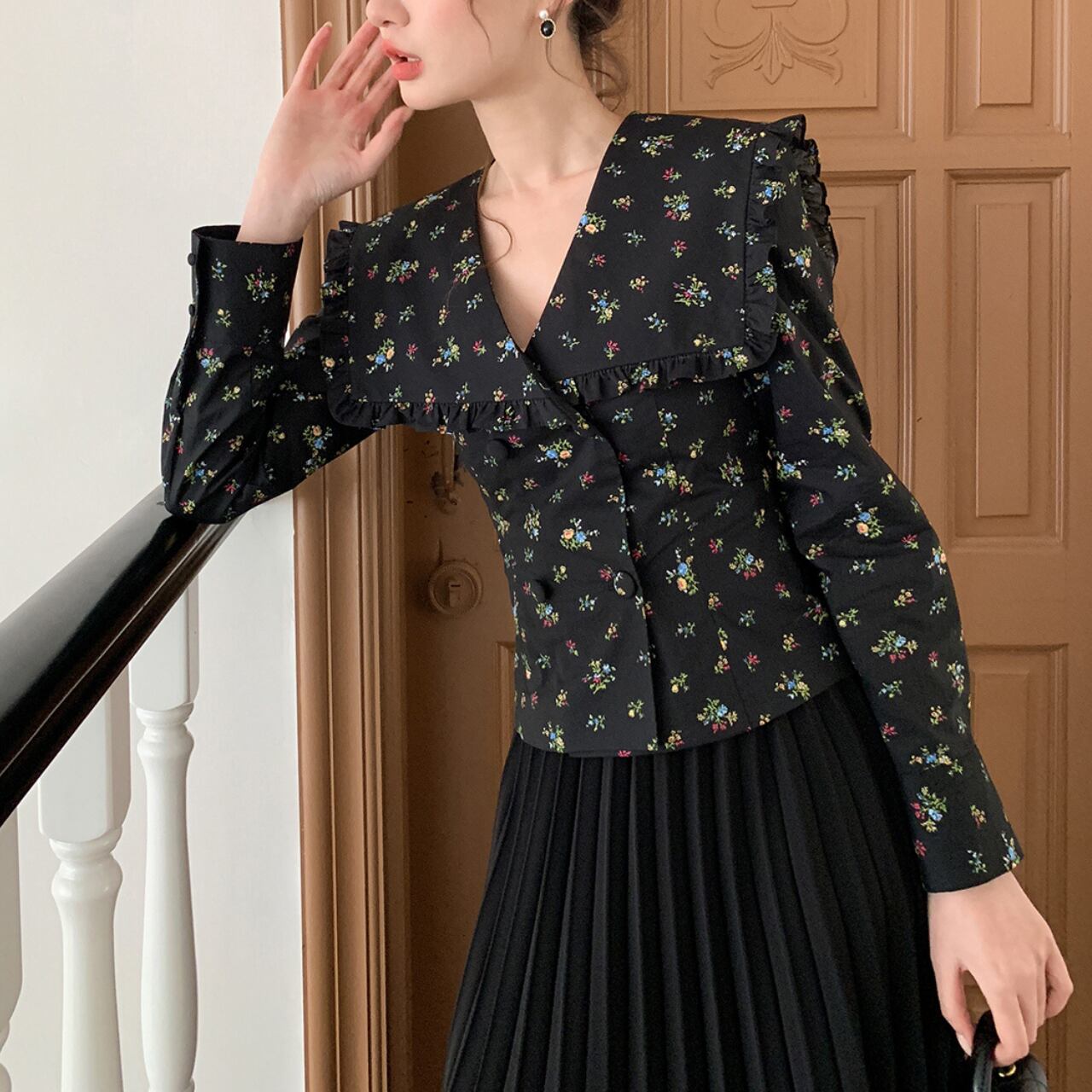 フリルカラー フラワーブラウス A4399