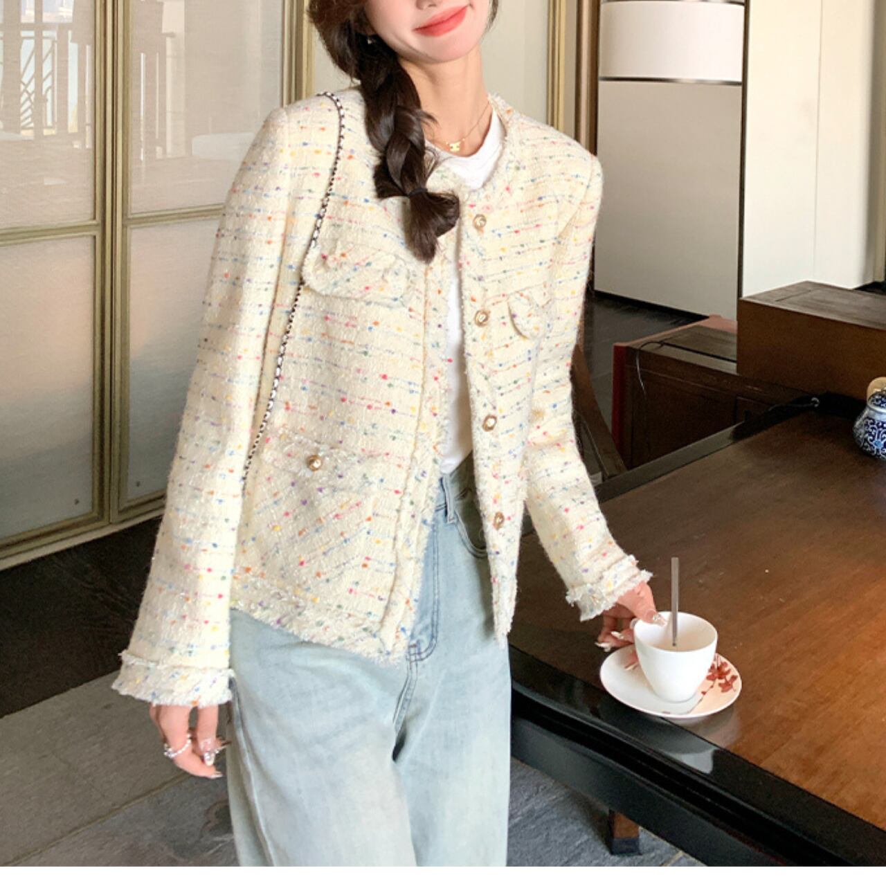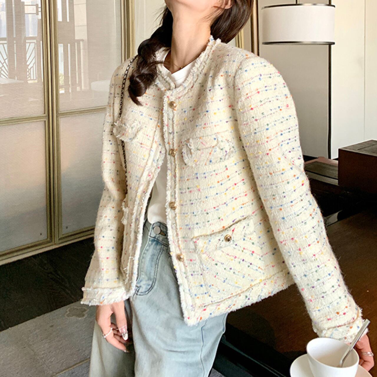 カラフルドットツイードジャケット A4417