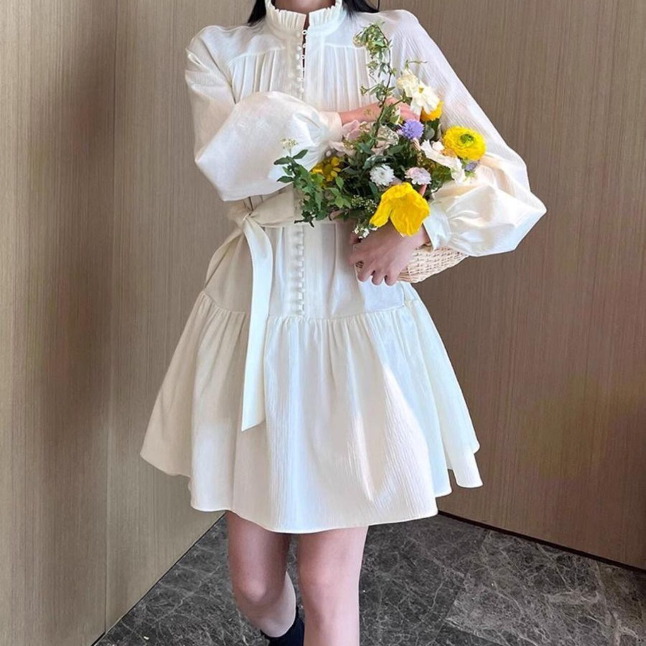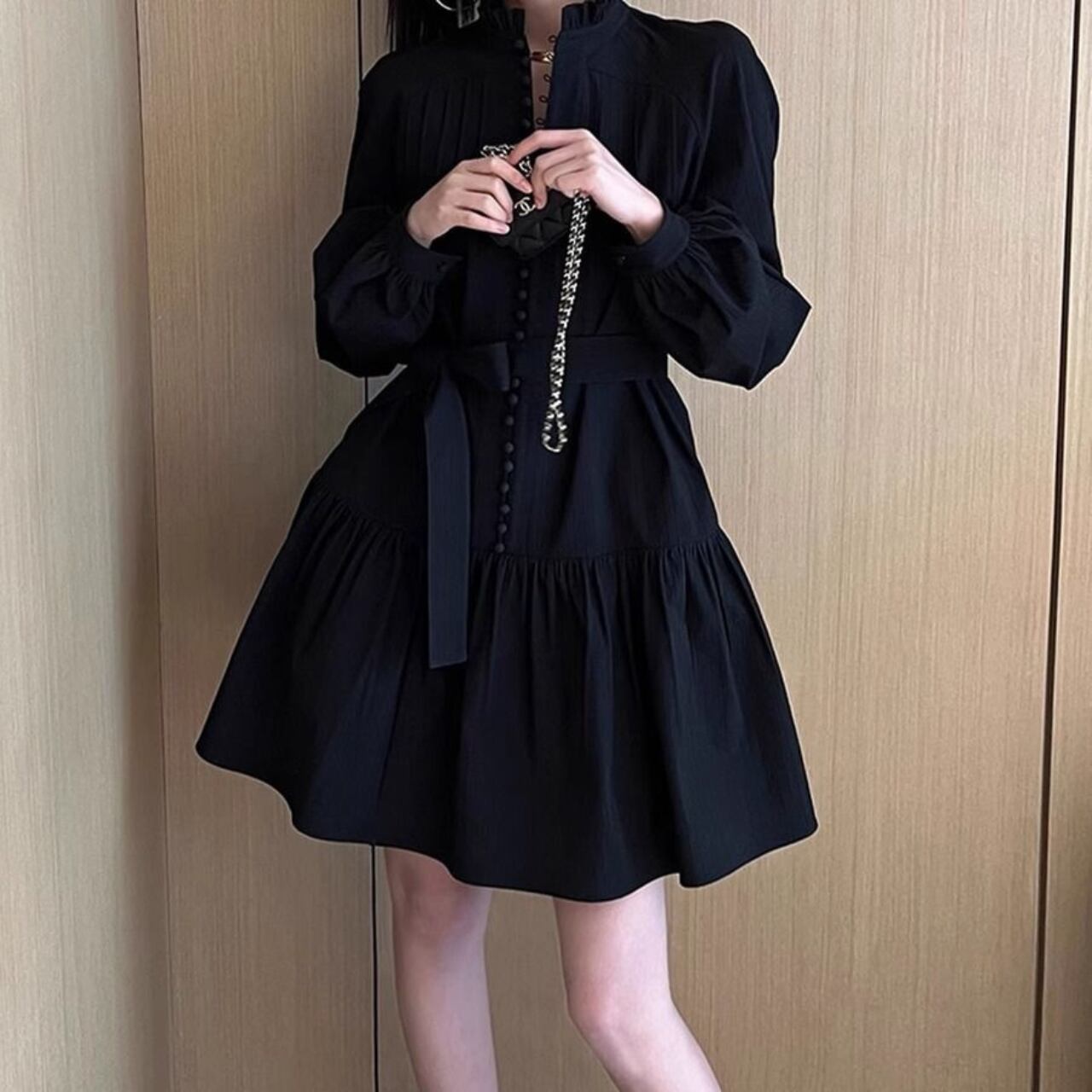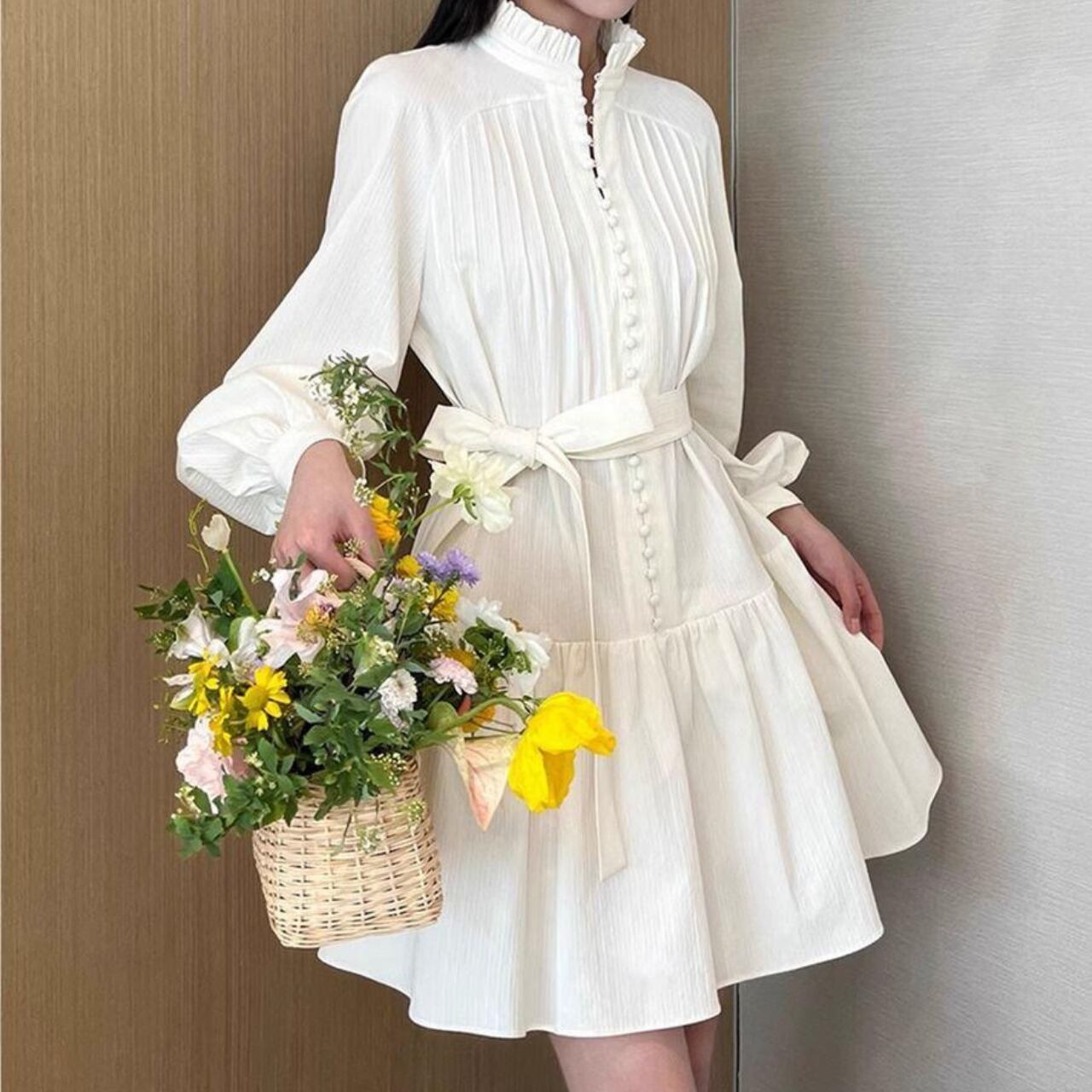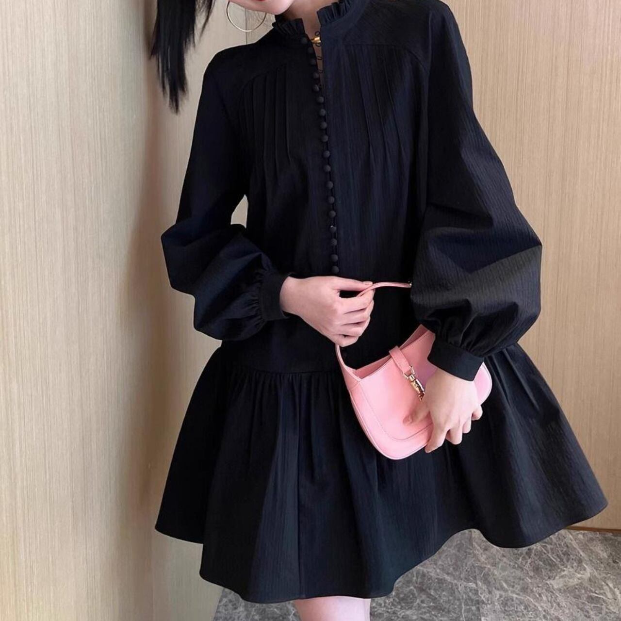 フリルスタンドカラー フレアワンピース/2colors A4419