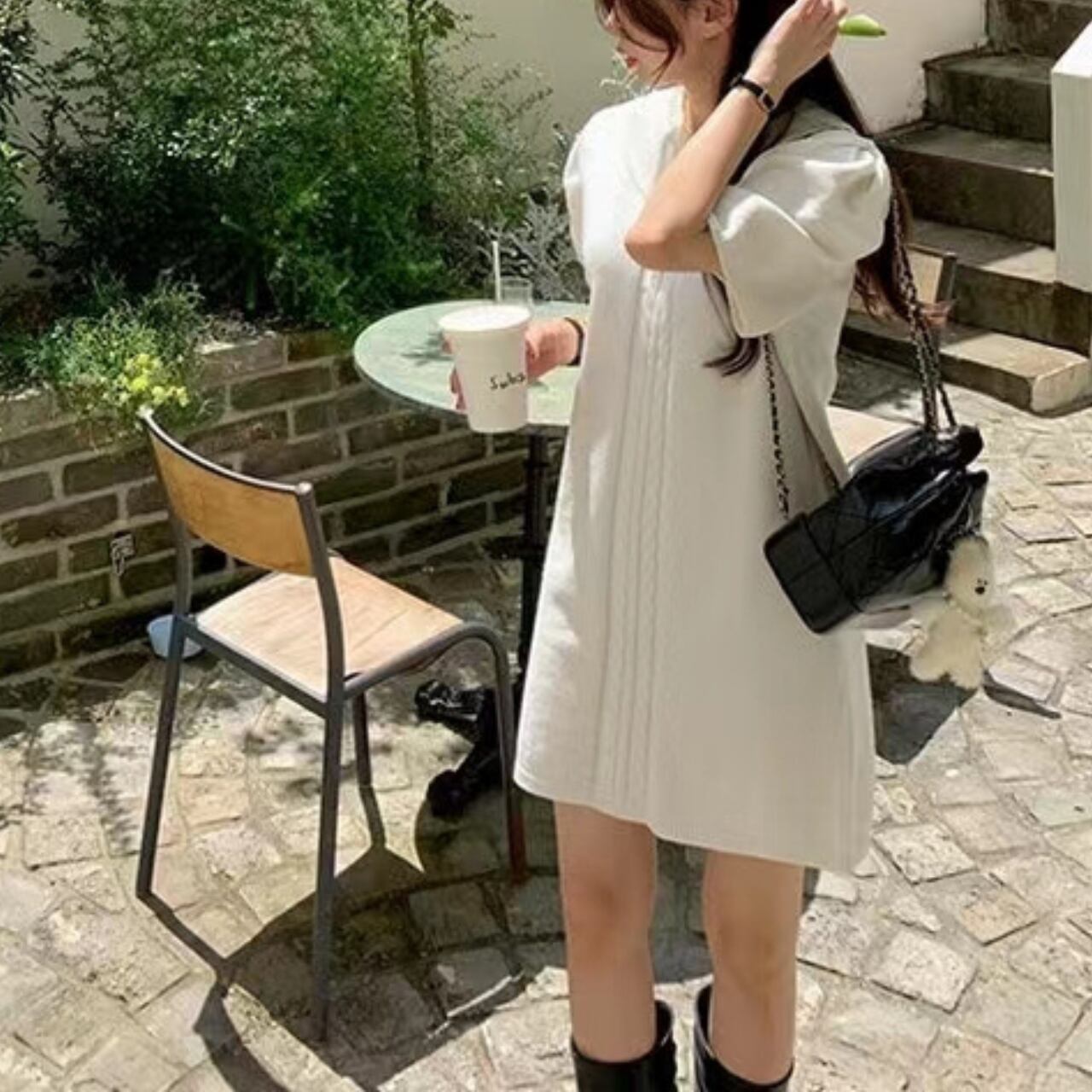 春秋の季節にぴったりのニットワンピースで、カフェでのお食事やデート、休日のお出かけなど様々なシーンで活躍します。シンプルなデザインだからこそ長く愛用でき、アクセサリーやバッグで印象を変えられる万能な一枚です。