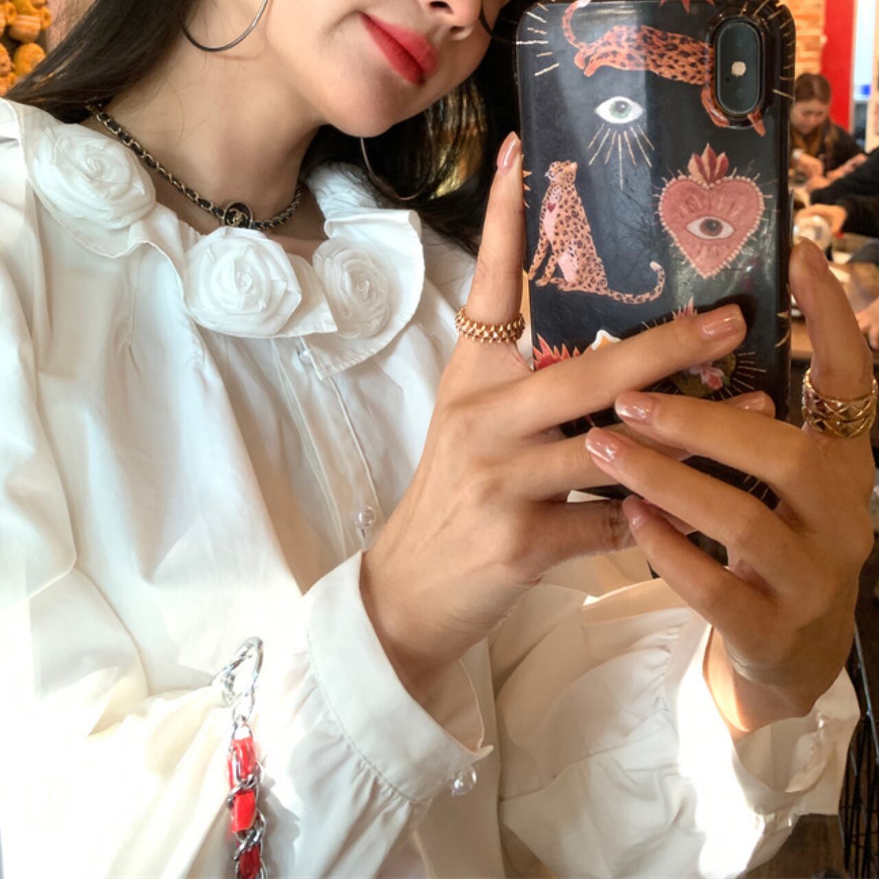 ローズカラー パールボタンシャツ A4432