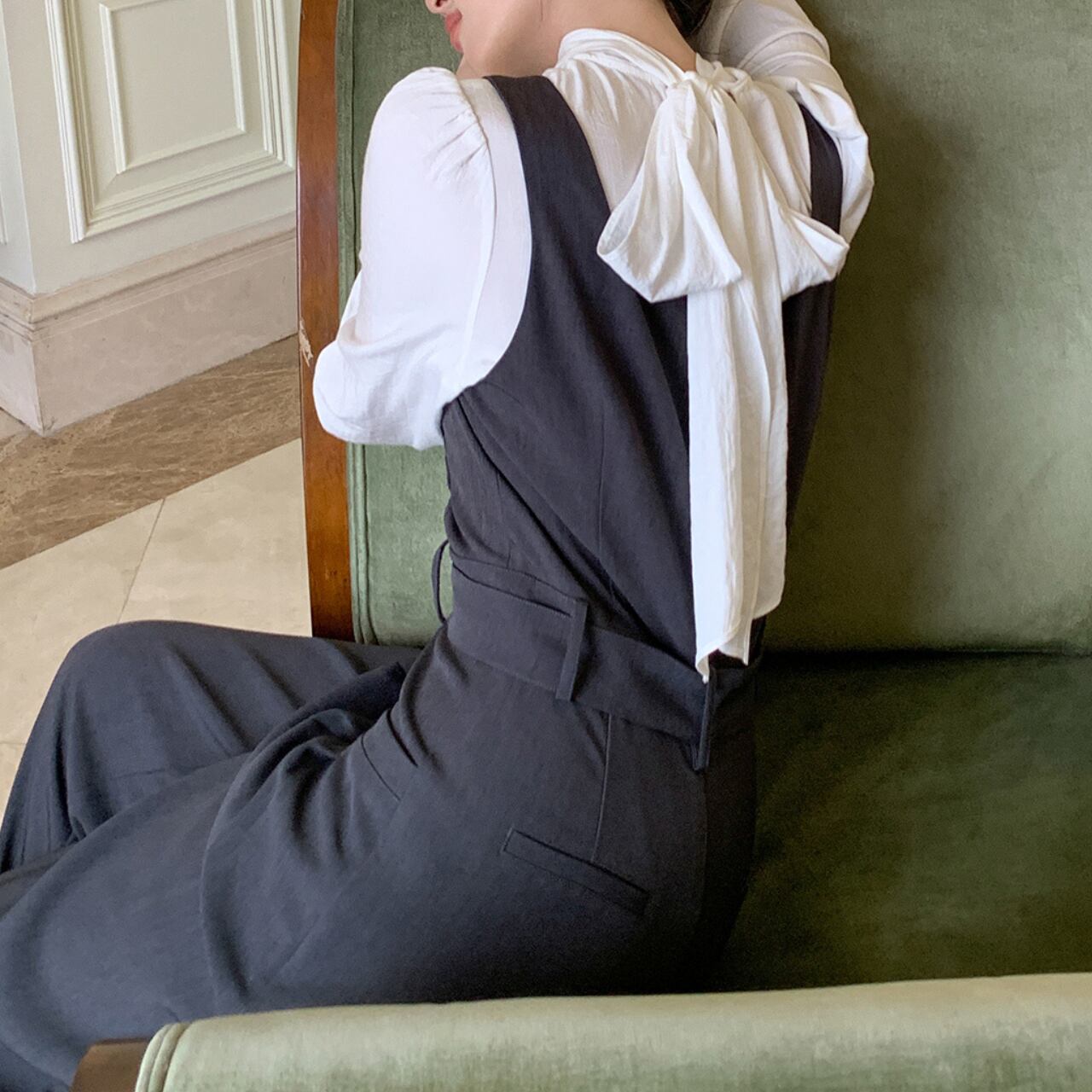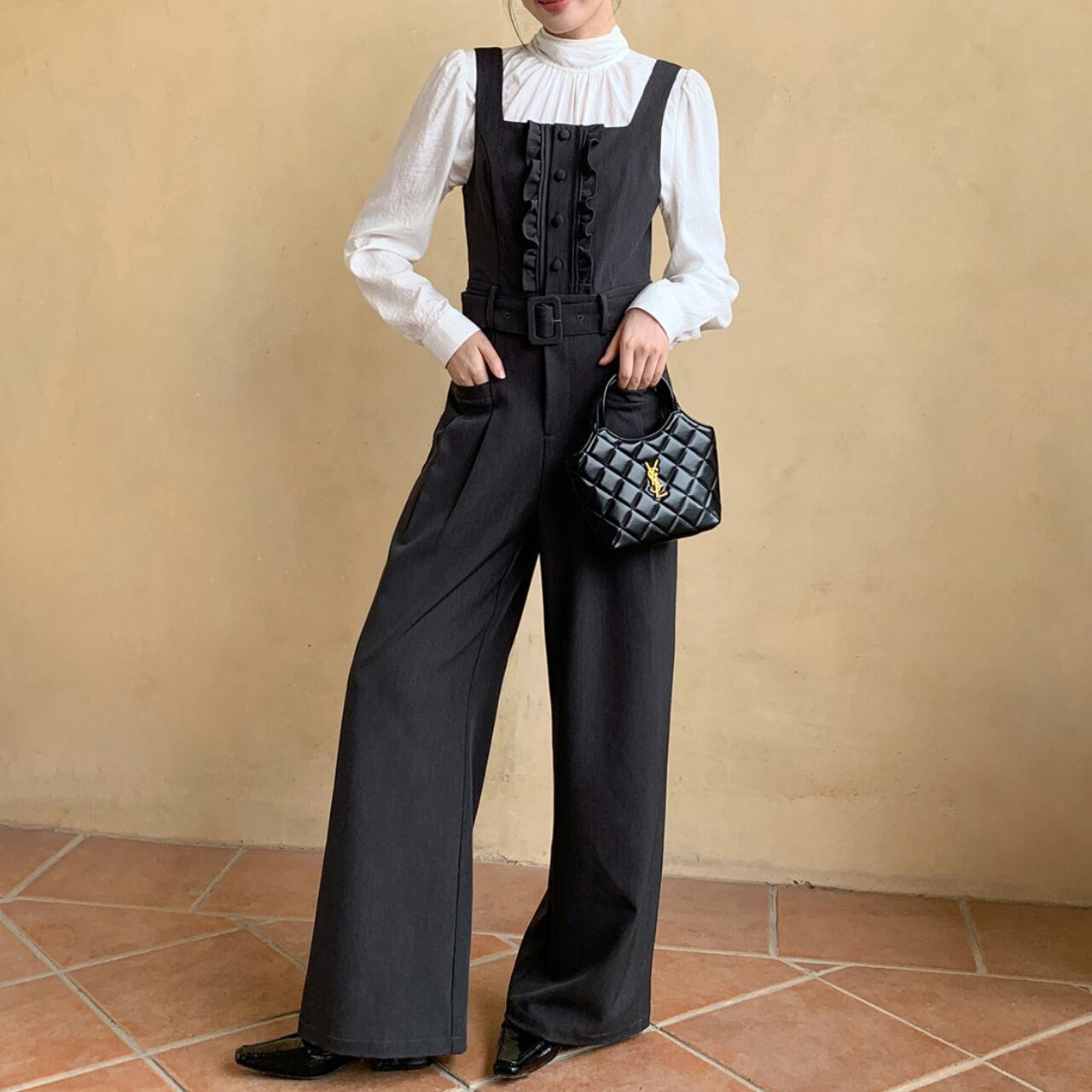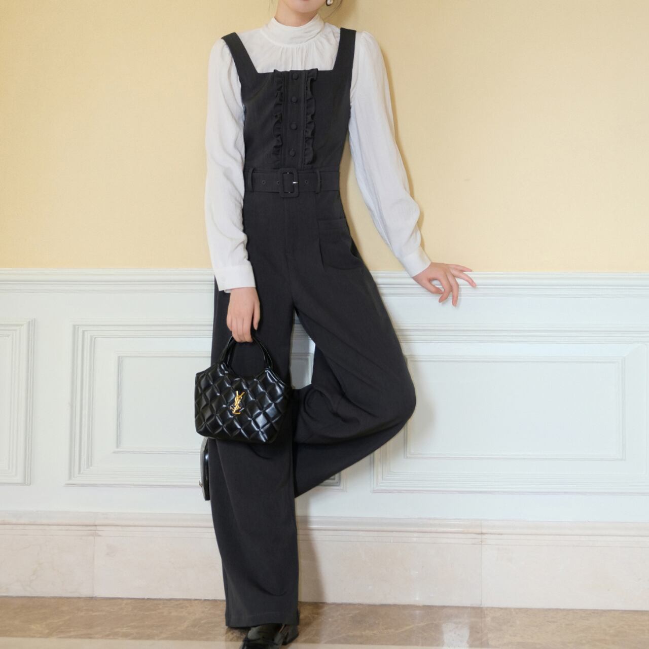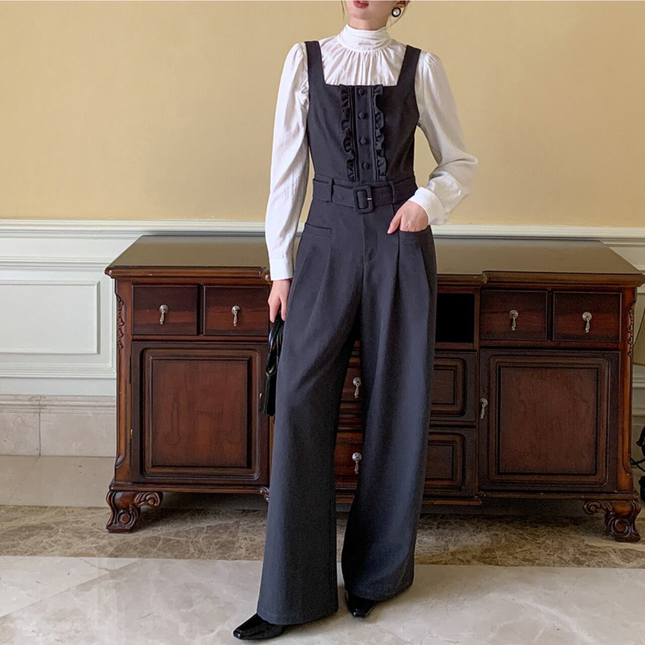 フレンチレトロ ウエストベルトジャンプスーツ A4446