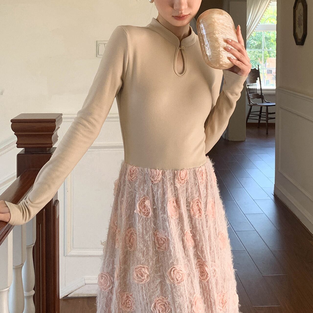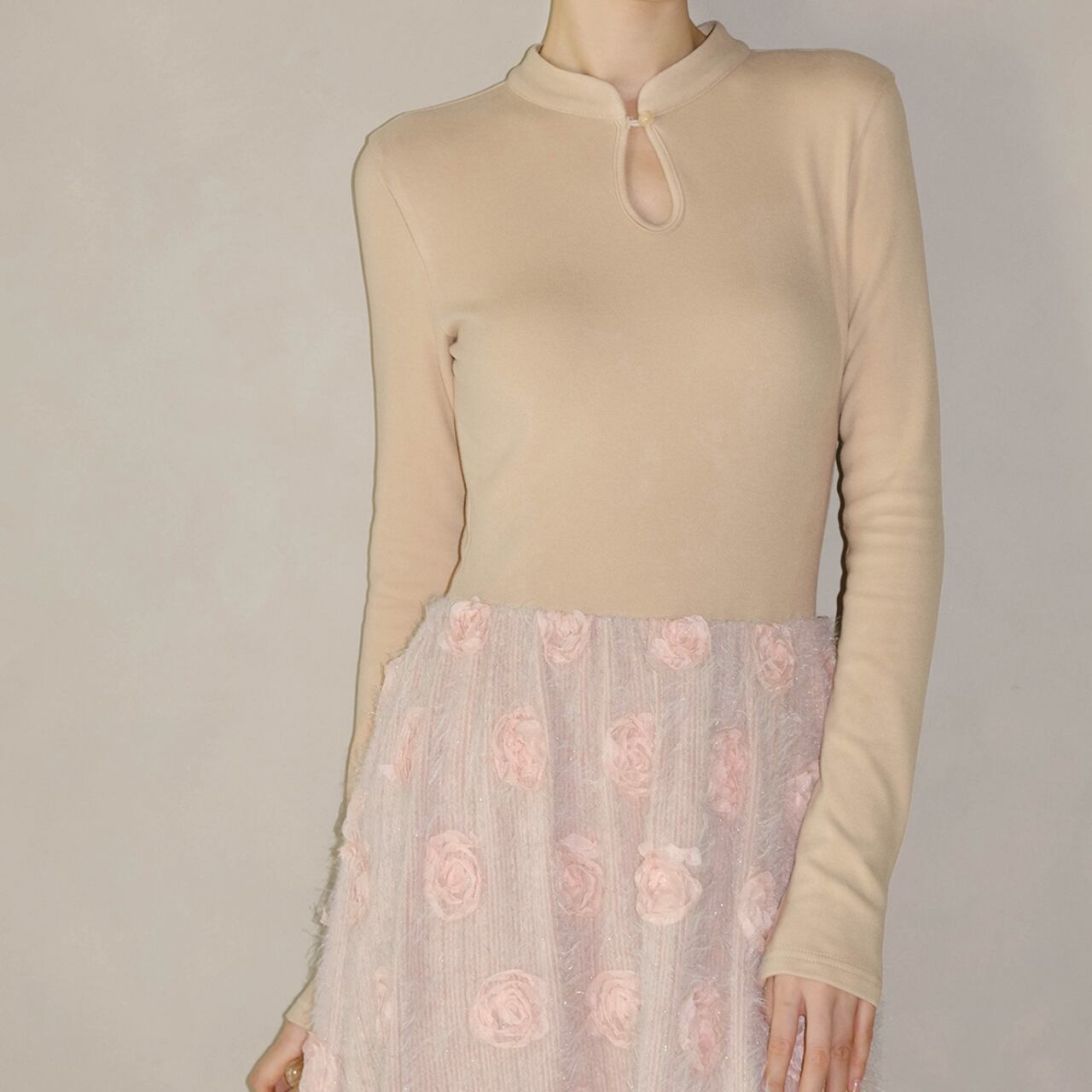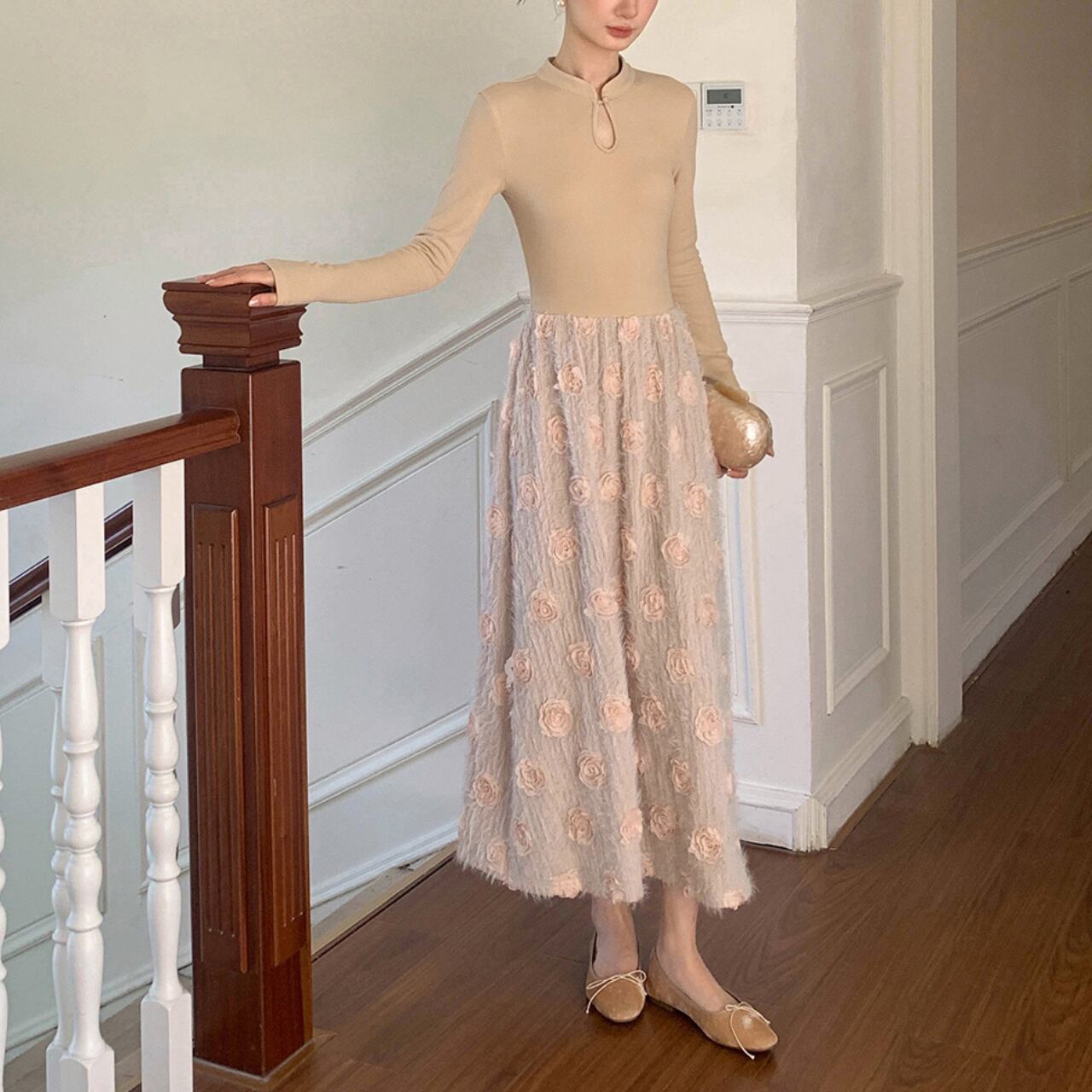 立体フラワー 切替ワンピース A4447
