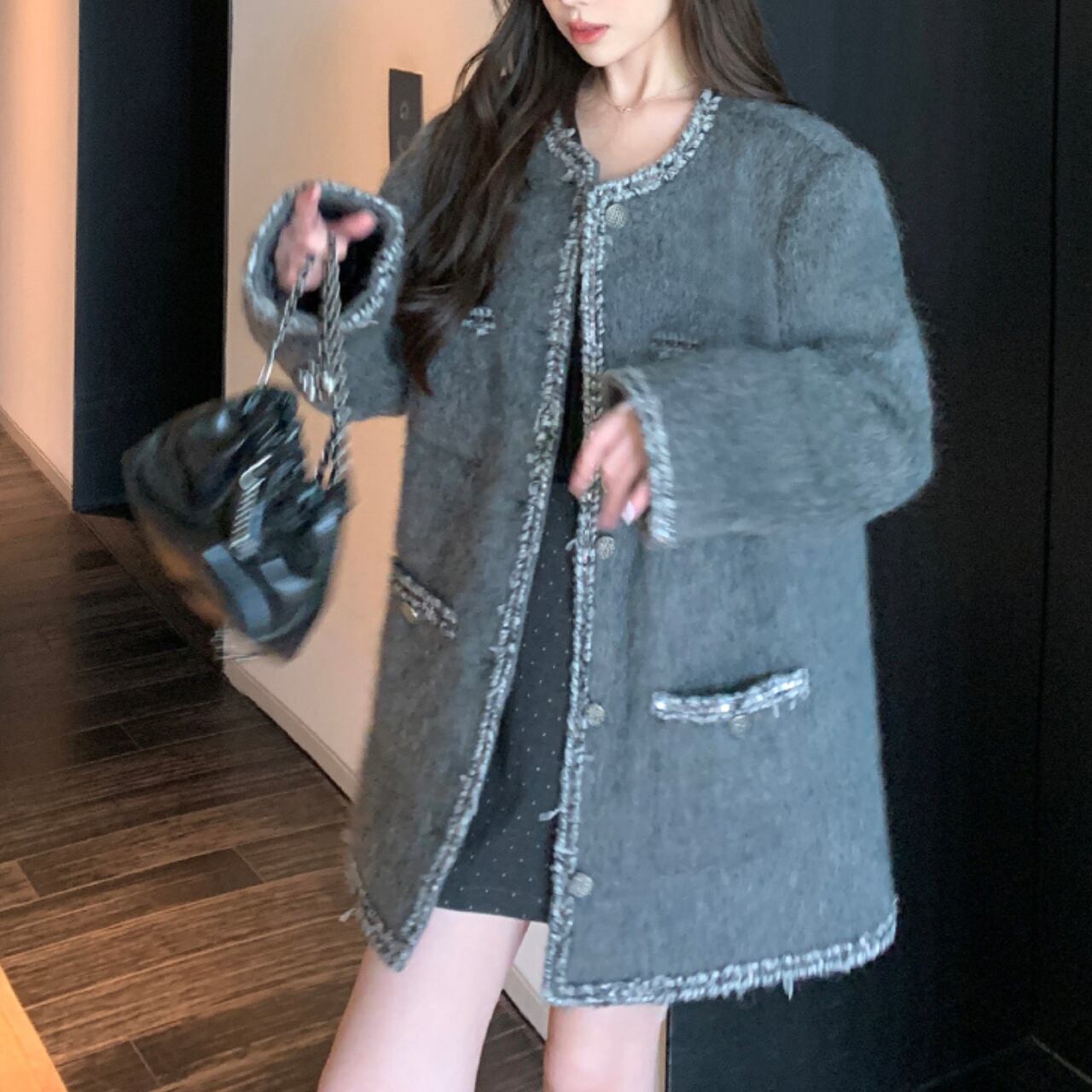 高級感のあるツイード素材は柔らかな質感で着心地も抜群。