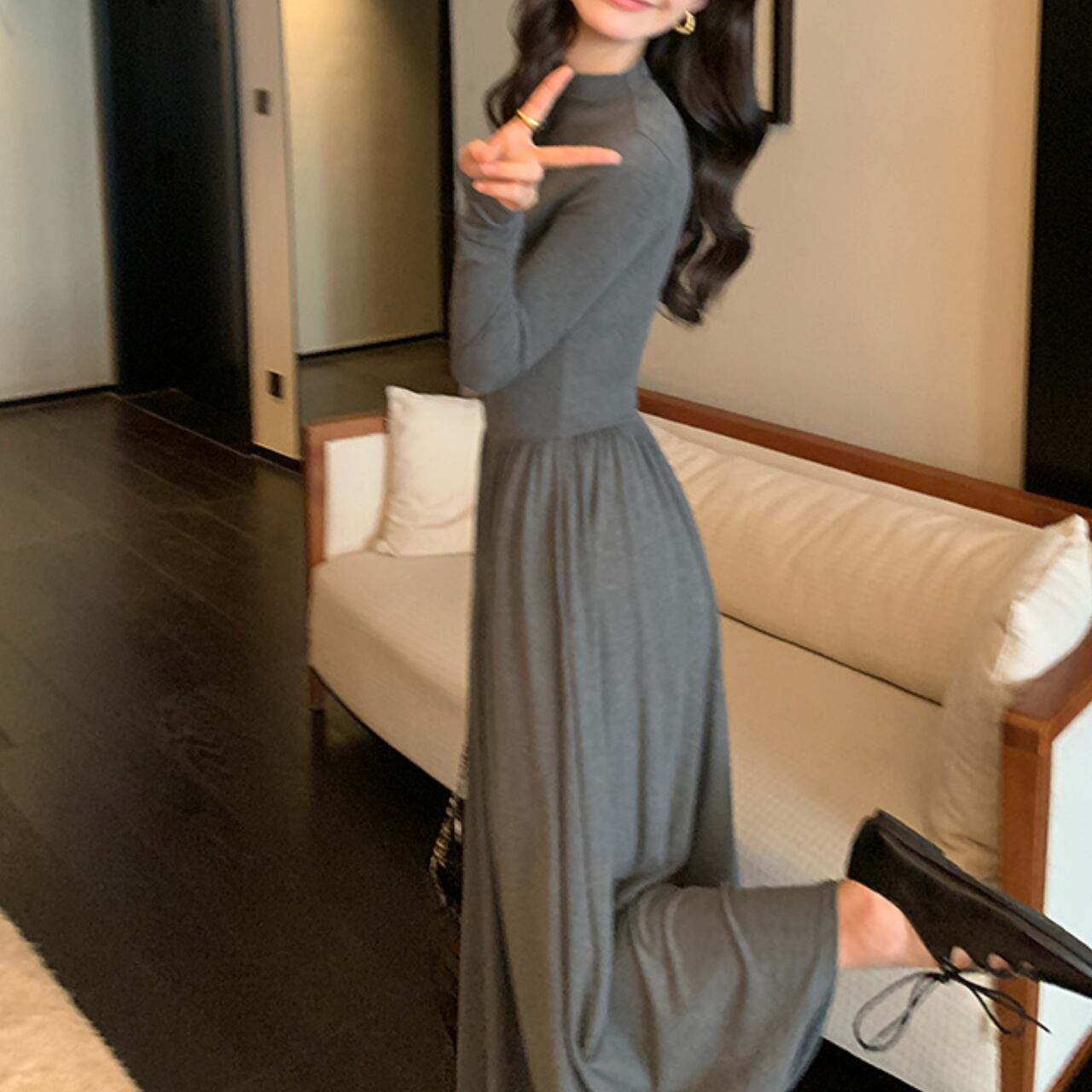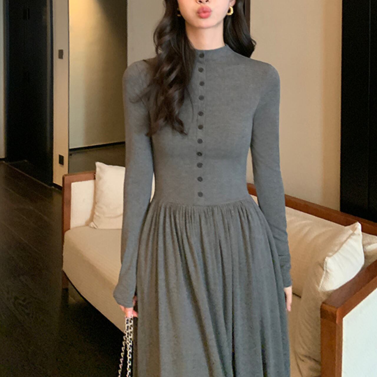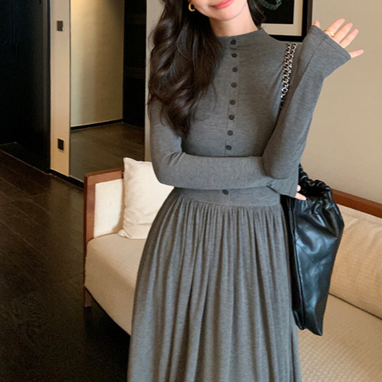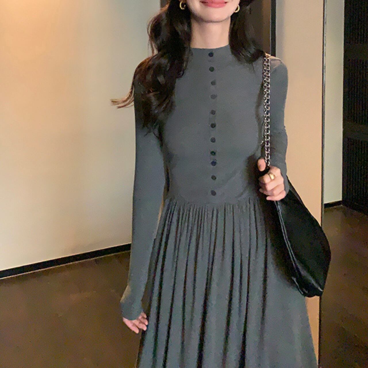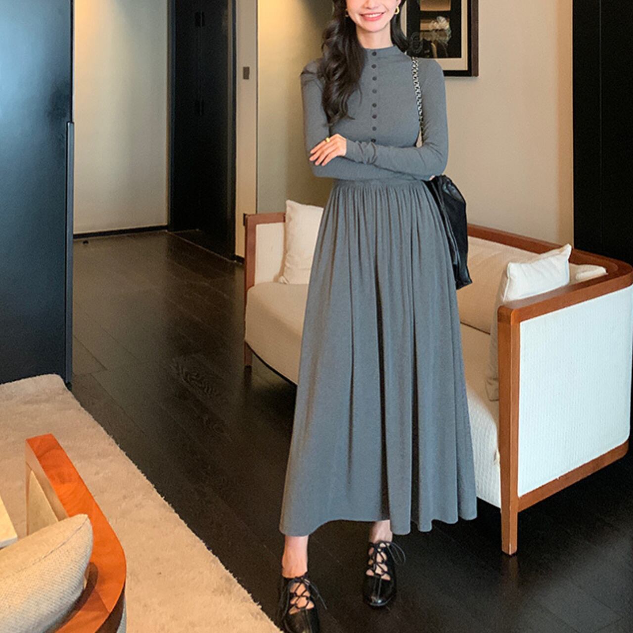 ハイネック ボタン切替ワンピース A4458