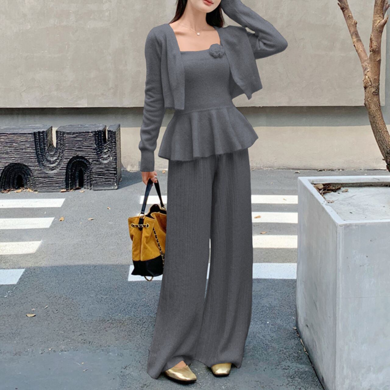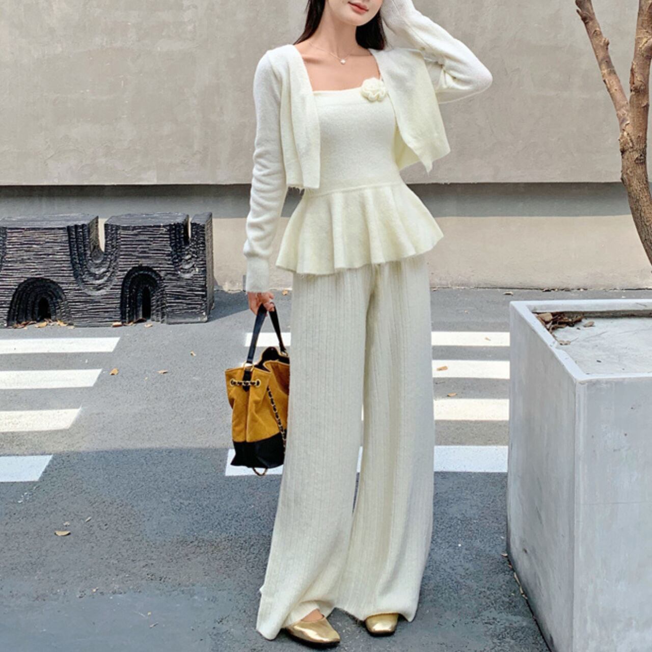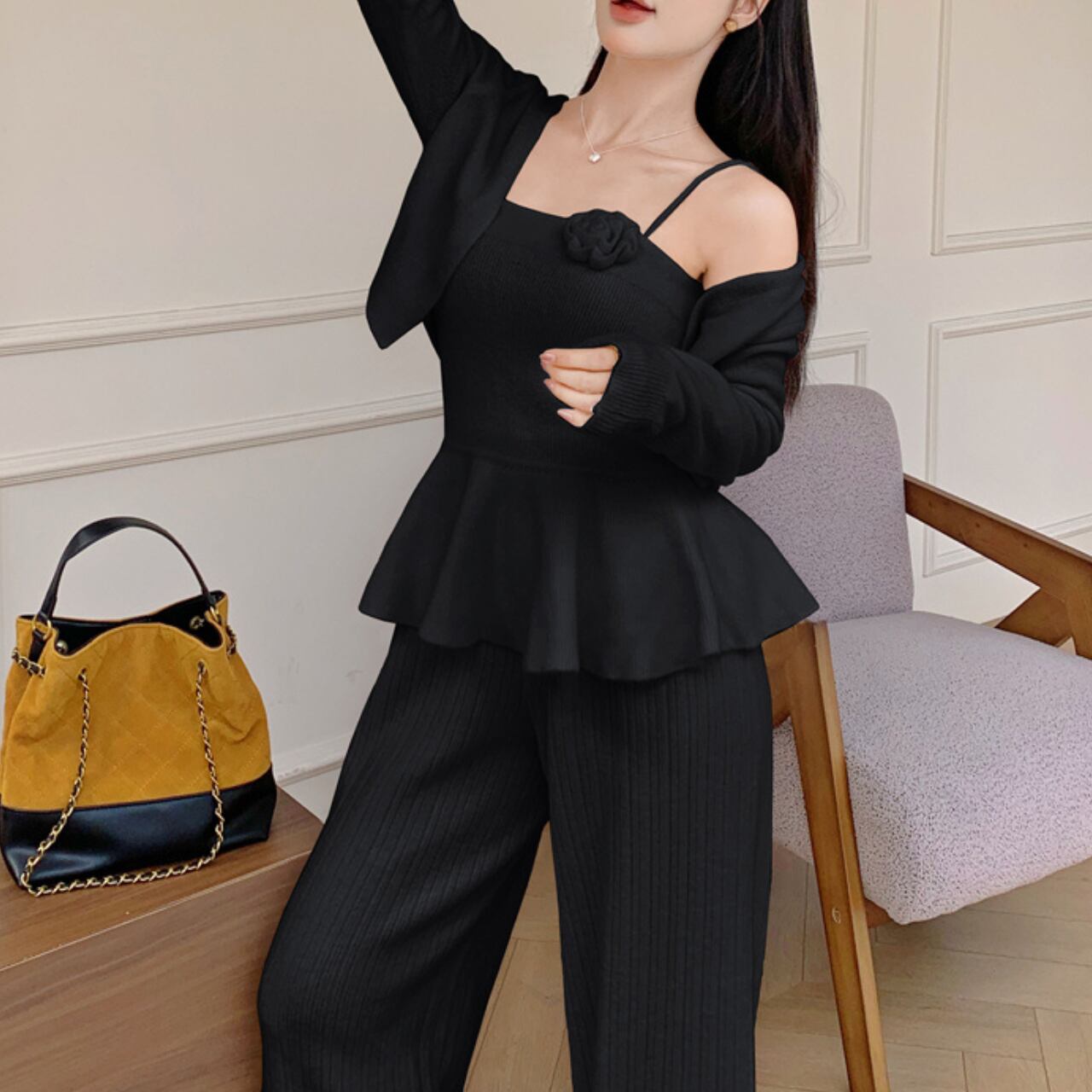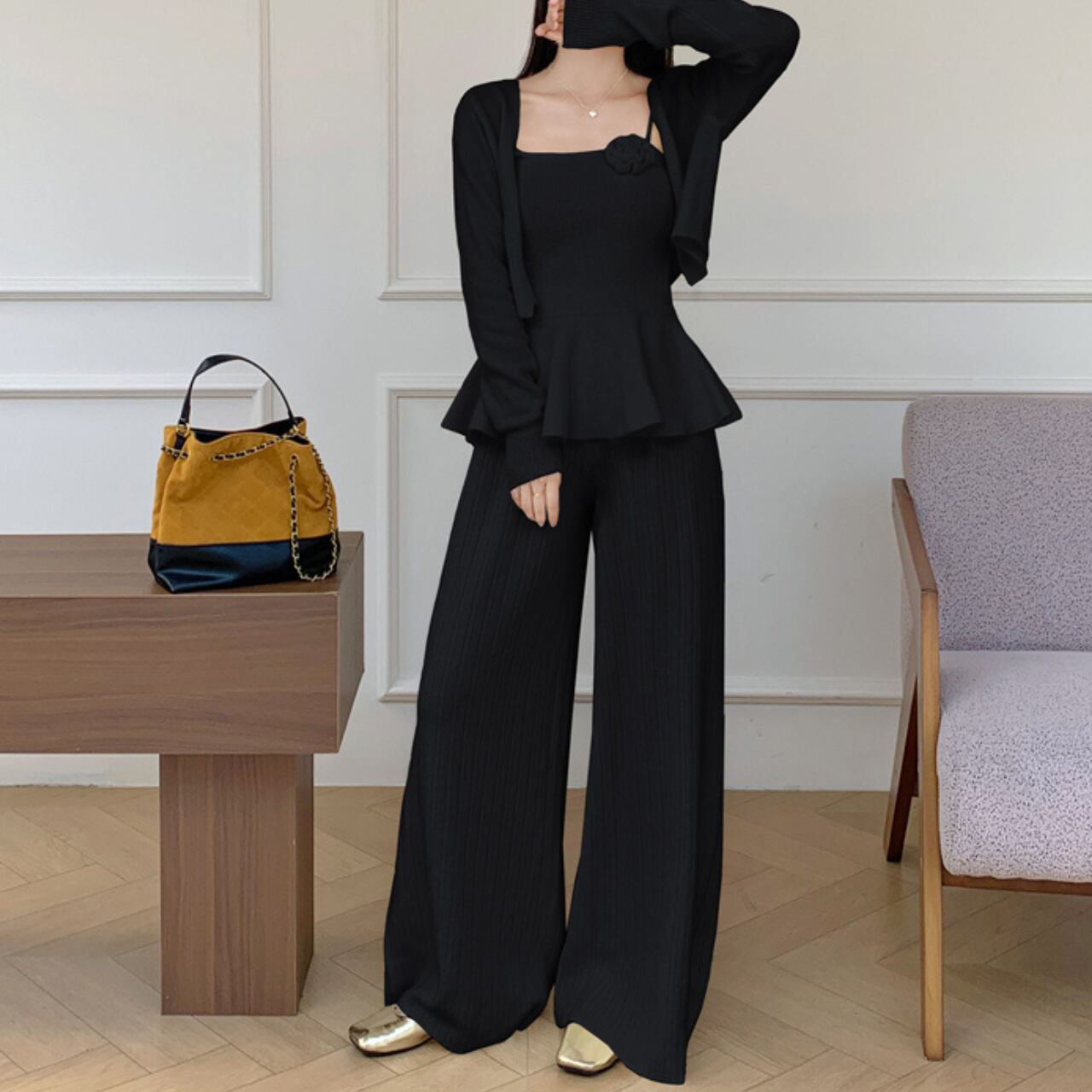 ペプラムトップス&ワイドパンツ セットアップ3点 A4461