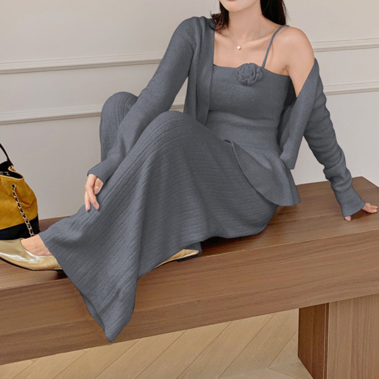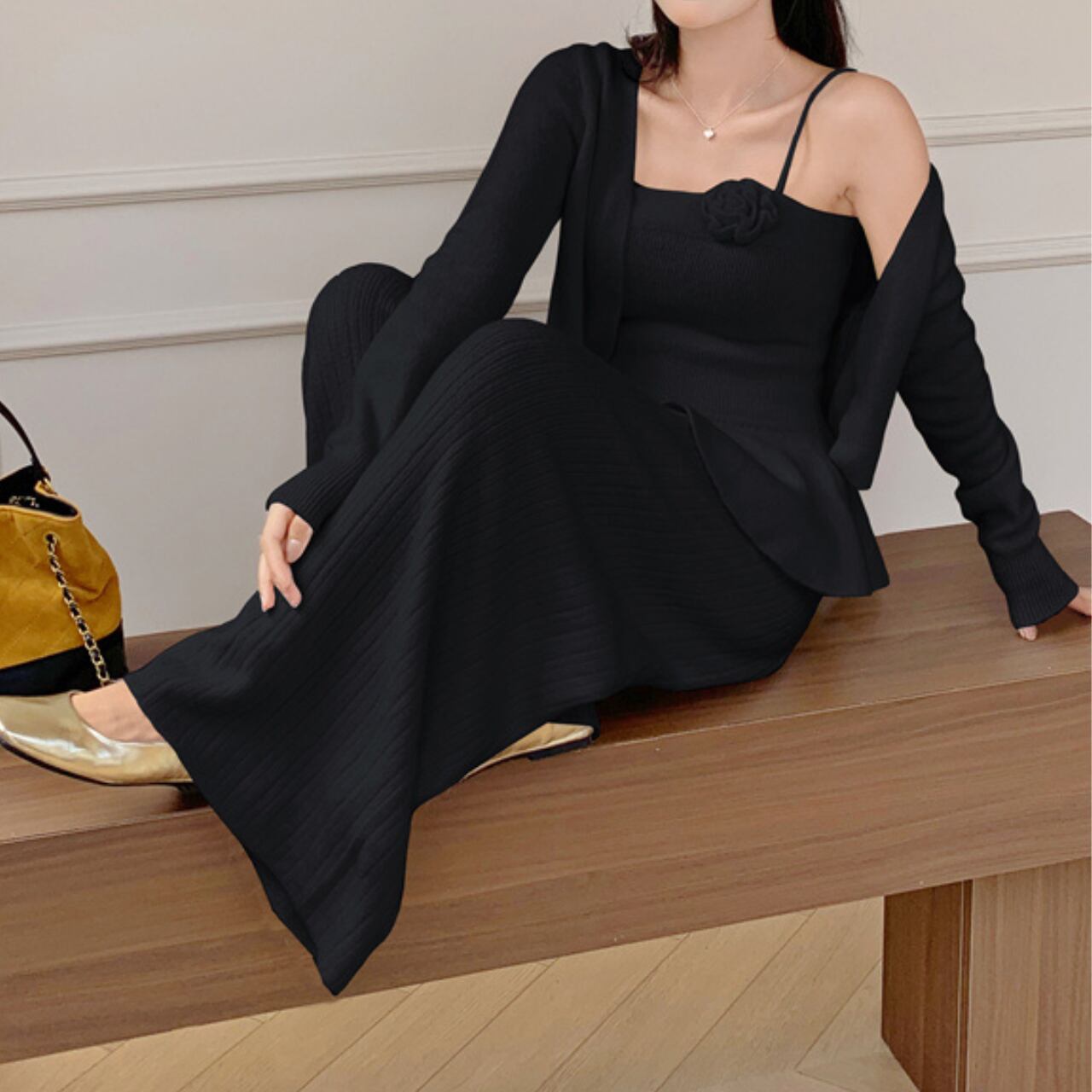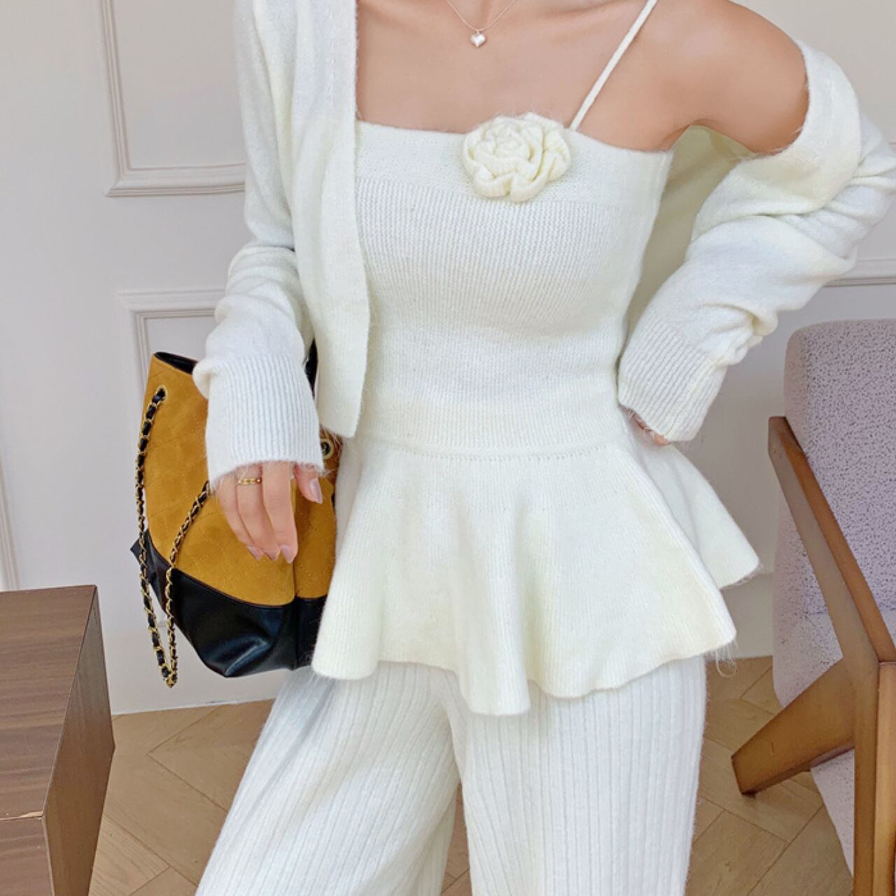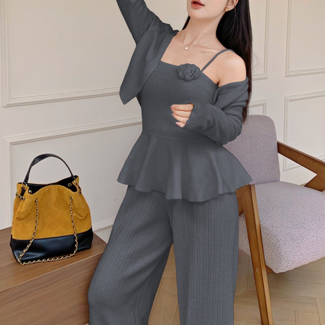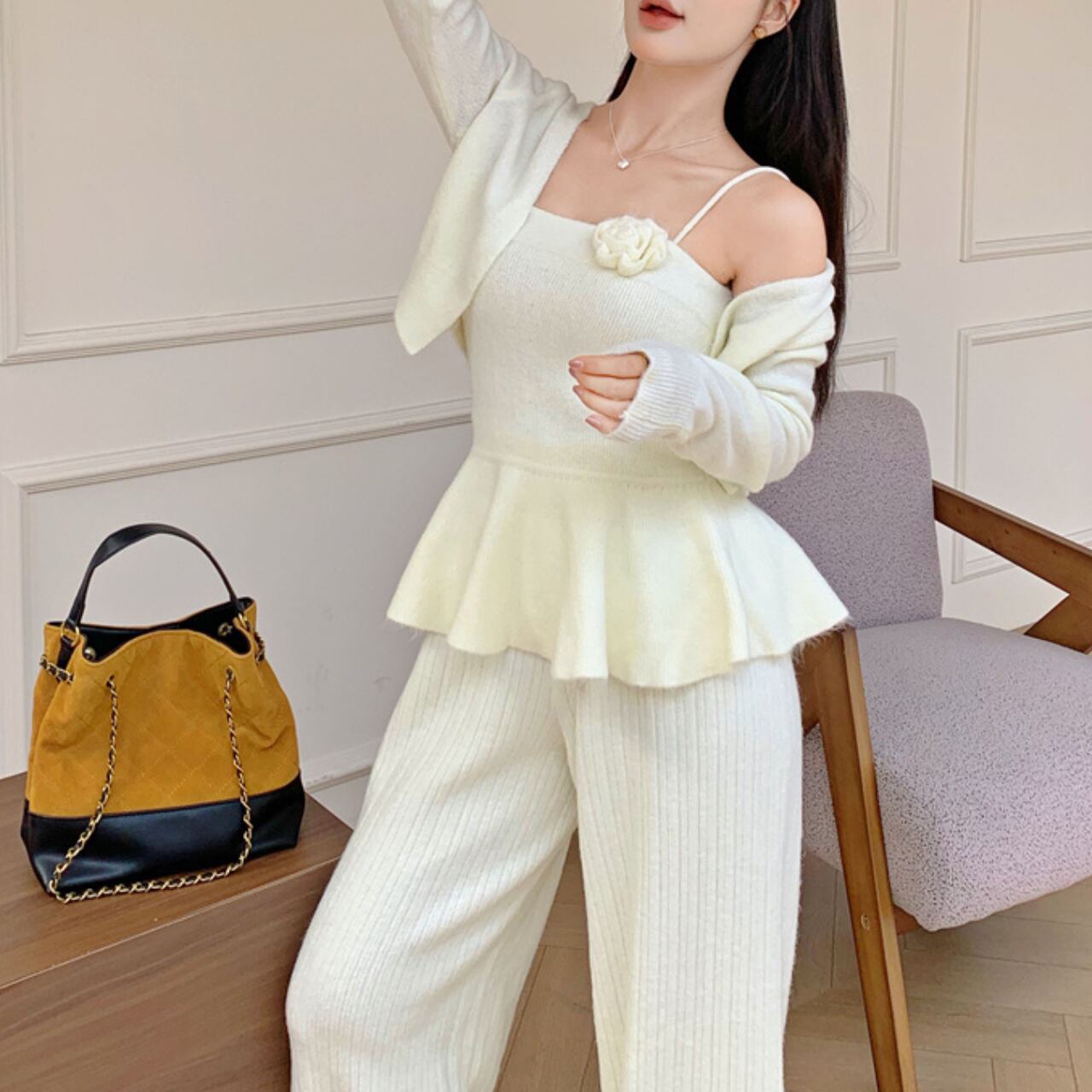 ペプラムトップス&ワイドパンツ セットアップ3点 A4461