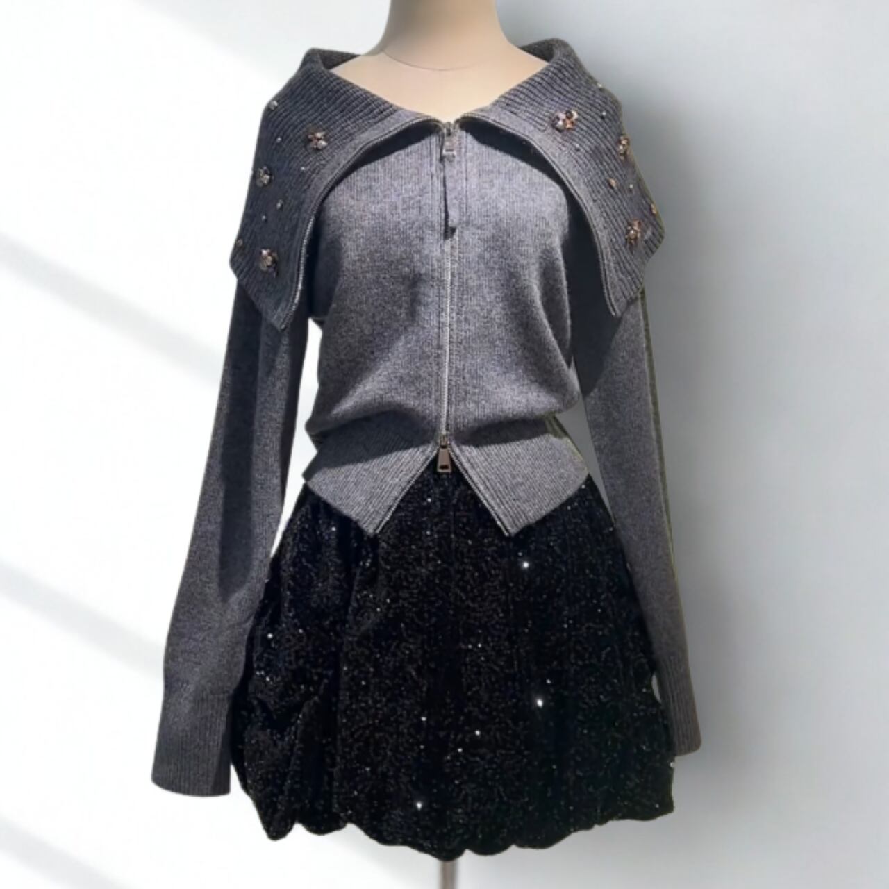 フラワービーズ ダブルジップ トップス/2colors A4463