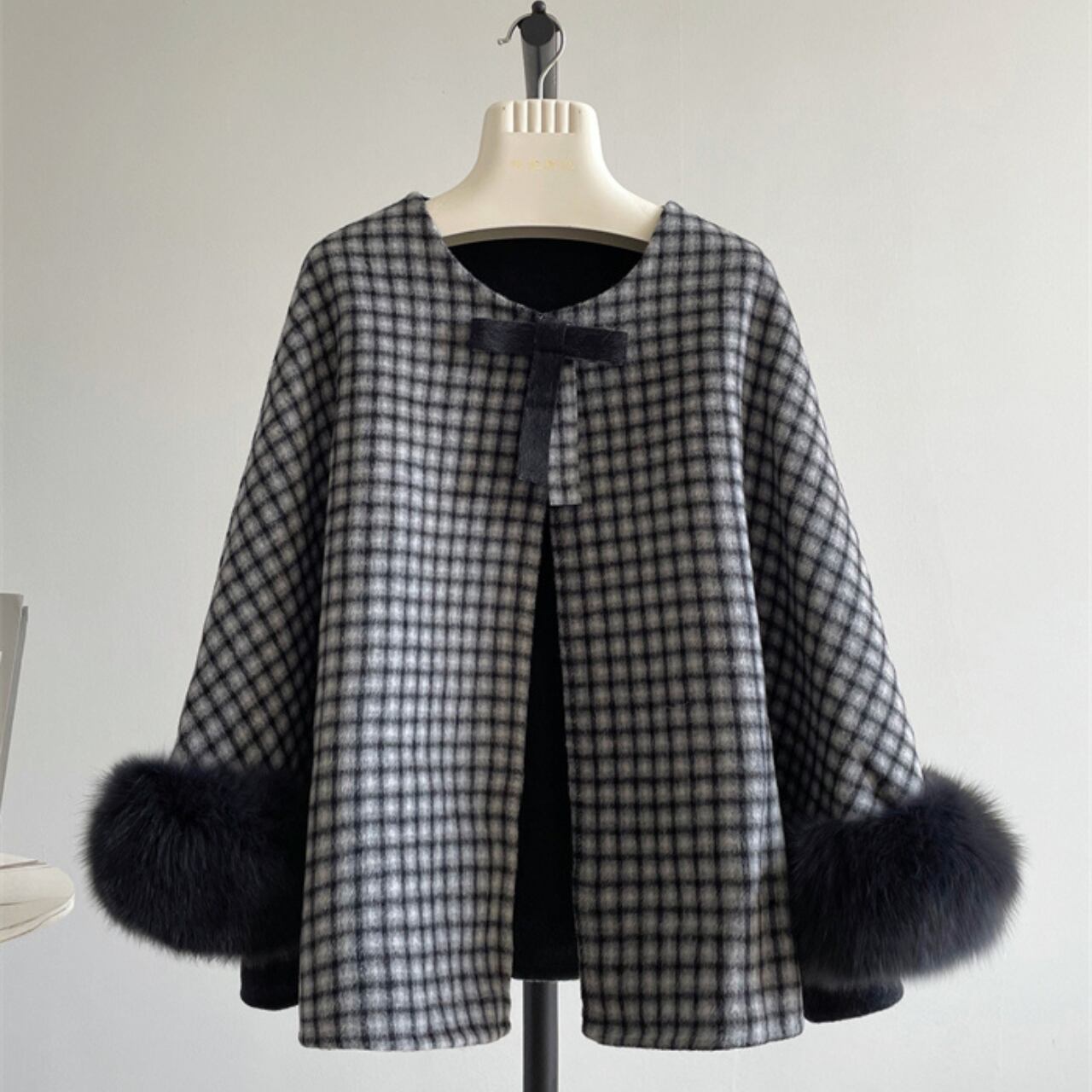 チェックショートケープコート/2colors A4481