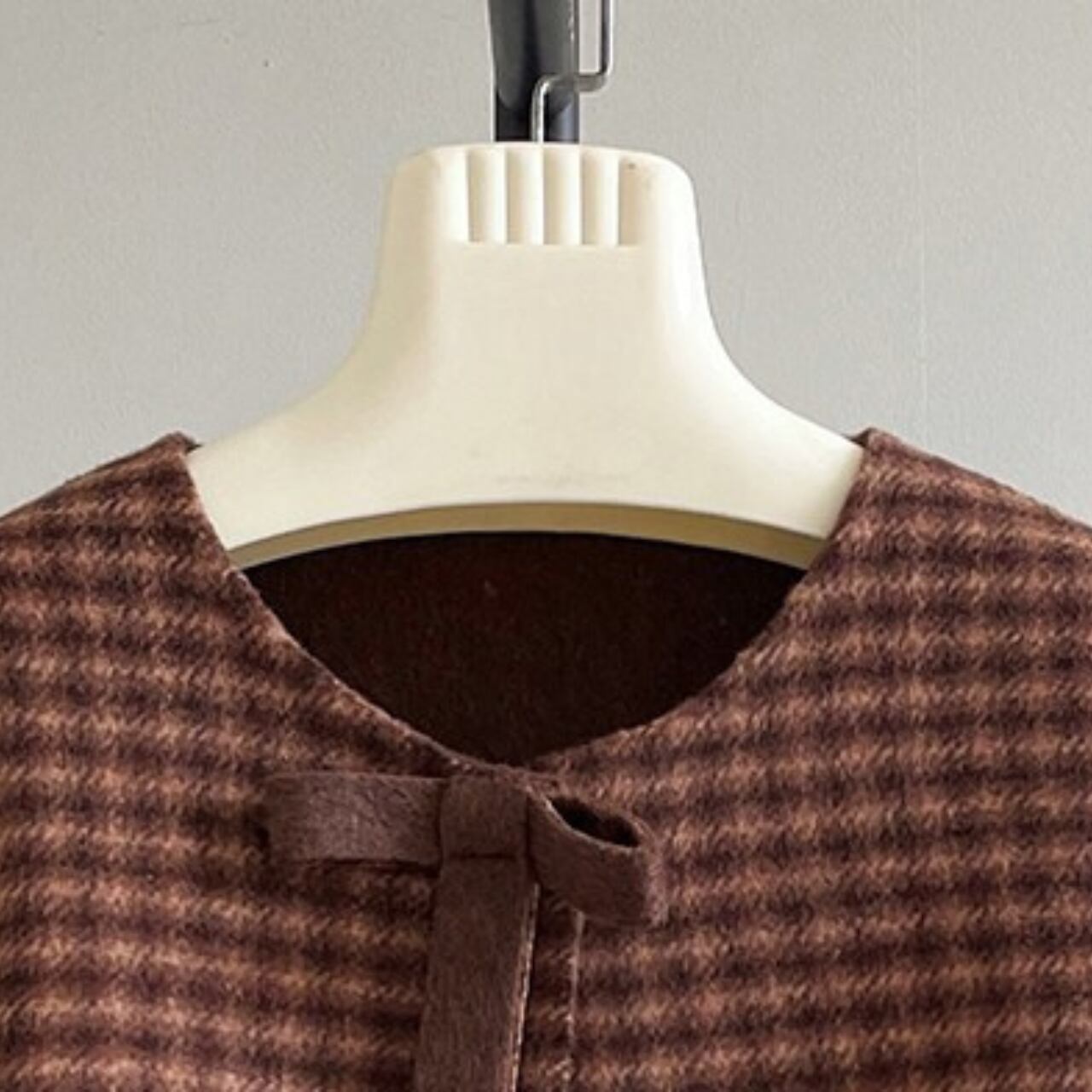 ブラウン、グレーの2色展開で、どちらも秋冬のワードローブに馴染む落ち着いたカラーリング。レトロな雰囲気とモダンな要素が融合した、洗練されたデザインが魅力です。